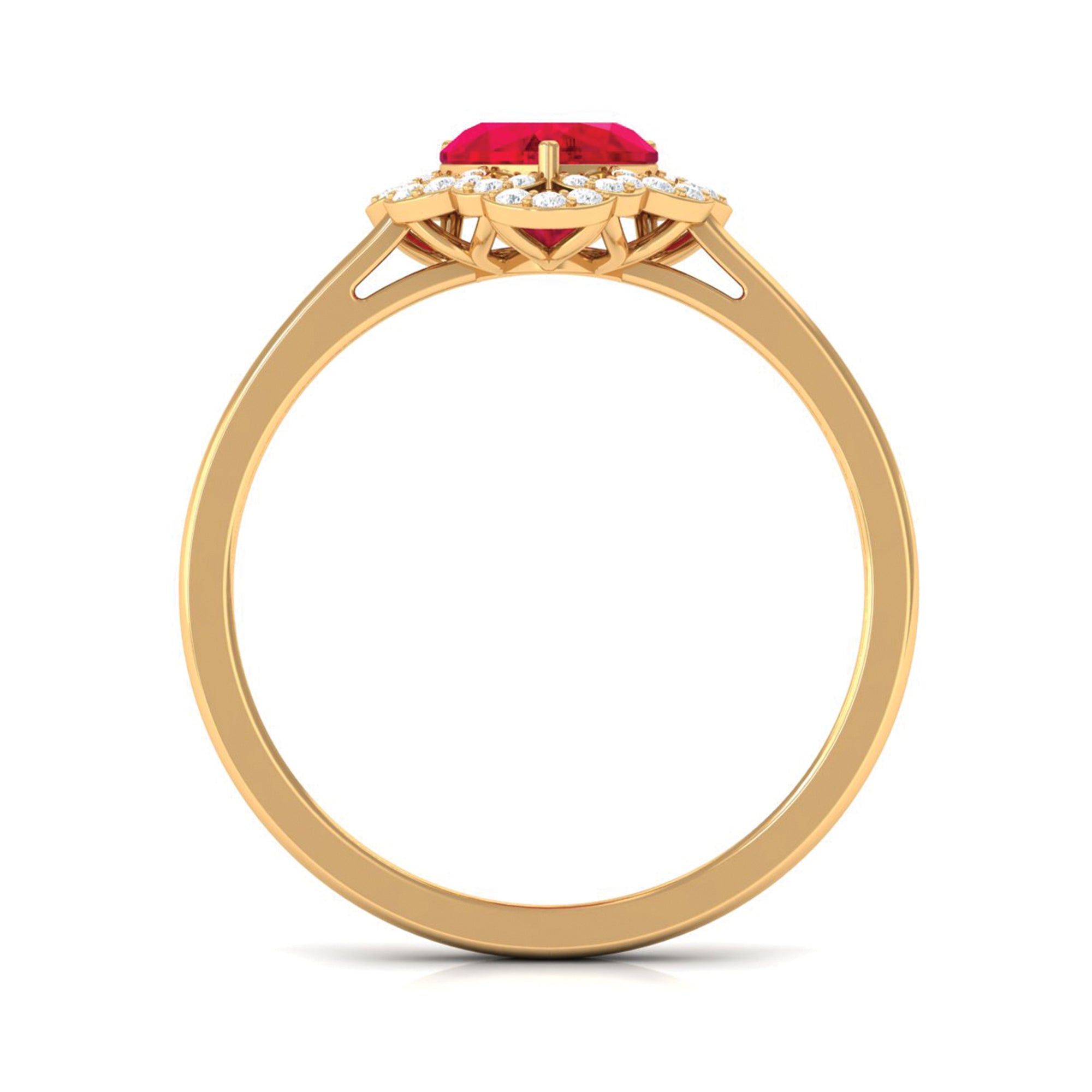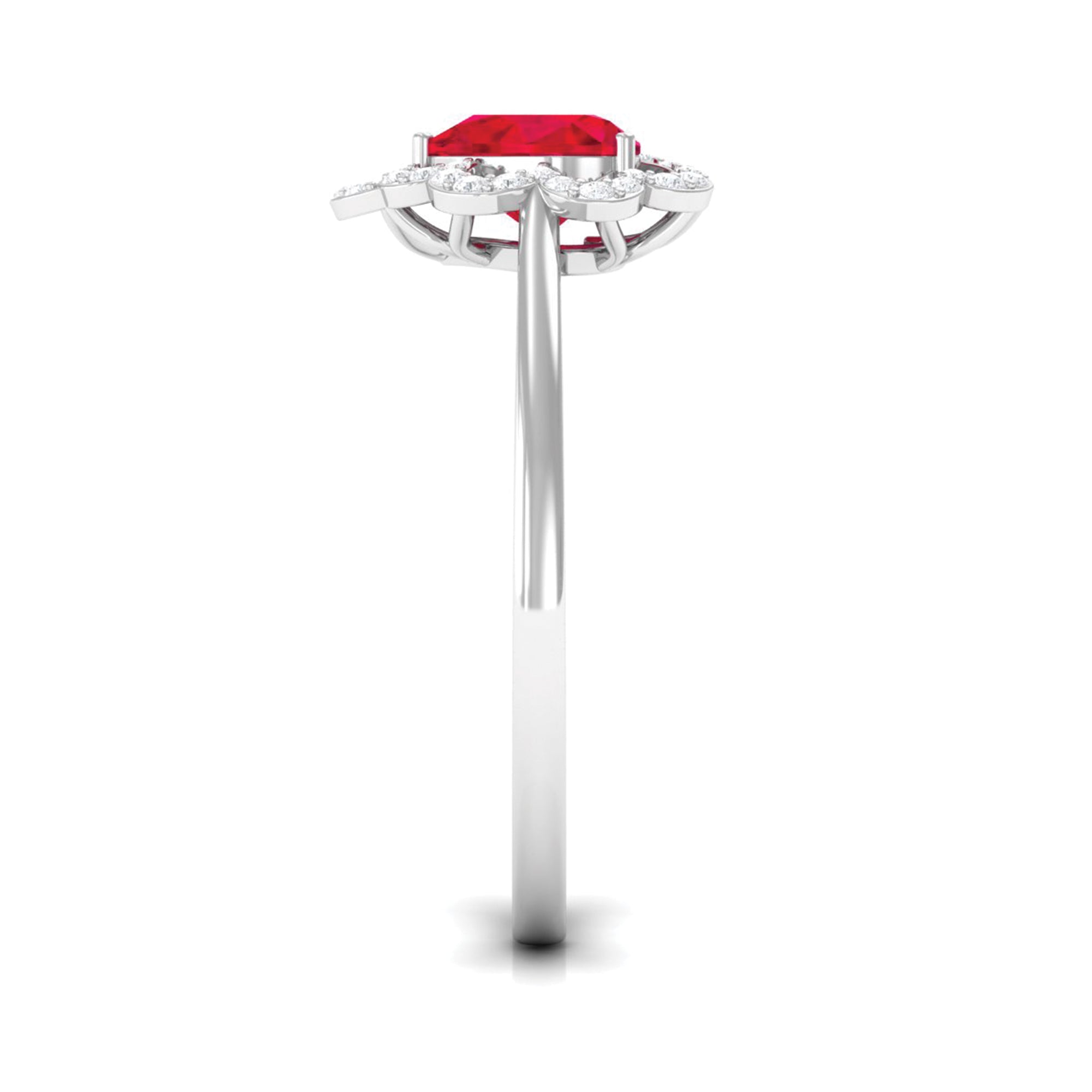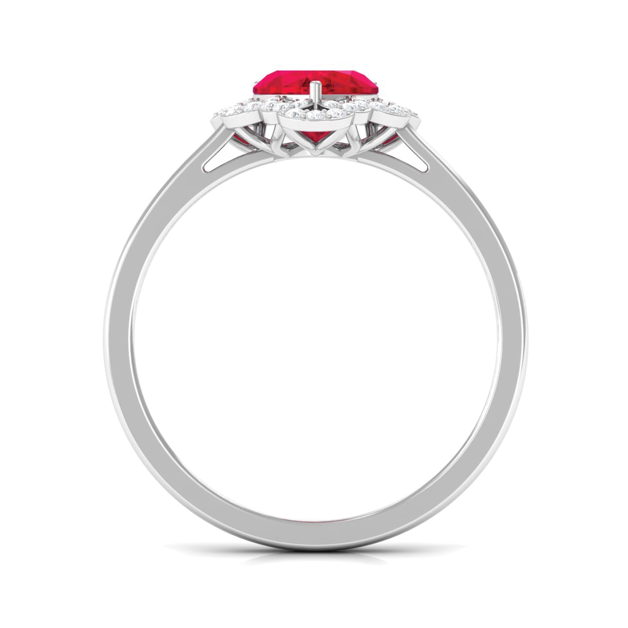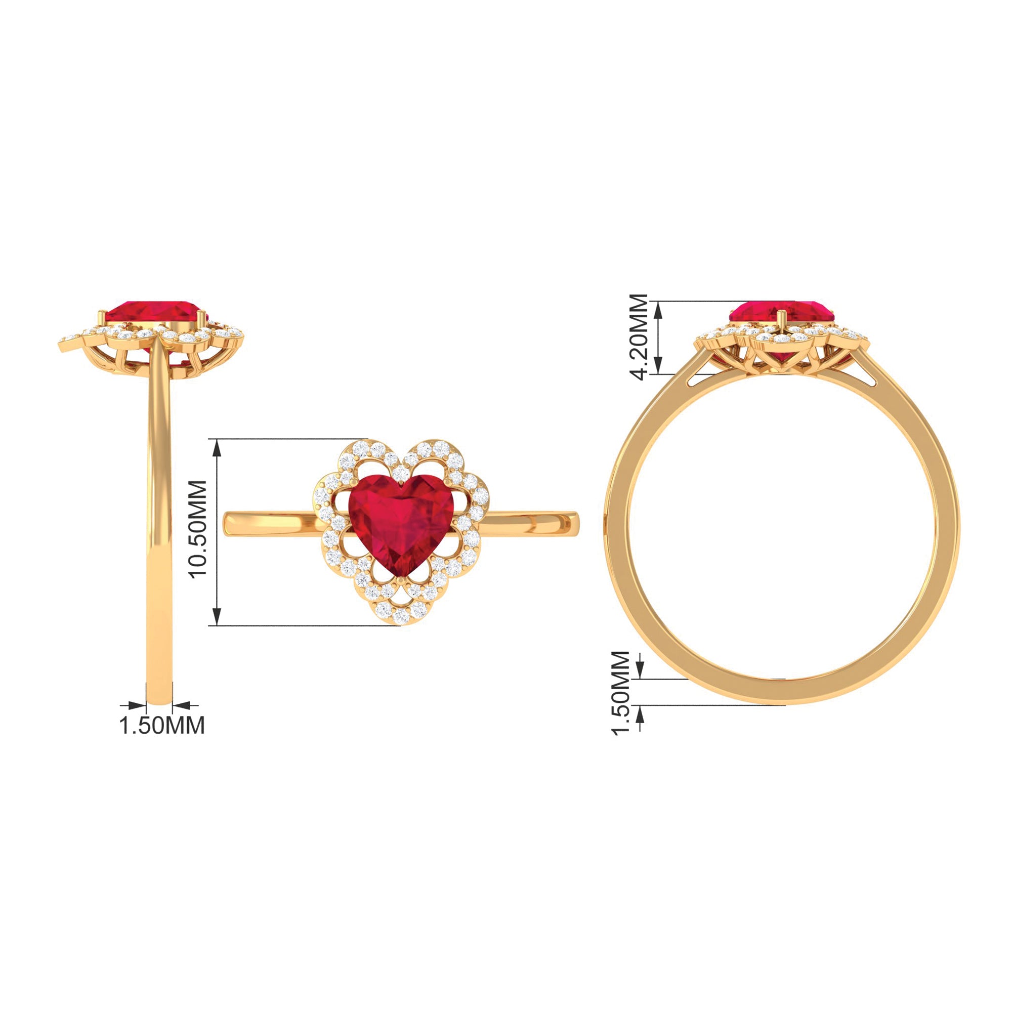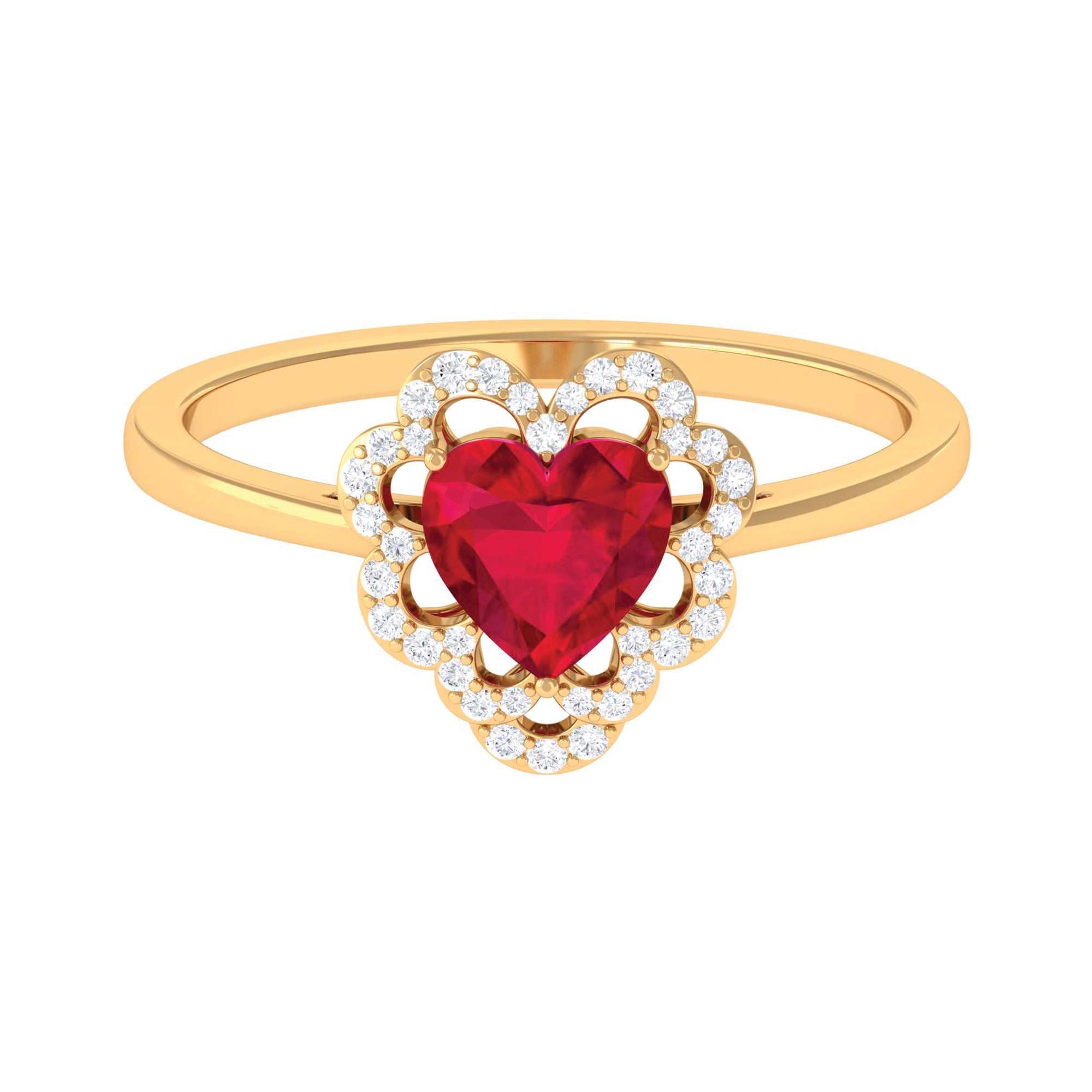 1 CT Lab Created Ruby Heart Engagement Ring with Diamond Accent