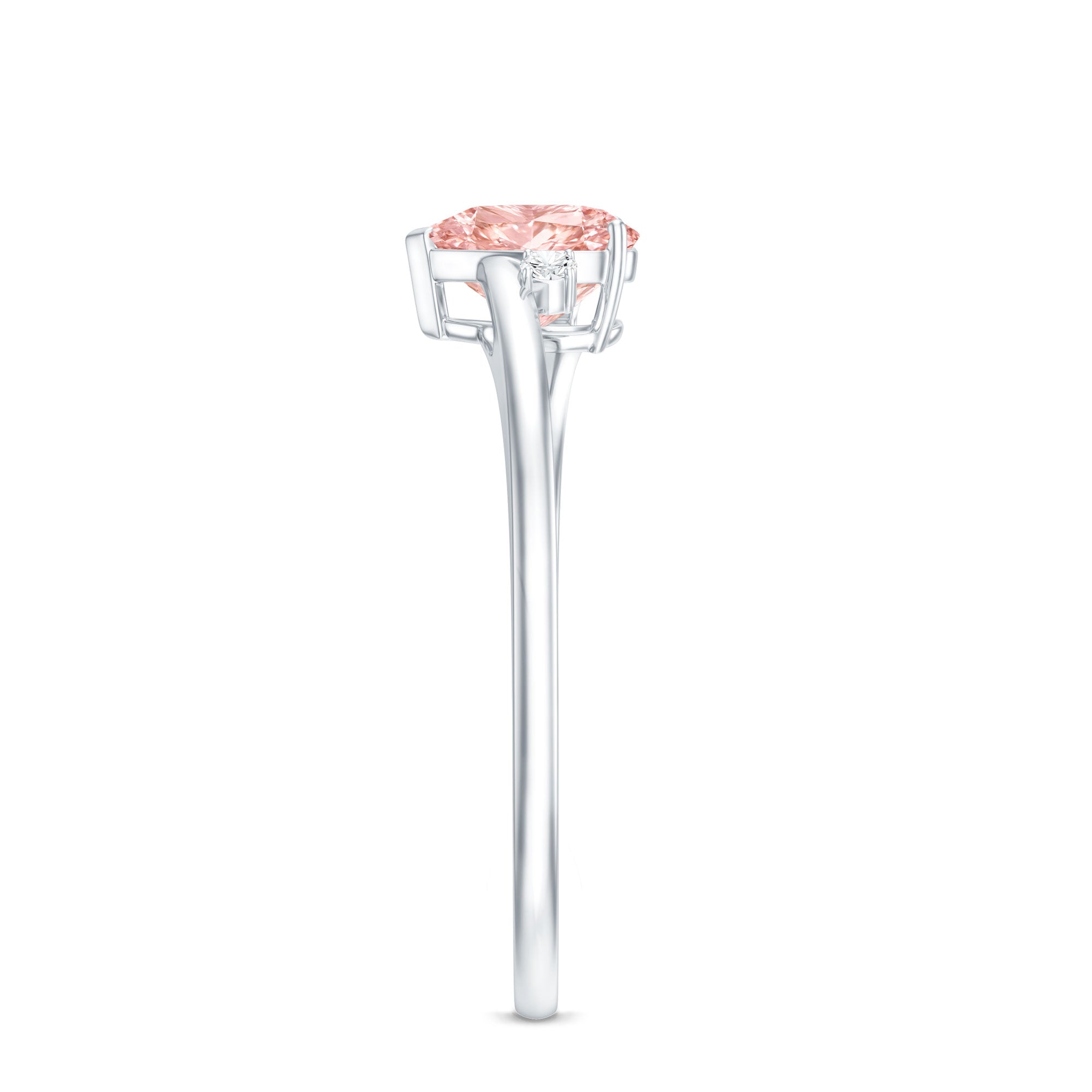 Designed to express a heartfelt promise, this ring is a beautiful way to celebrate commitment, love, and meaningful moments shared between two people. Elegant yet expressive, this Heart Shape Promise Ring is perfect for marking a proposal, a special promise, or an important milestone in your relationship. At the center of the ring is a 6MM heart shaped lab grown pink diamond set in secure prong setting. The soft pink color represents affection, care, and emotional connection, making it an ideal choice for a promise ring. Crafted in VVS quality, the center stone offers excellent clarity and a bright, eye-catching sparkle. On each side of the center stone are two lab grown white diamonds of EF-VS quality. These stones add balance and extra shine while drawing attention to the heart shaped pink diamond. The bypass band design gently curves around the center, giving the Pink Diamond Promise Ring a modern yet romantic look that feels unique and meaningful. Carefully crafted for comfort and durability, this 1 Carat Diamond Ring is suitable for everyday wear as well as special occasions. Made with ethical lab grown diamonds, it reflects both beauty and responsibility. Whether given as a promise ring, commitment ring, or proposal ring, this piece symbolizes loyalty, trust, and a future built together - something to cherish for years to come.