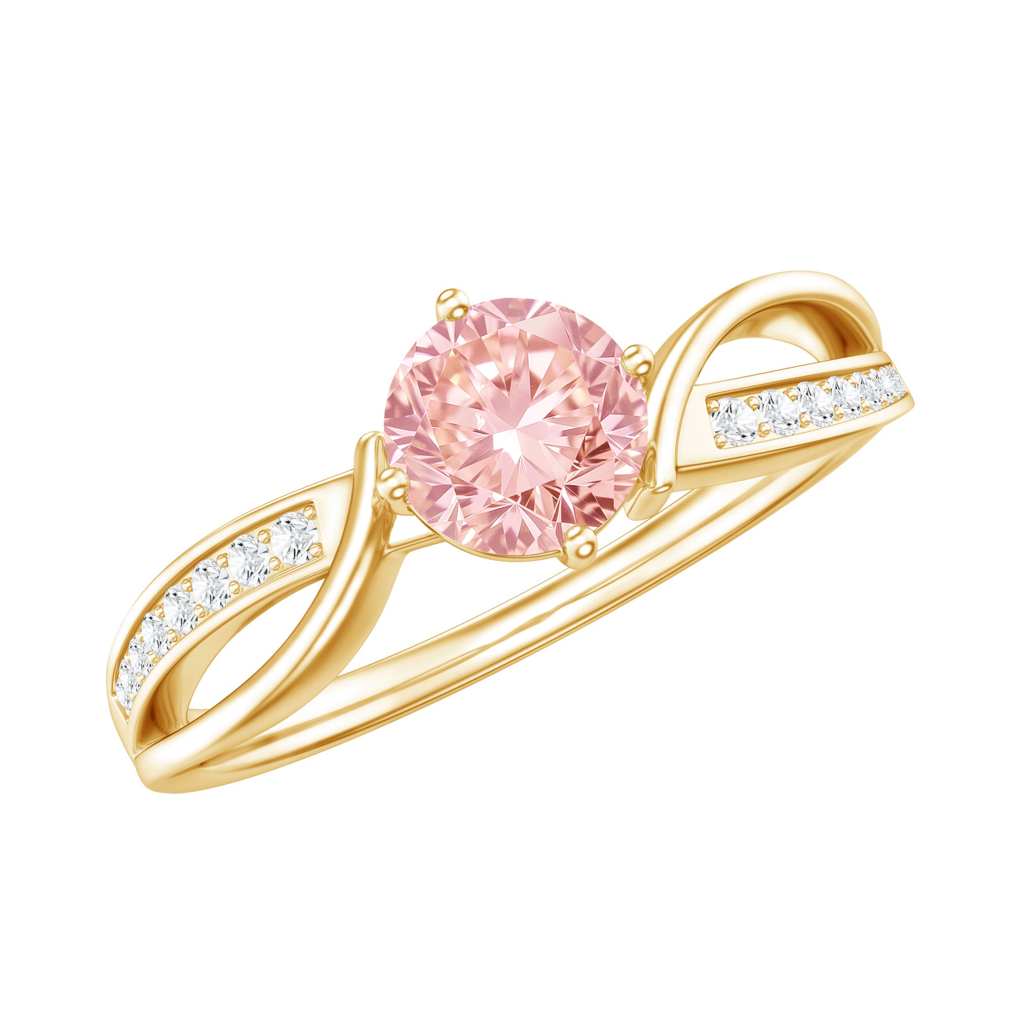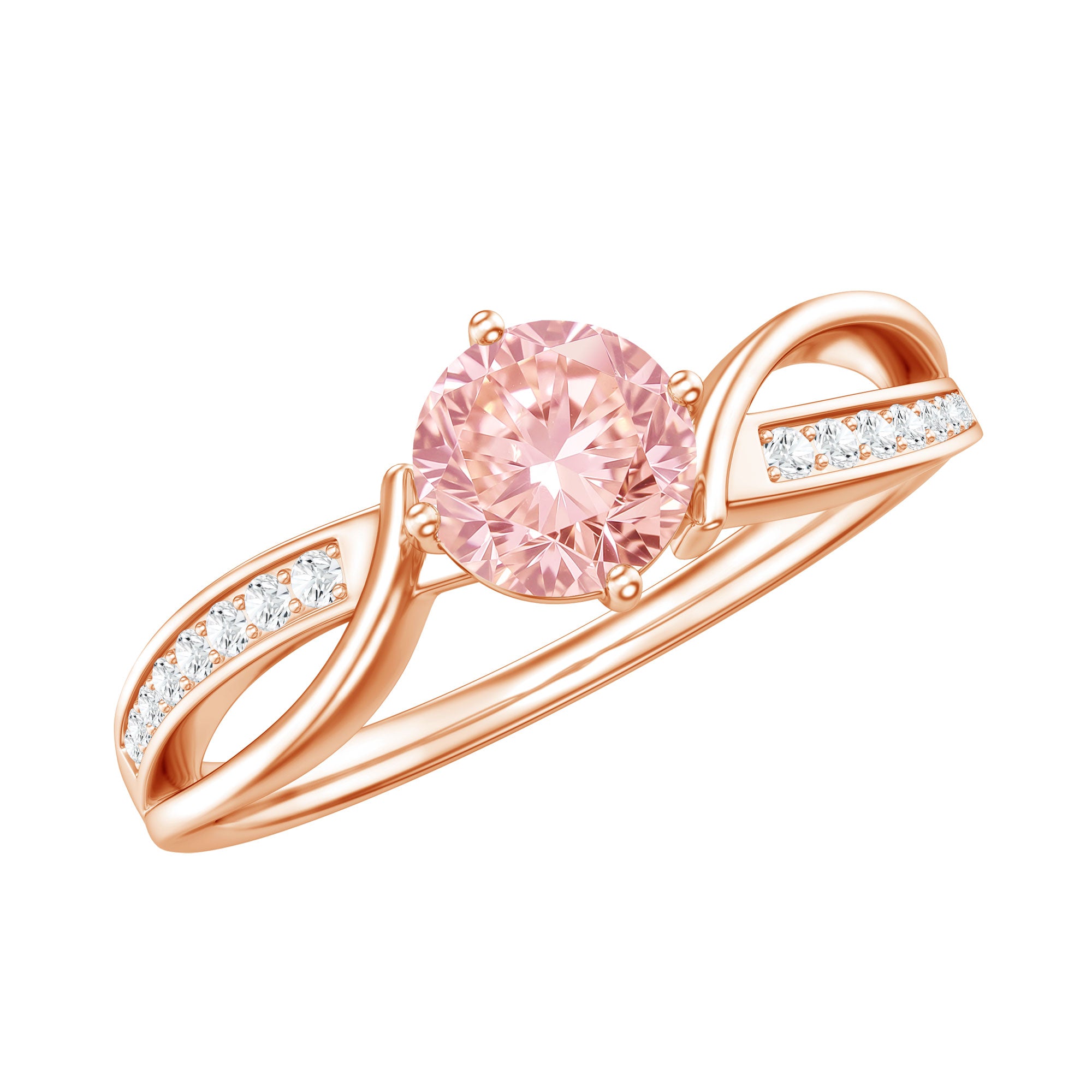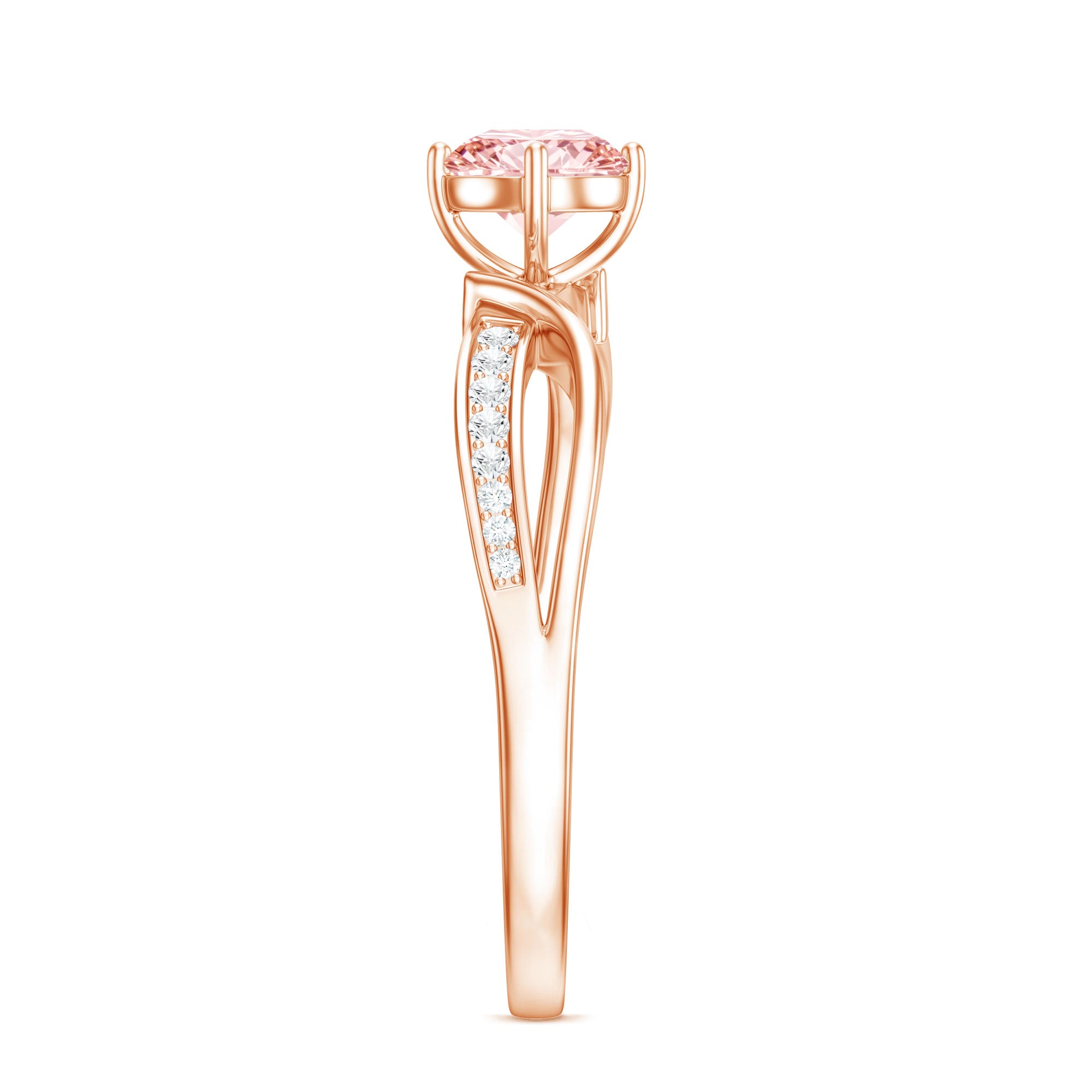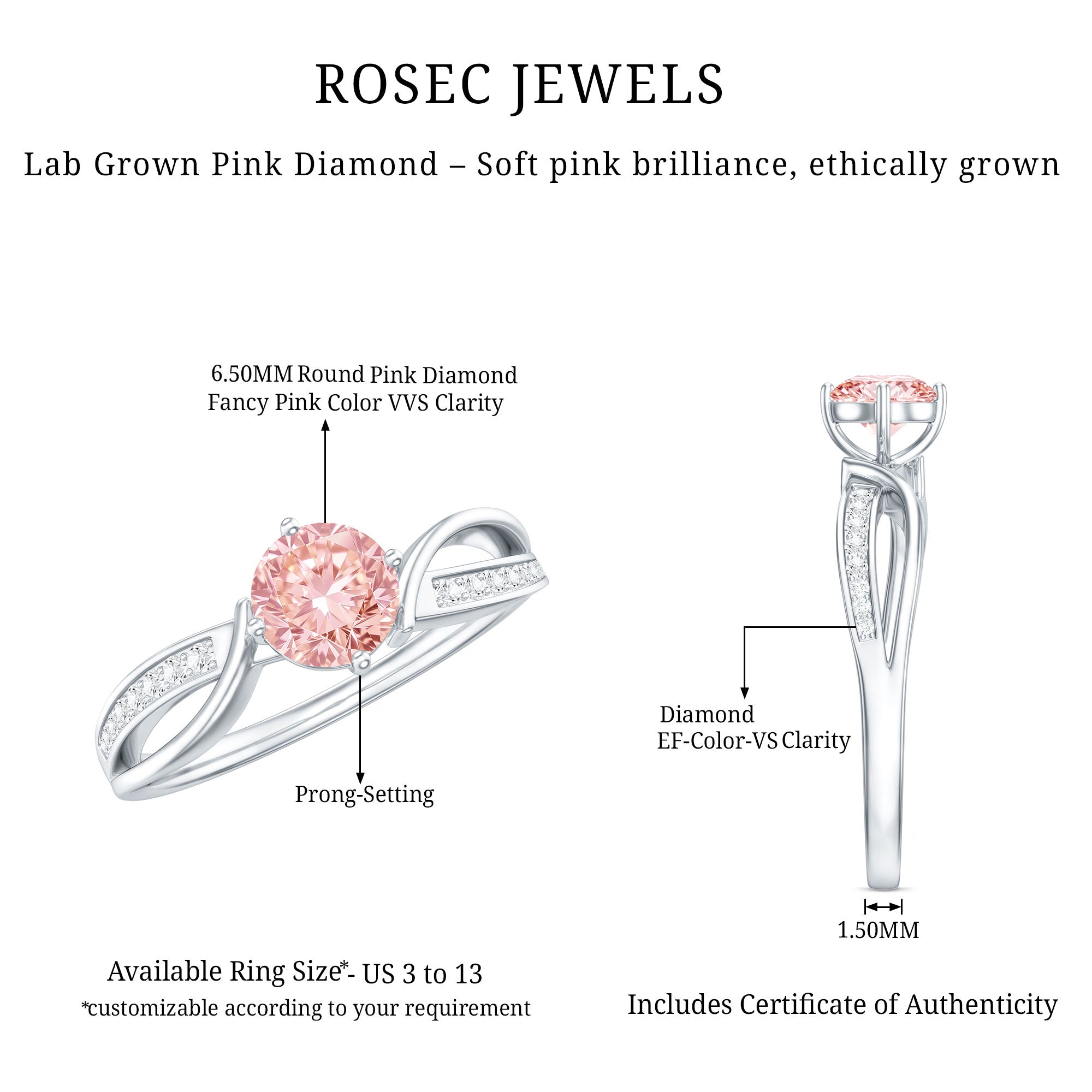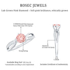 Express your timeless love with this Pink Diamond Engagement Ring, which symbolizes commitment and features an infinity symbol in its design. This ring showcases a 6.50 MM Round Shape Lab Grown Pink Diamond set in 4 Prong Diagonal Setting as a Solitaire, complemented by an infinity shank decorated with round cut Lab Grown Diamond stones. As a timeless representation of everlasting love, this Infinity Engagement Ring embodies unending devotion and commitment. Built to last, it signifies limitless love and is an ideal piece to express your feelings. The infinity band beautifully celebrates your bond. Distinctive and valued, this Solitaire Engagement Ring truly stands out. So, elevate your style with this ring and treasure it for a lifetime. Renowned for its exceptional brilliance and luster, the VVS quality lab grown pink diamond paired with HI Color SI Clarity white diamond makes this jewelry piece truly special. This Pink Engagement Ring encapsulates your eternal love, making it the perfect accessory for your big day. With its intricate and delicate design, it serves as a wonderful heirloom piece of jewelry.
