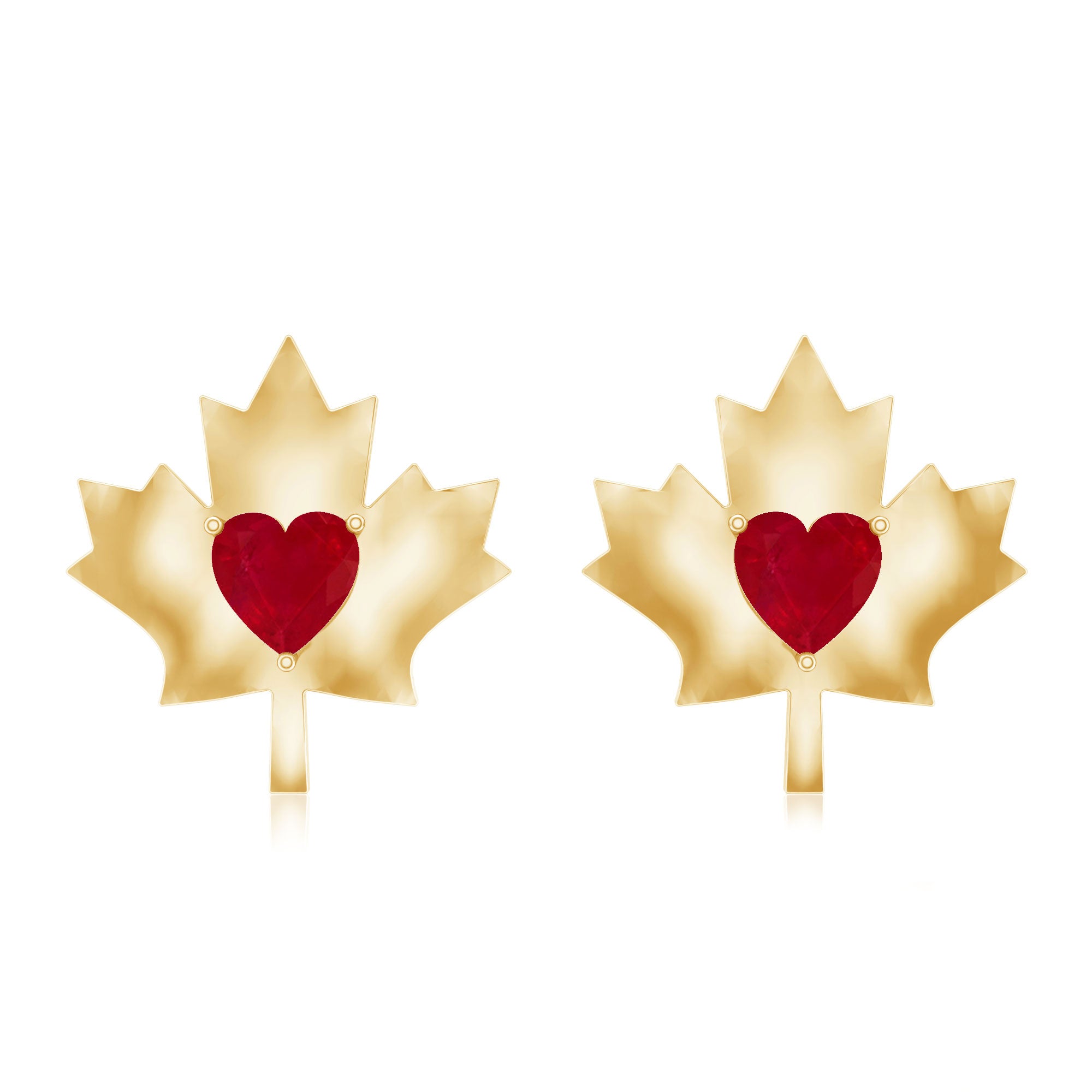 1 CT Maple Leaf Stud Earrings with Heart Shaped Ruby