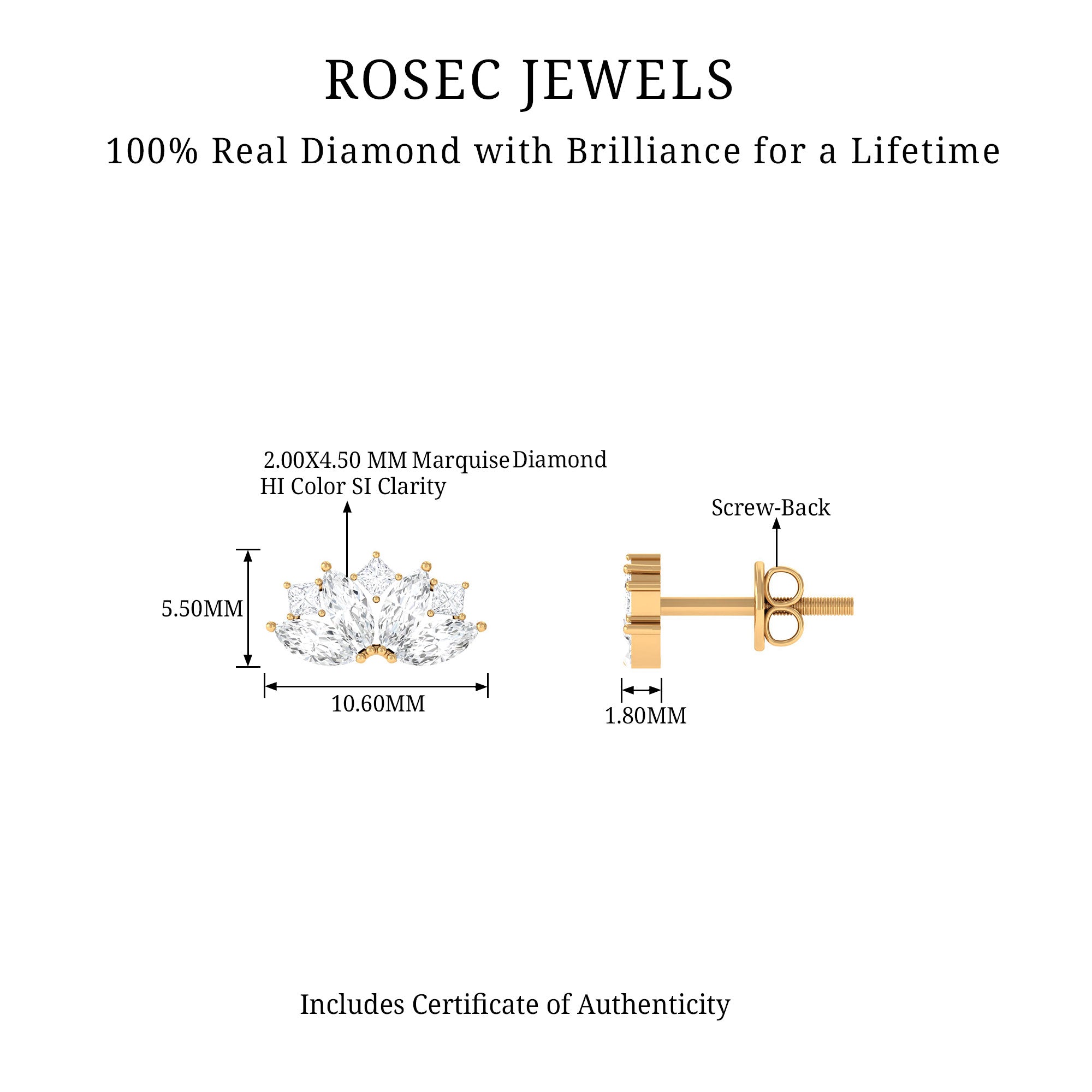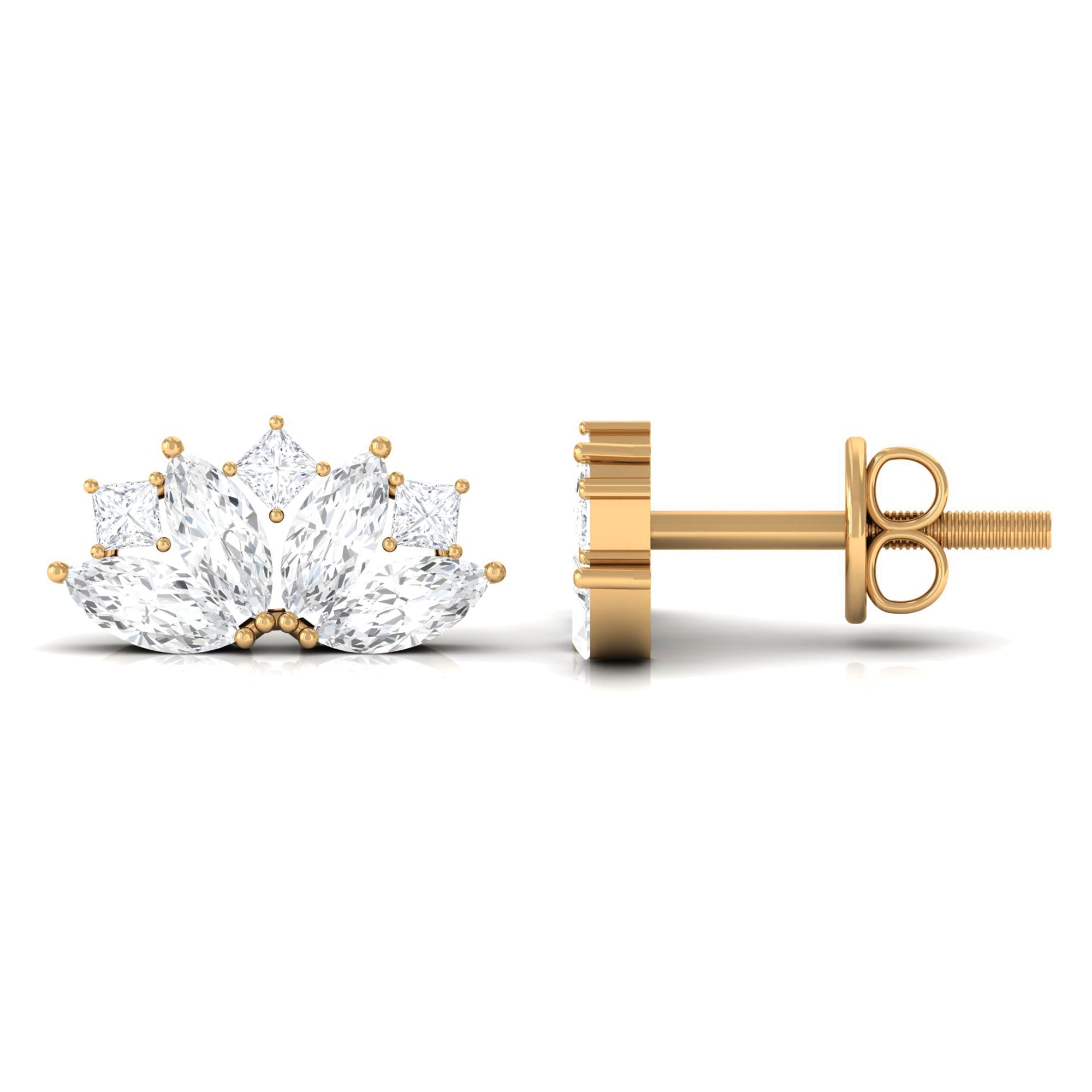 1 CT Marquise and Princess Cut Diamond Stud Earrings