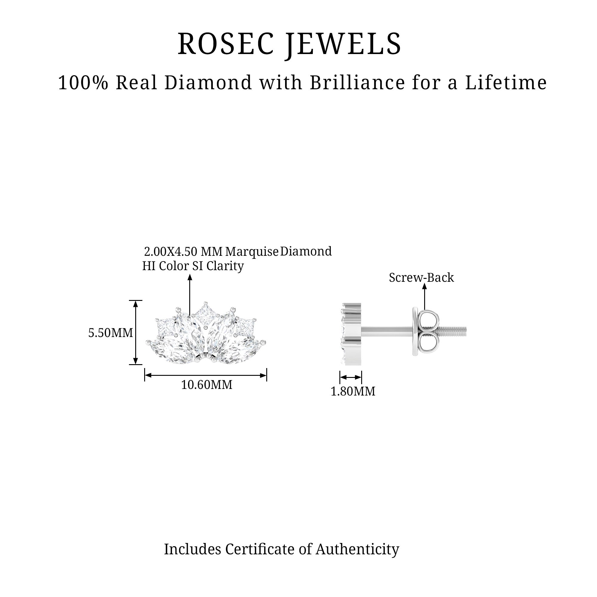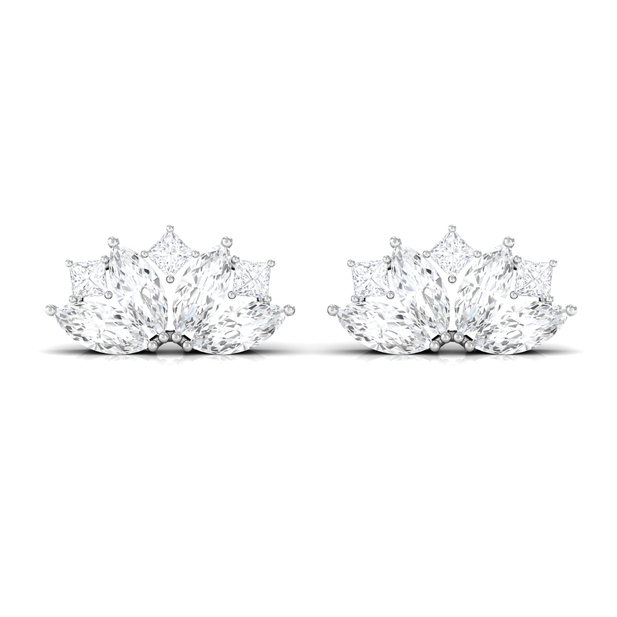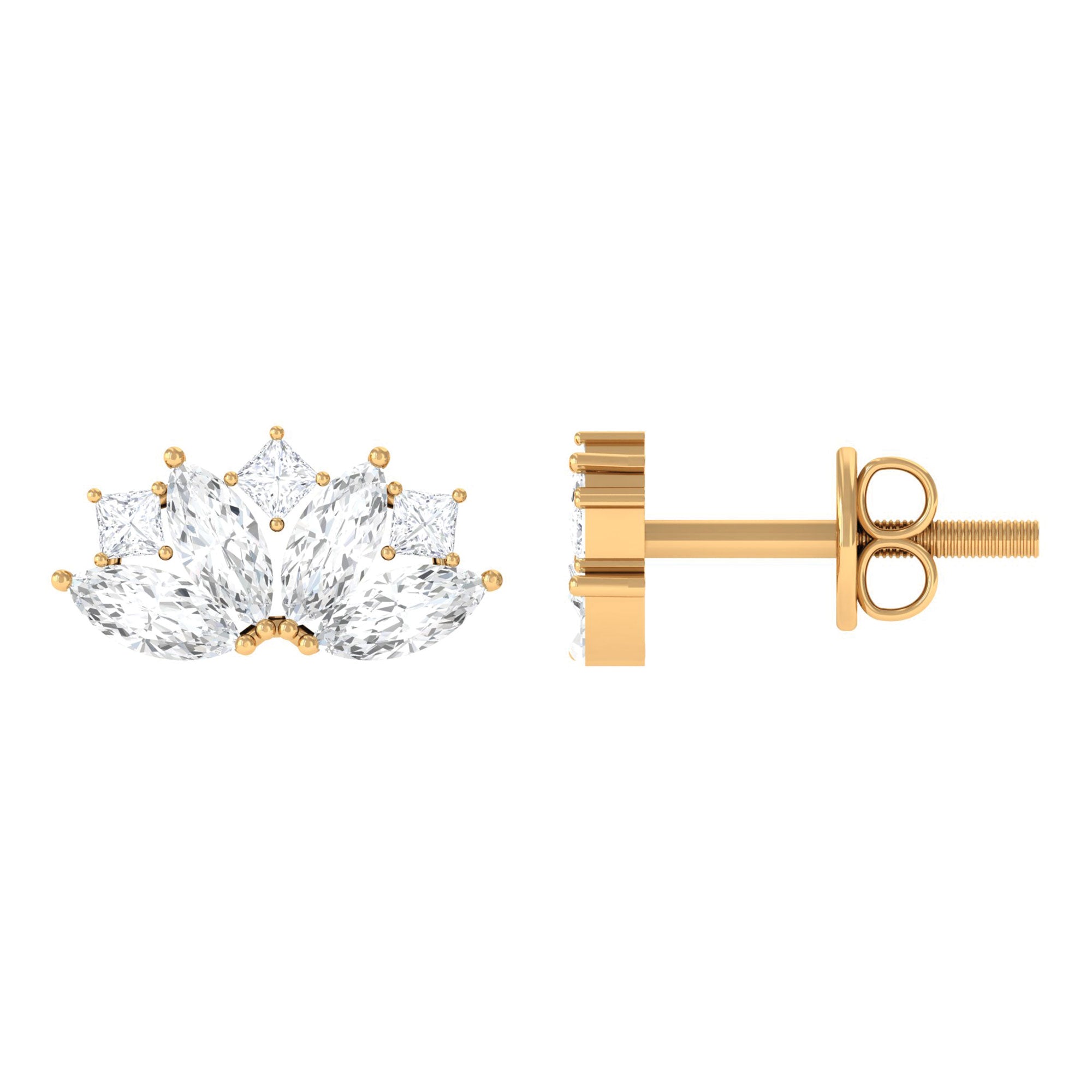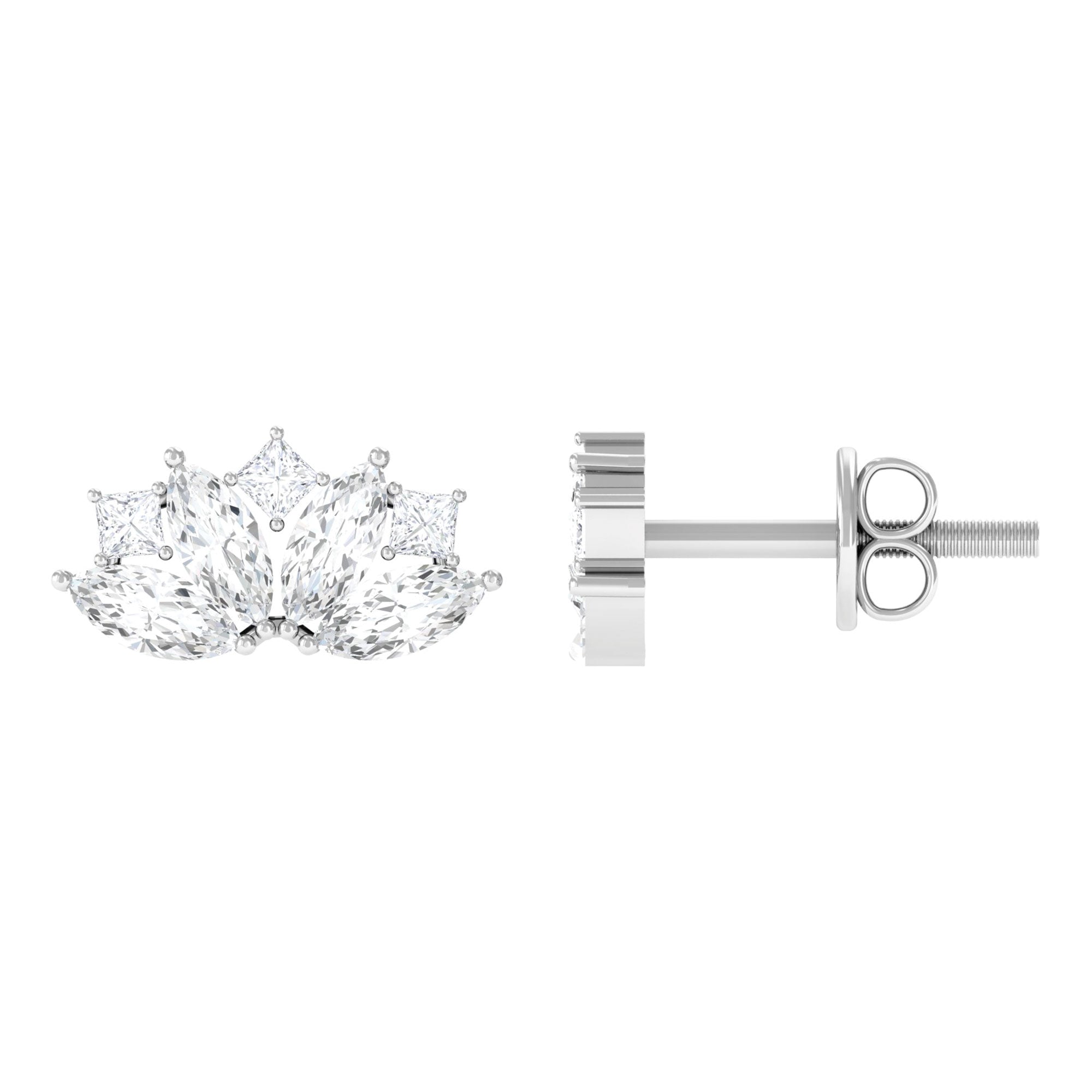 1 CT Marquise and Princess Cut Diamond Stud Earrings