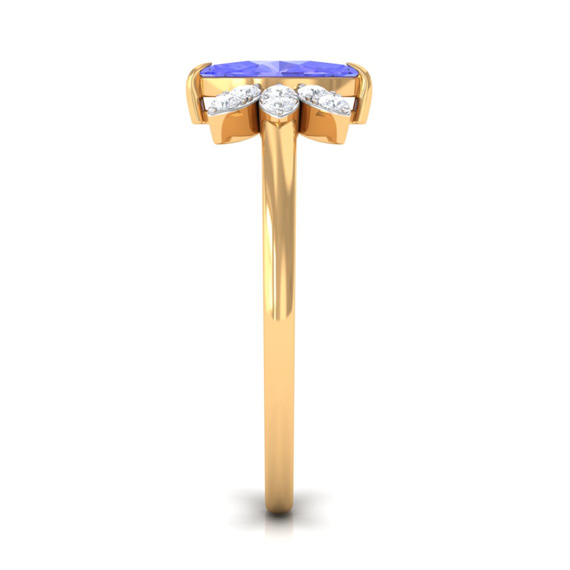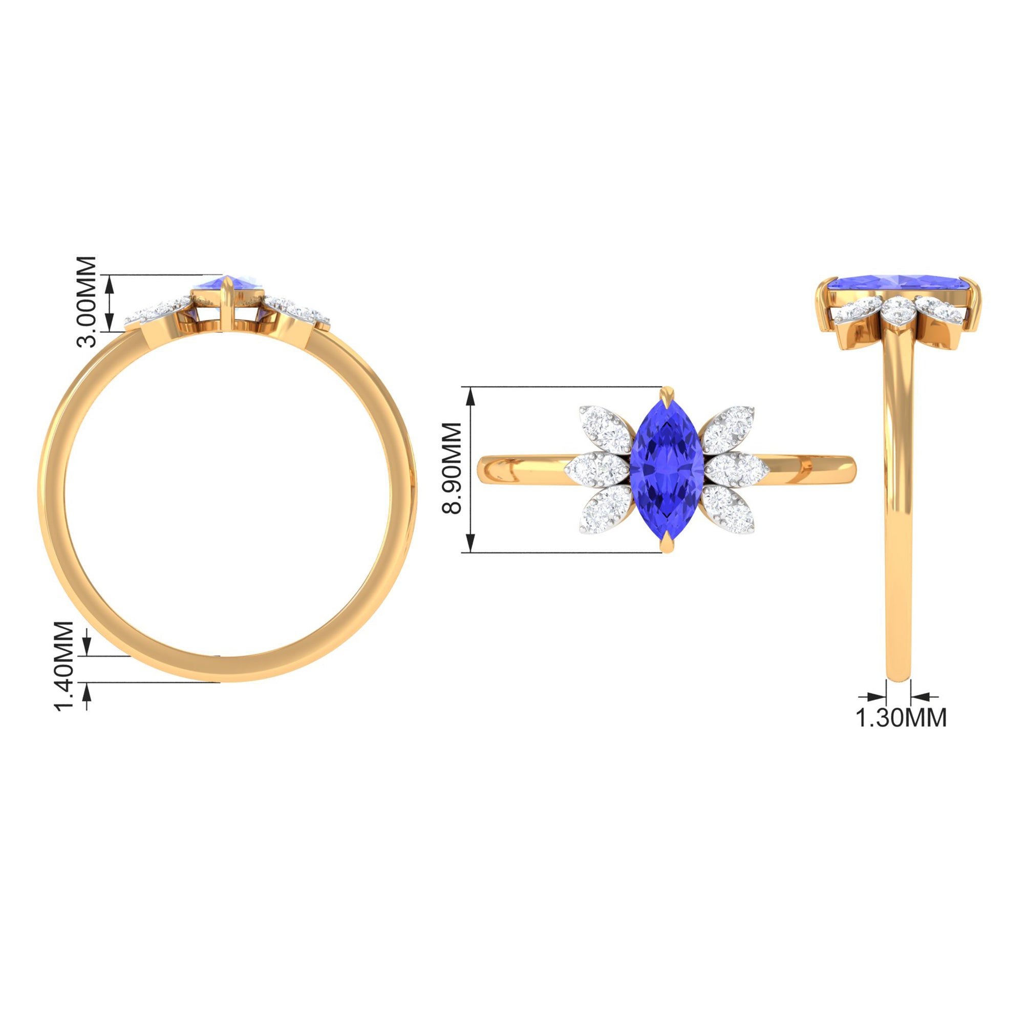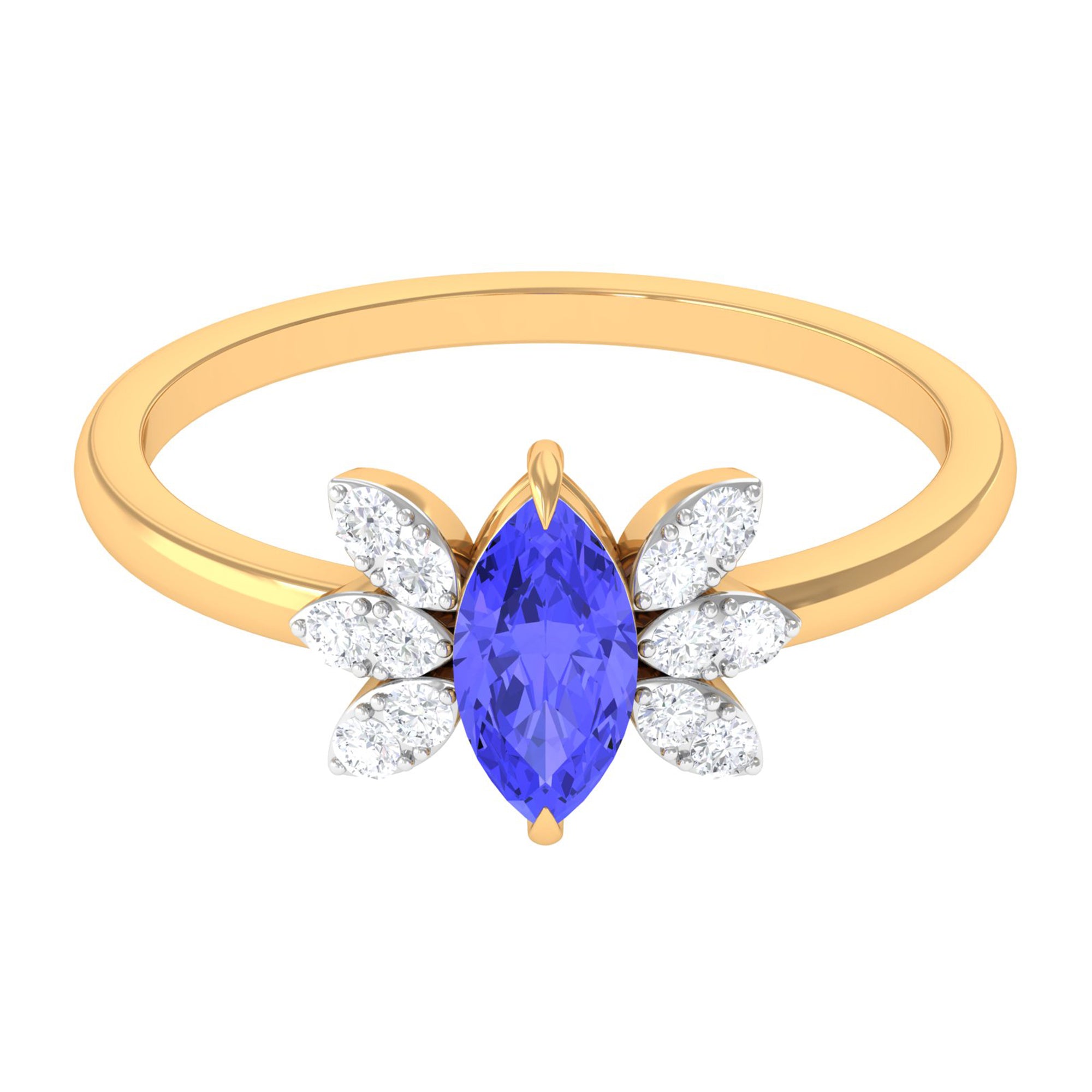 We bring you this Attractive Tanzanite Promise Ring to make your new beginnings on a right note. It has been beautifully designed and crafted in Gold. Adorned with Sparkling Marquise Cut Tanzanite in the center with Diamond Accents on a Marquise Shape Pattern, the Promise Ring is ideal for December born woman.