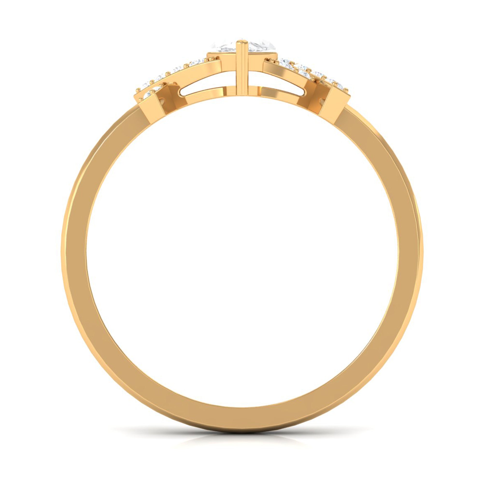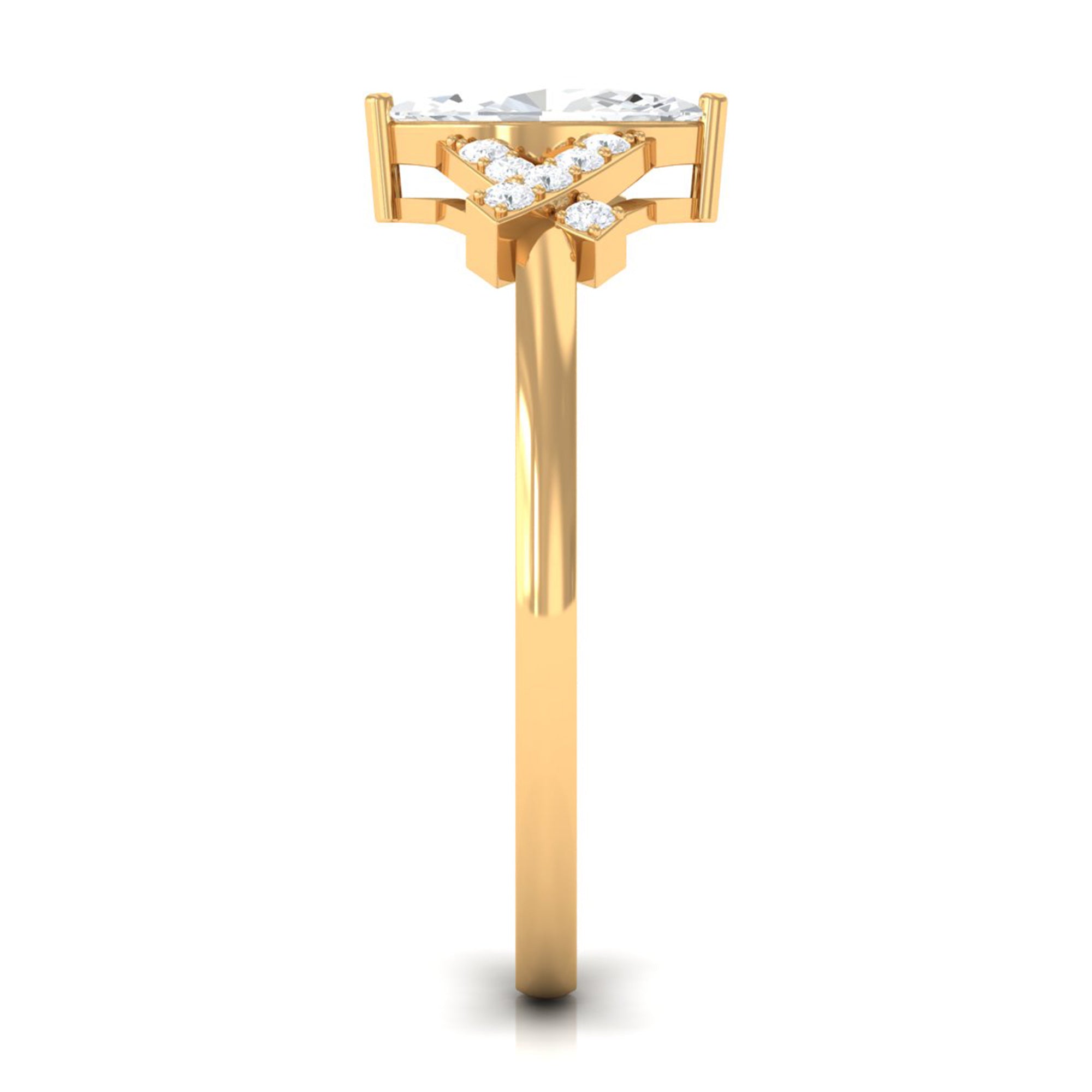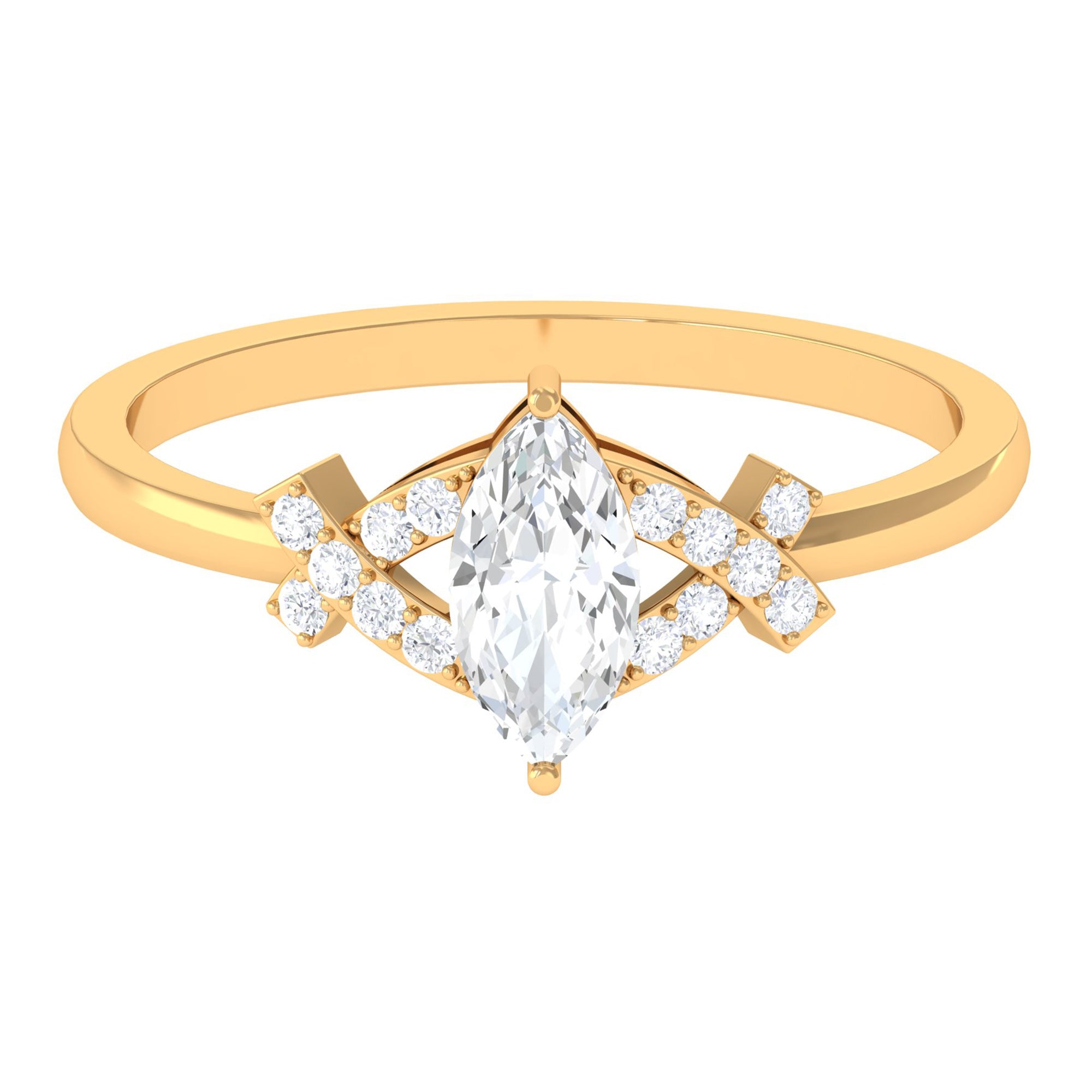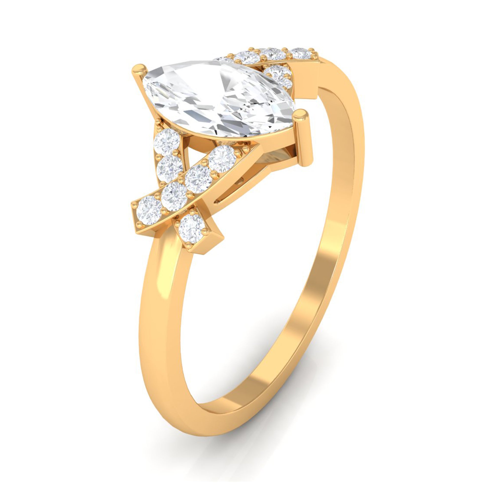 Cubic Zirconia Solitaire Ring is crafted in Gold, embellished with Marquise cut Zircon to give this ring a perfect look. The Round Cut Zircon accent is for a better and secure look. This CZ Engagement Ring has an exquisite Split Shank, make this ring perfect for your lady.