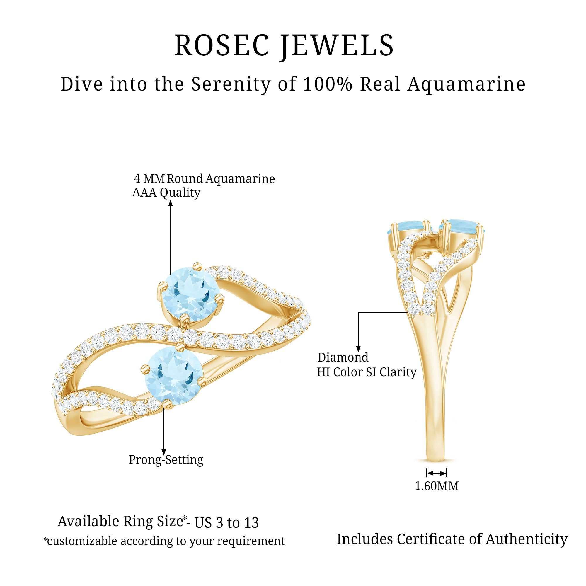 Flaunt Your Style with this Minimal Engagement Ring is crafted in solid gold which is embellished with Round Shape Aquamarine and Diamond in a prong setting. This Gold Engagement Ring is available in solid gold.