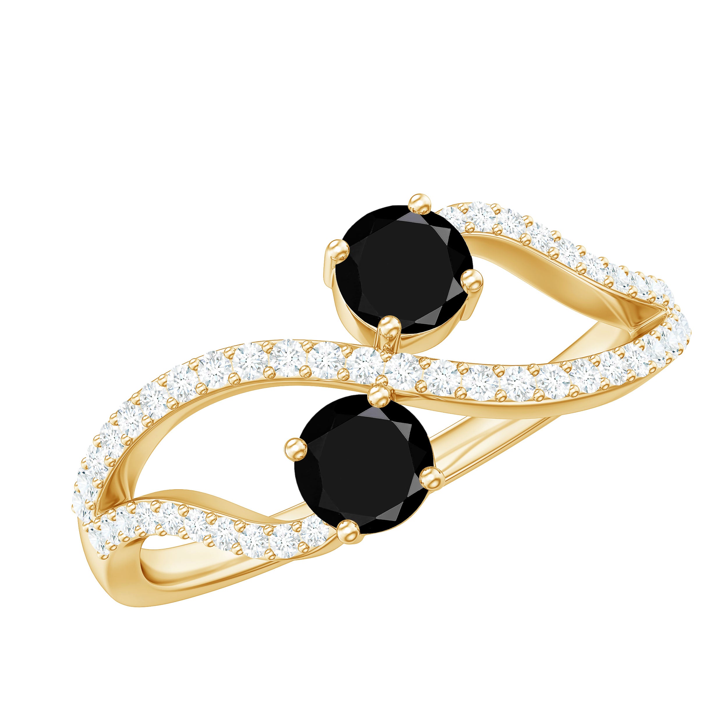 Flaunt Your Style with this Minimal Engagement Ring is crafted in solid gold which is embellished with Round Shape black diamond and Diamond in a prong setting. This Gold Engagement Ring is available in solid gold.