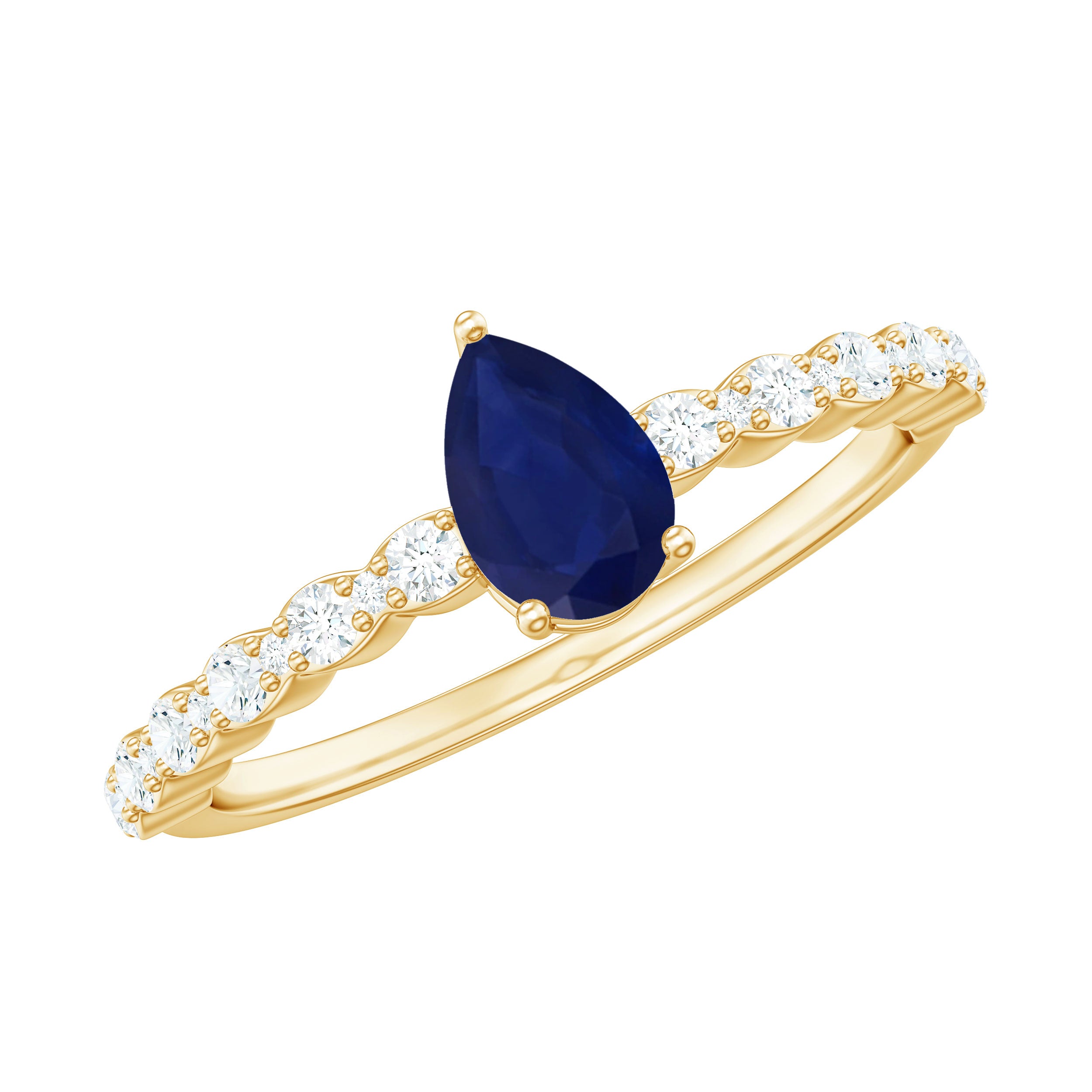 Make her truly yours when you present this Blue Sapphire Ring. It is adorned with Pear Cut Blue Sapphire in 3 Prong Setting and Diamond on Solitaire Ring. This Sapphire Solitaire Ring is a perfect present for the person born in September.