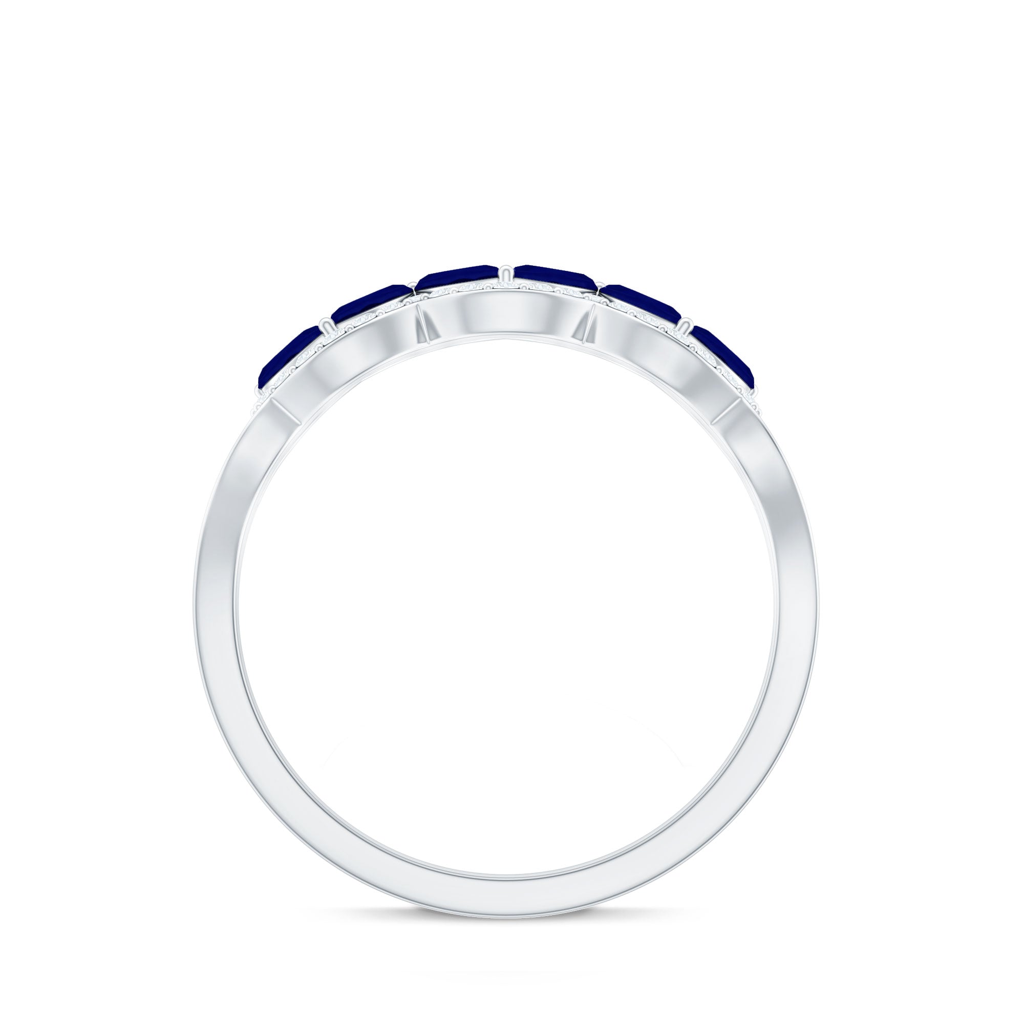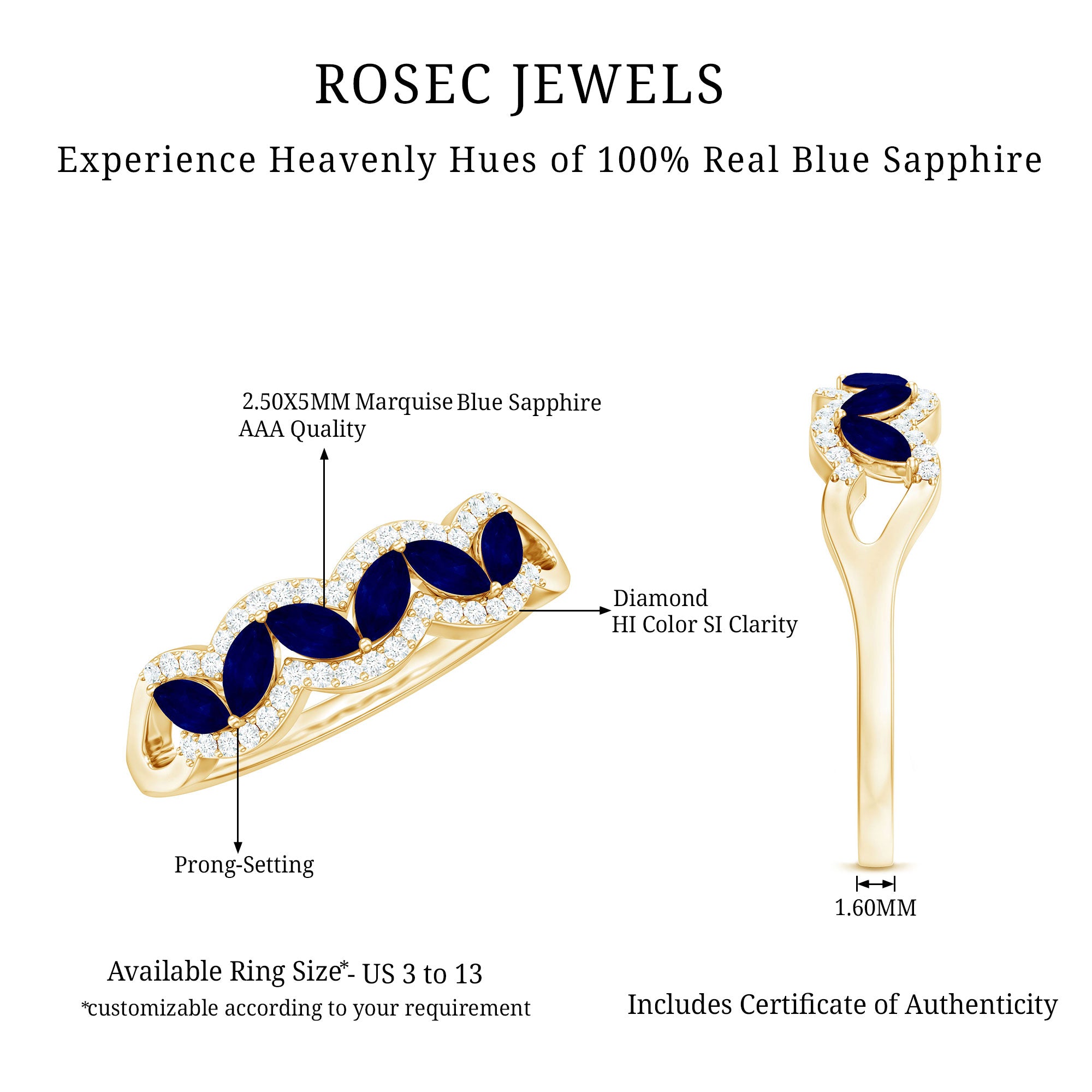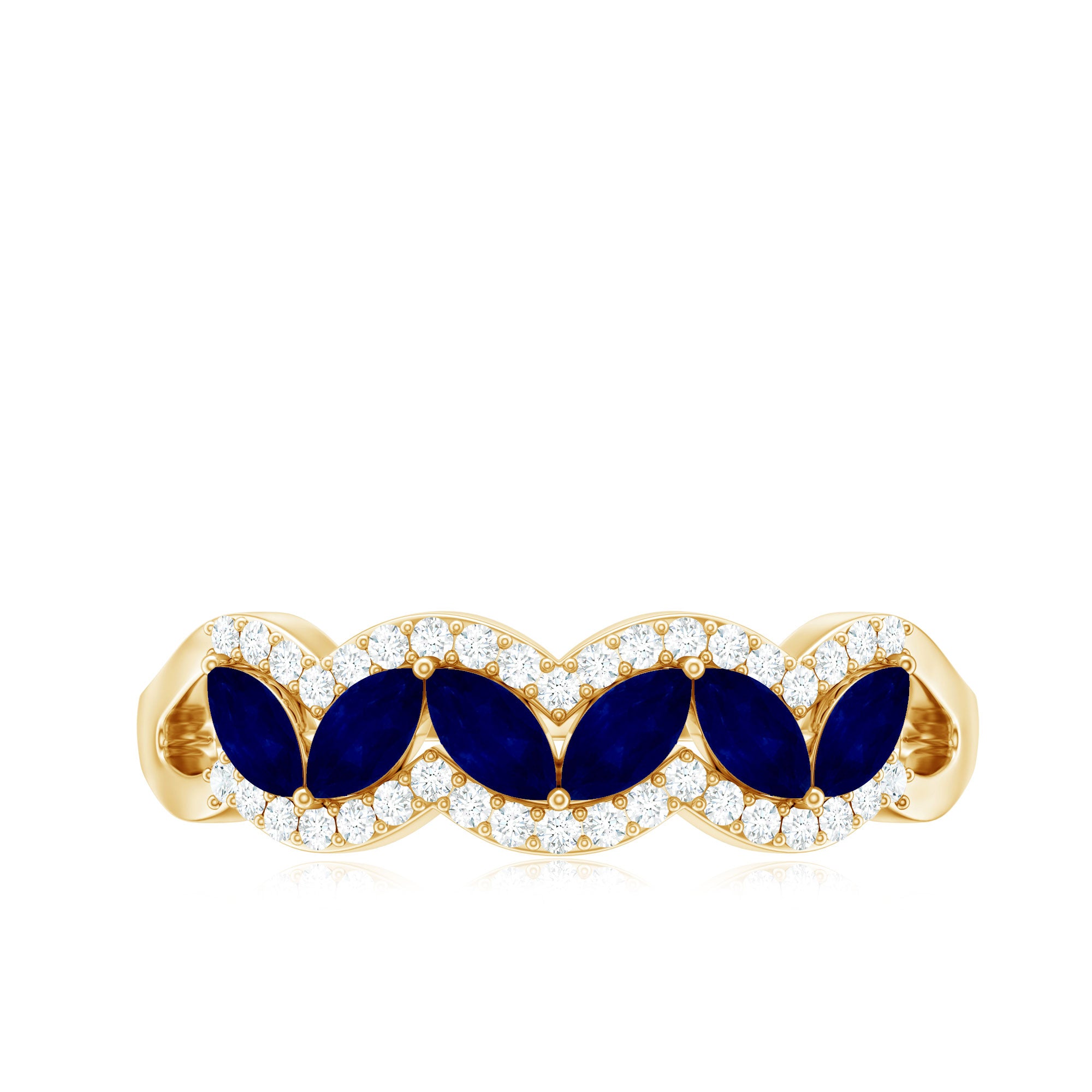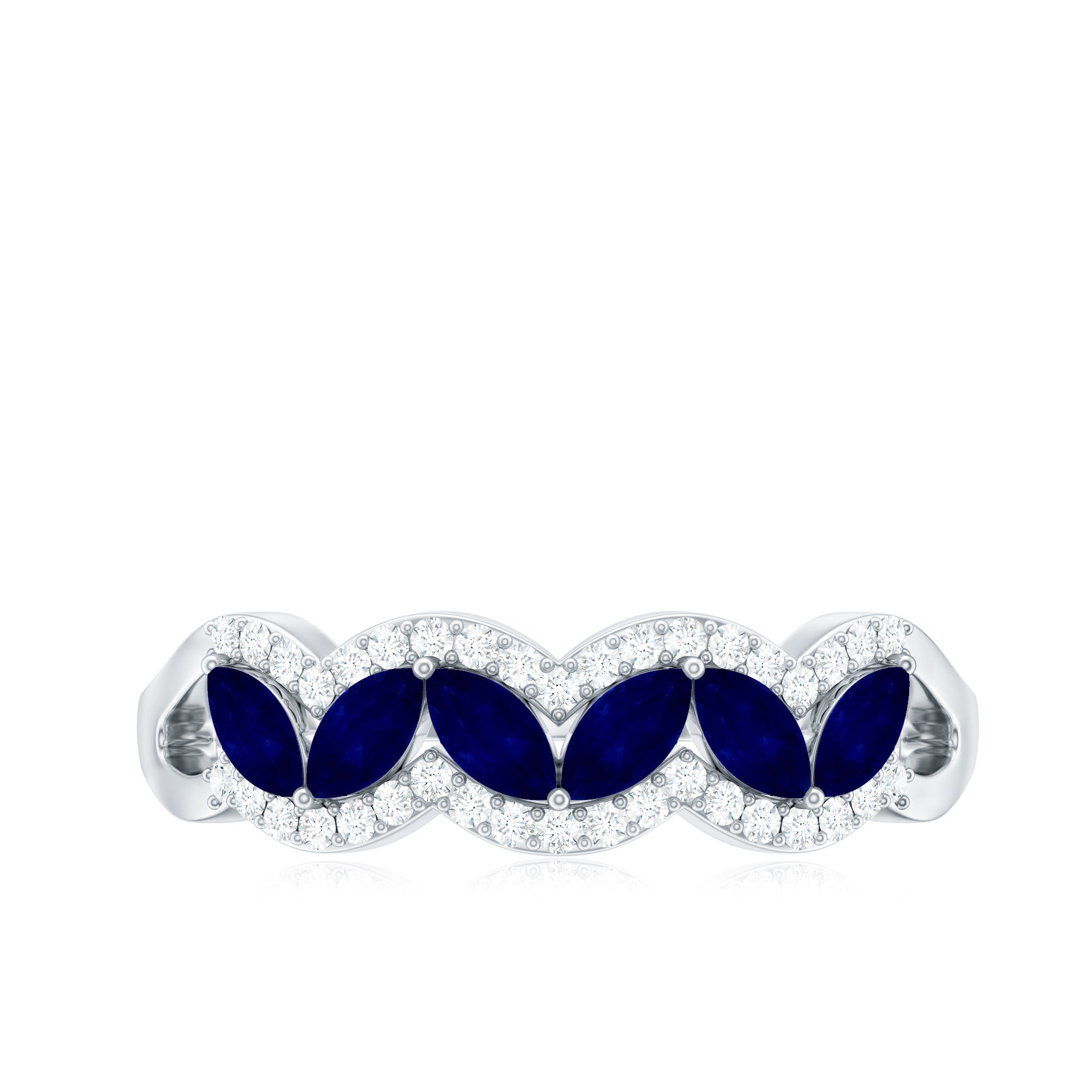 1 CT Minimal Marquise Cut Blue Sapphire Anniversary Ring with Diamond Accent