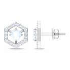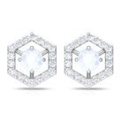 1 CT Minimal Moonstone and Diamond Geometric Stud Earrings