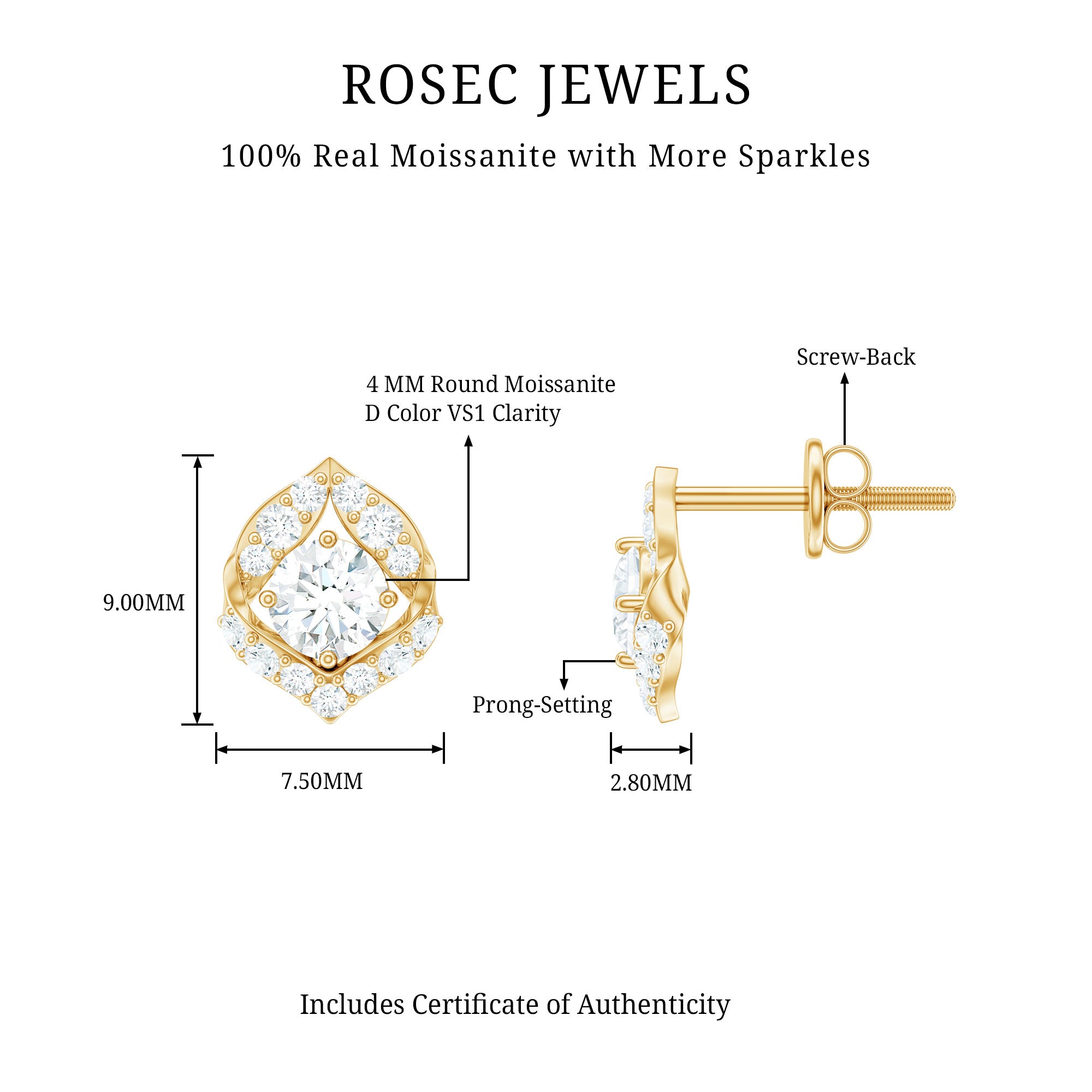 1 CT Moissanite Petal Stud Earrings with Screw Back