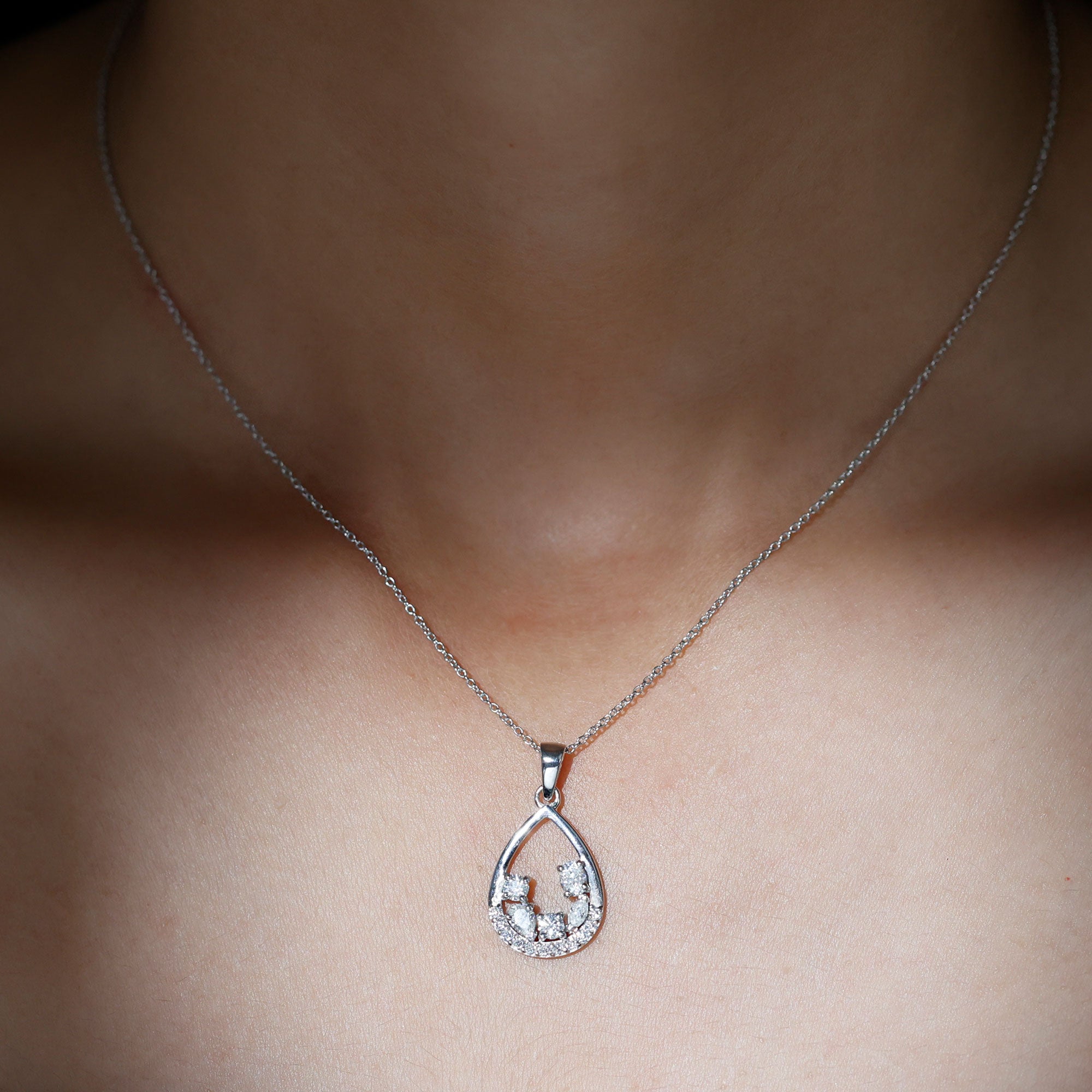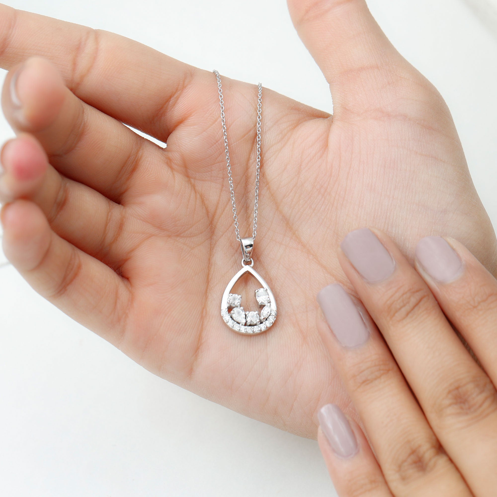 Designer Moissanite Teardrop Pendant Necklace in Silver