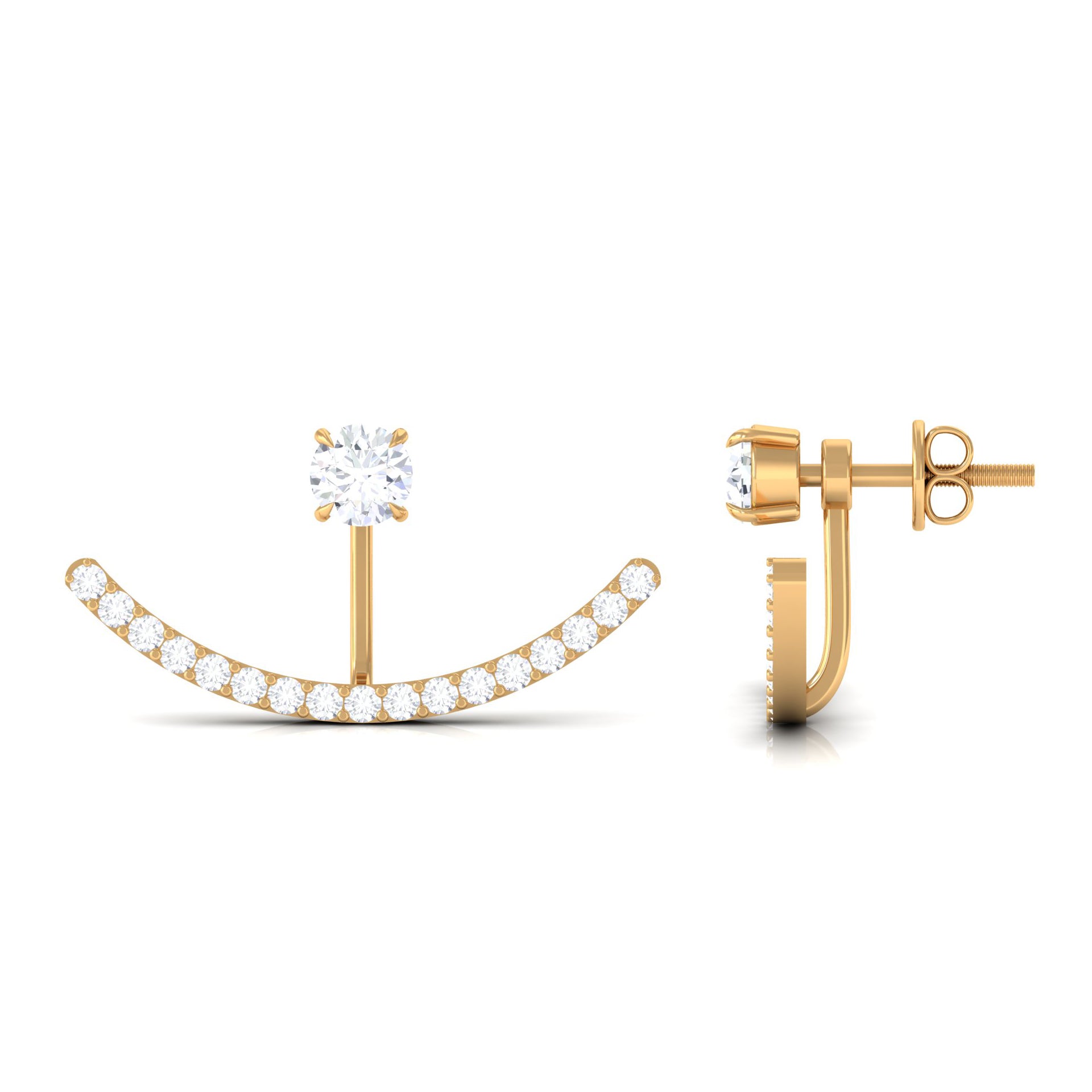 1 CT Natural Diamond Classic Gold Jacket Earrings in Prong Setting