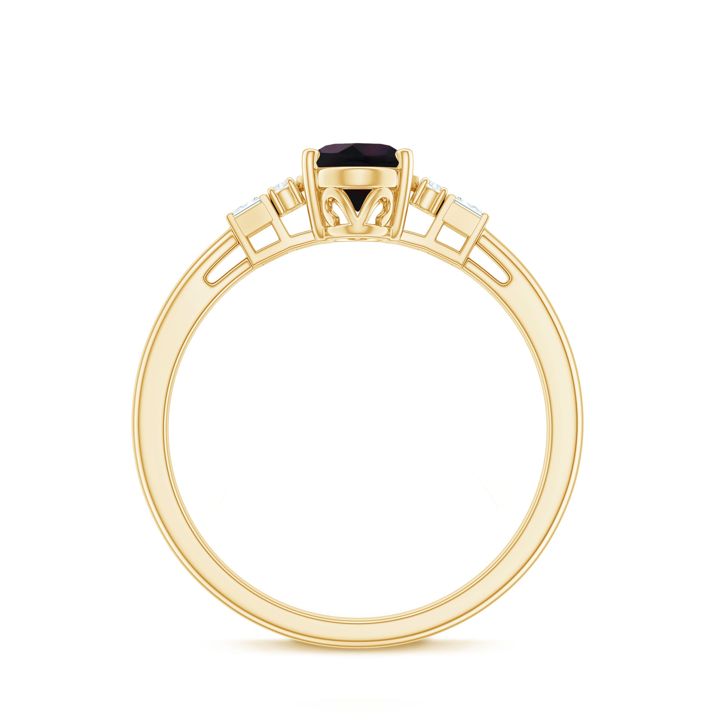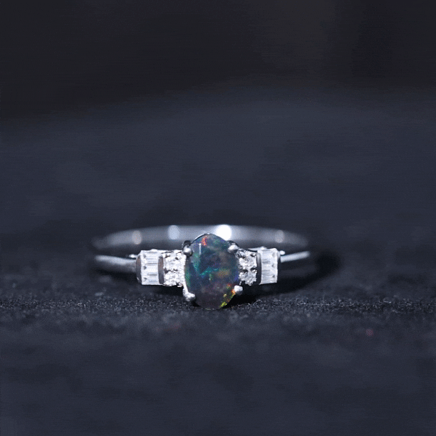 Graceful and divine, this Black Opal Engagement Ring is a classic piece of fine jewelry, artistically crafted in Gold for a perfect and luxurious look. Oval Shape Black Opal Ring has Baguette and Round Diamond embellishing the ring from sideways. Make your significant other extremely happy by presenting her with this Black Opal Diamond Ring.