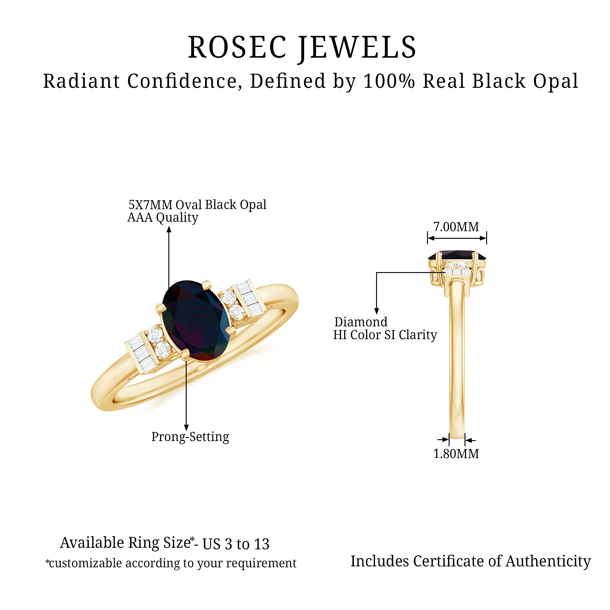 1 CT Natural Oval Cut Black Opal Classic Engagement Ring with Diamond