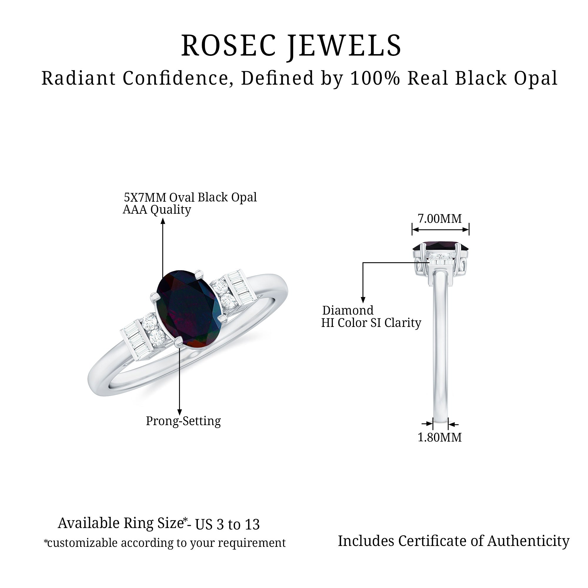 1 CT Natural Oval Cut Black Opal Classic Engagement Ring with Diamond