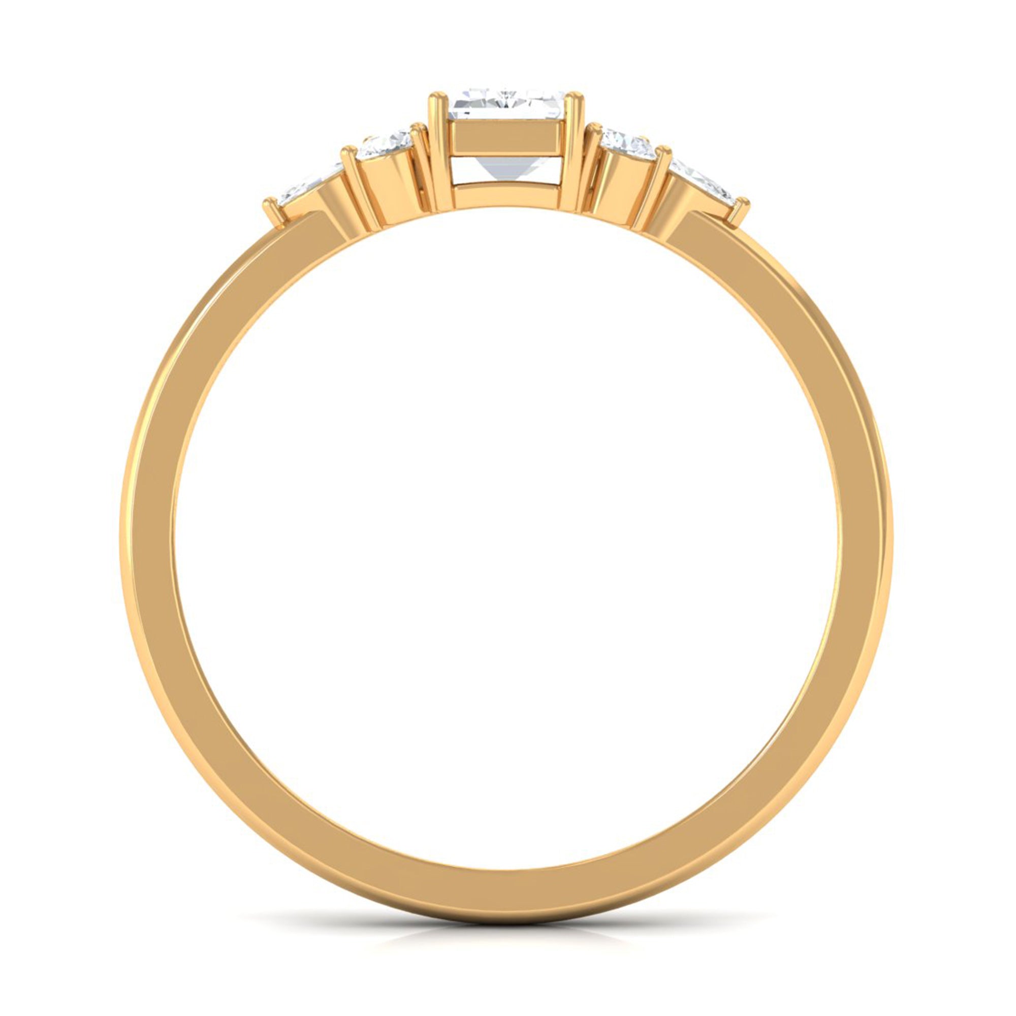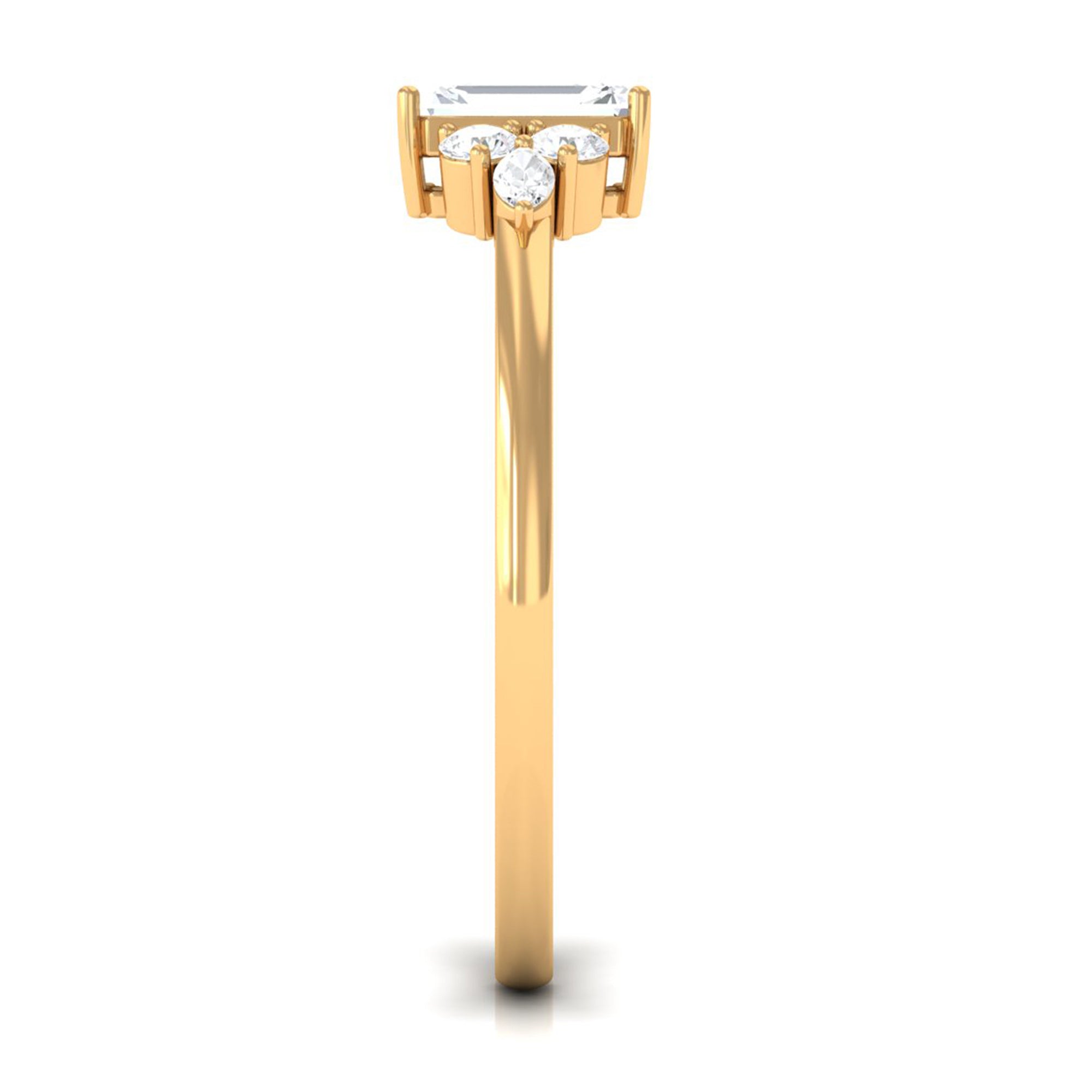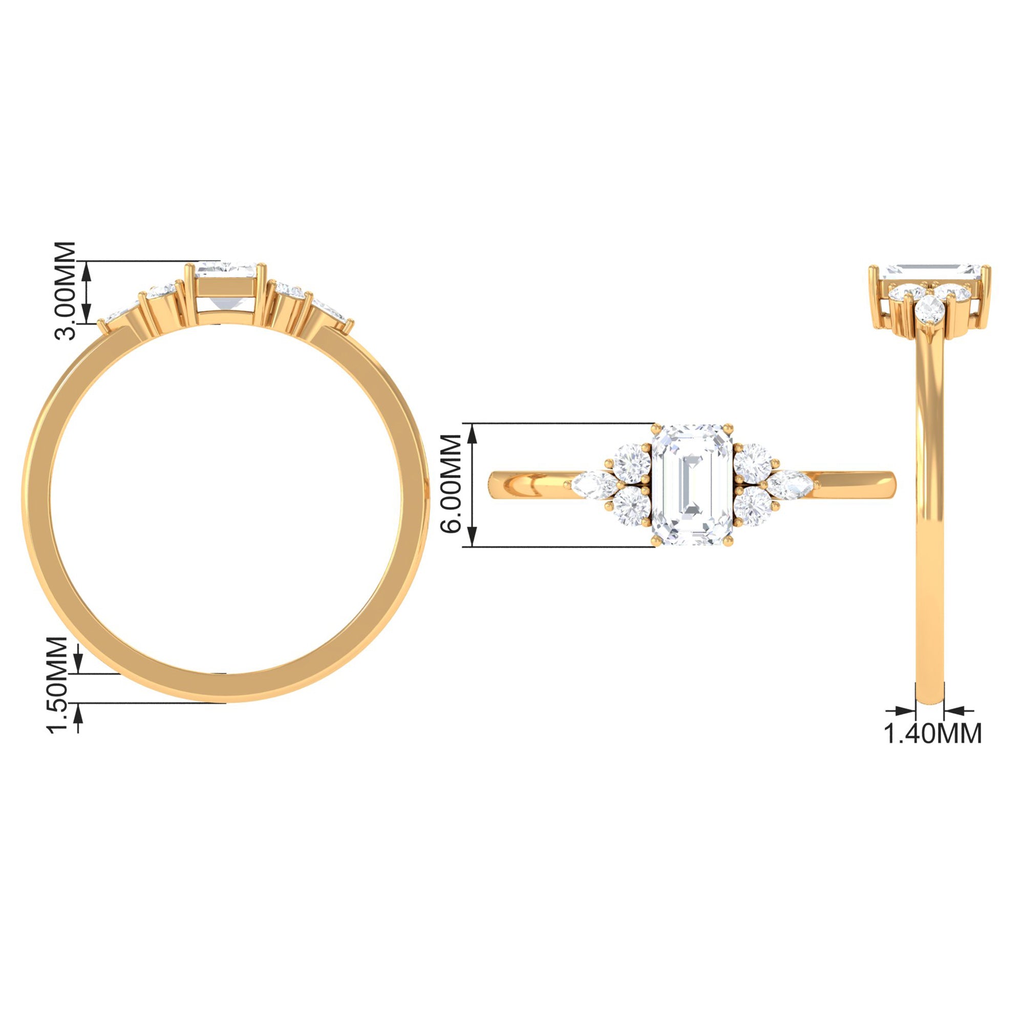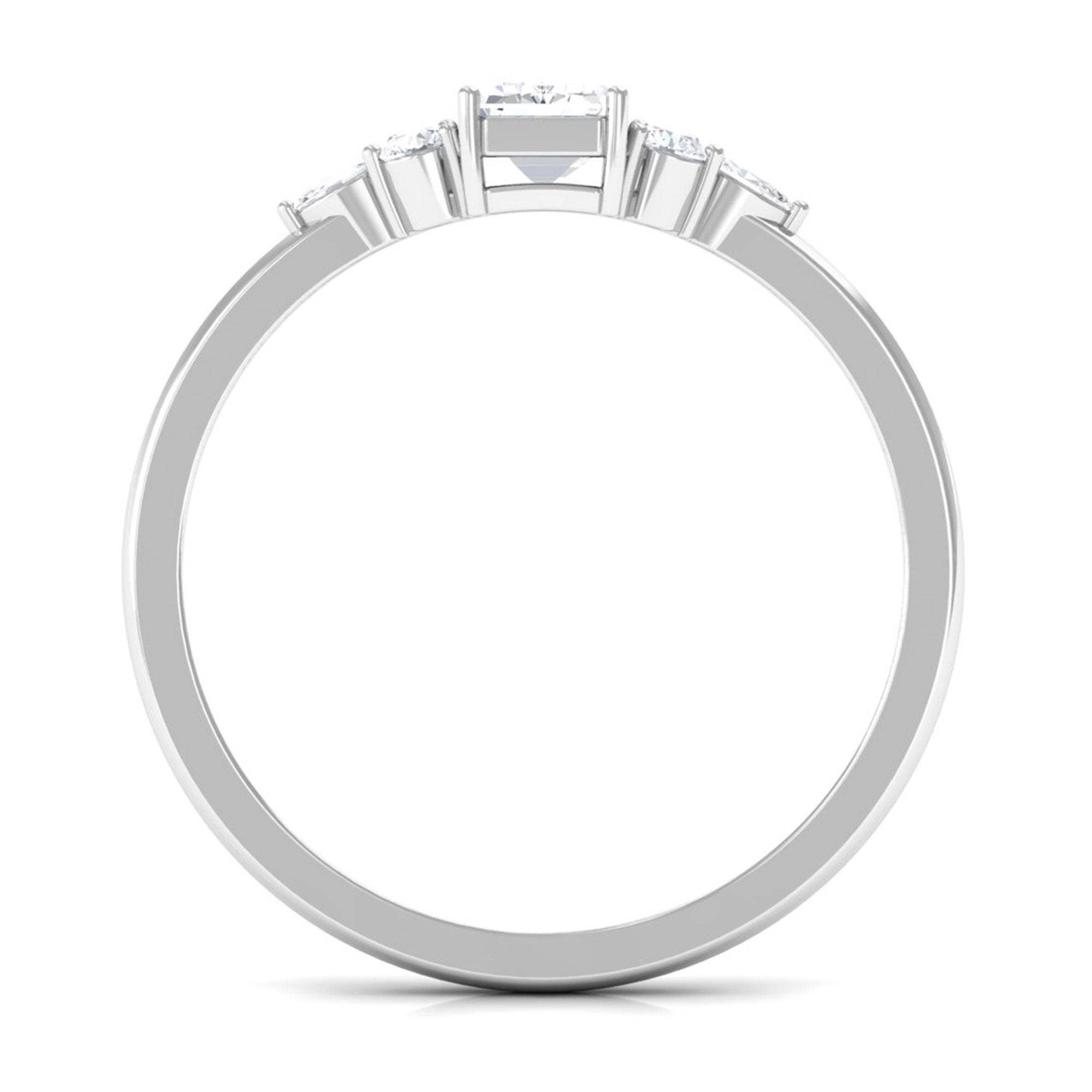 A perfect ring is a more precise ways to express emotions to your better half. This beautiful ring will make her feel on cloud nine, the Zircon Engagement Ring effortlessly draws your attention. This ring is embellished with Octagon Cut Zircon set as solitaire with CZ Trio on each side, creating a glistening appeal. This Simulated Diamond Ring is excellent choice for Solitaire Engagement jewelry.