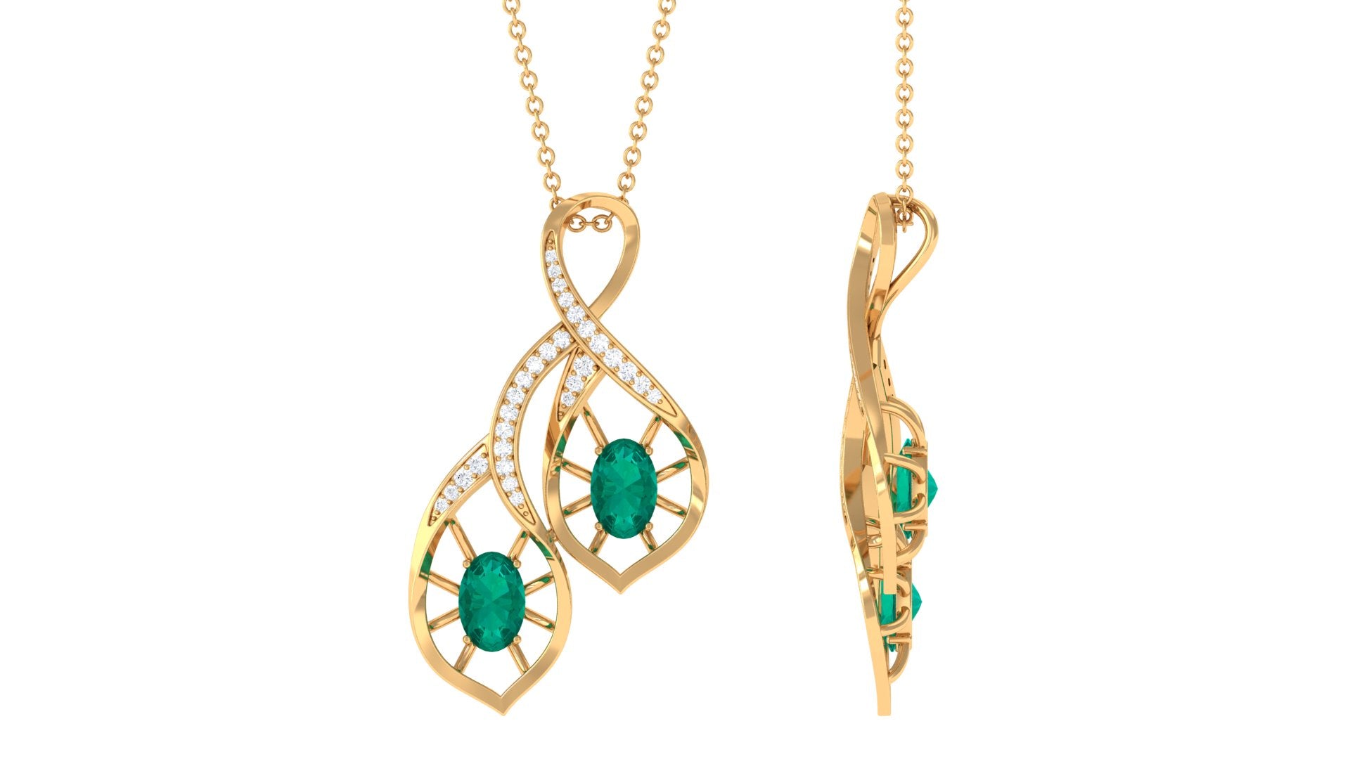 1 CT Oval Cut Emerald Infinity Pendant with Diamond Stones