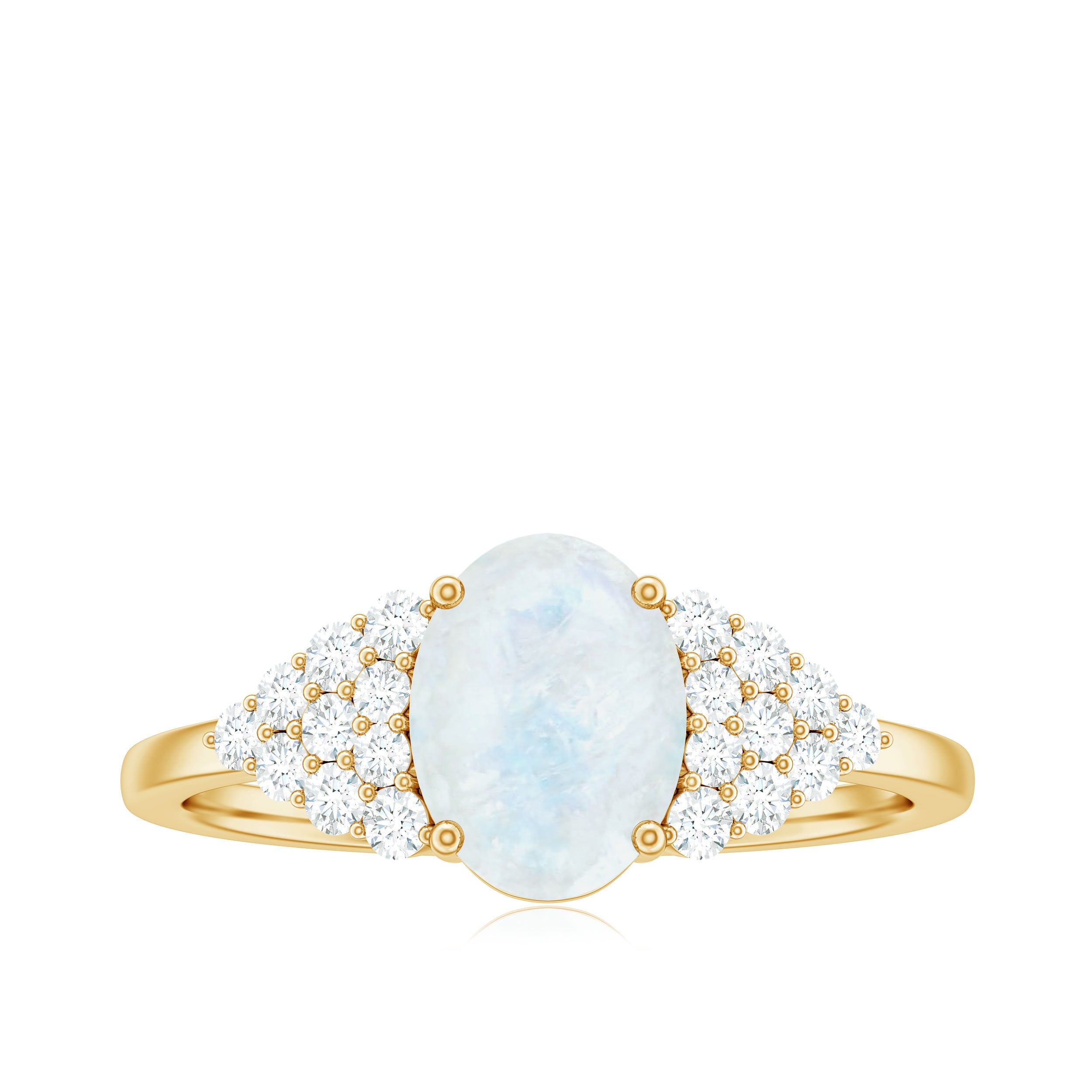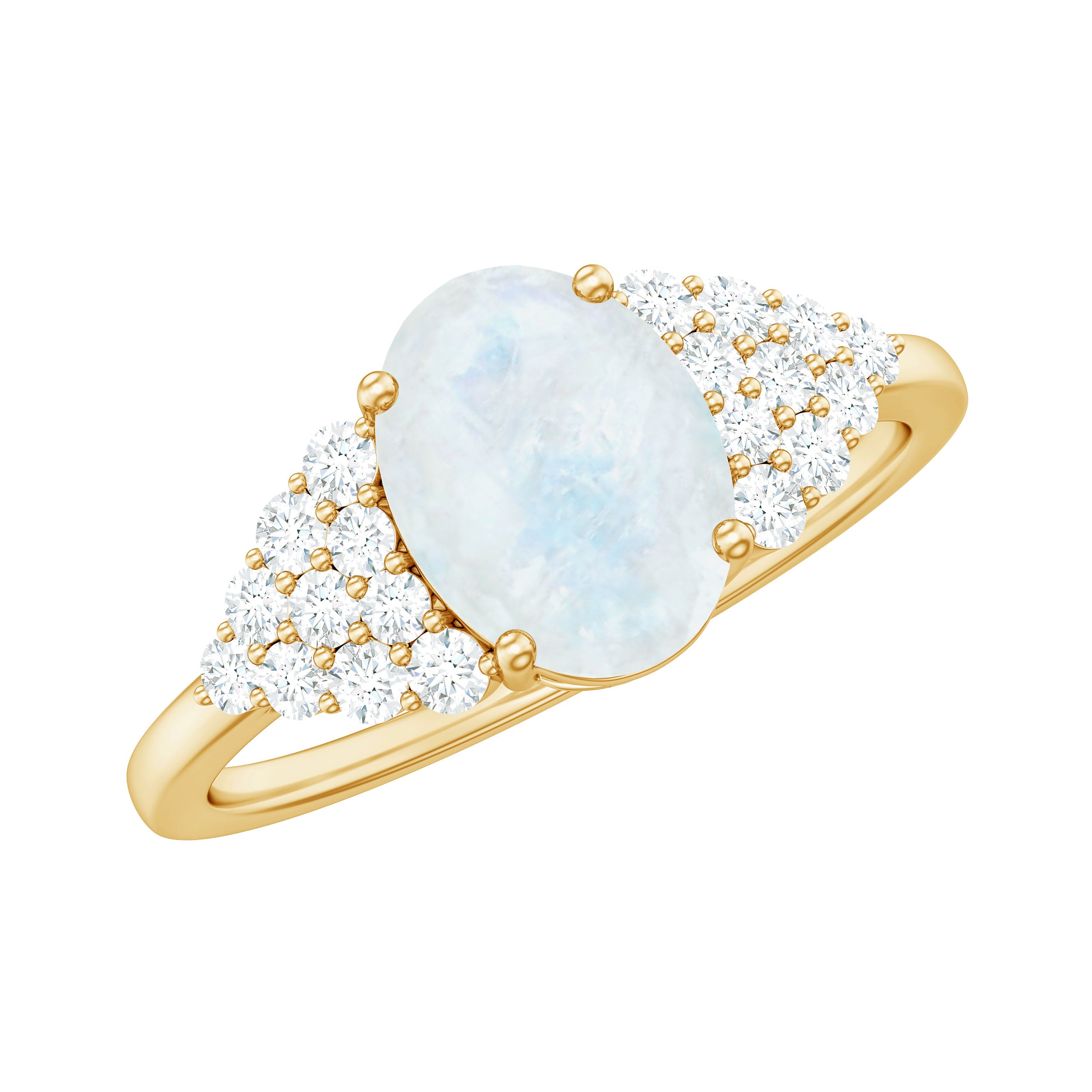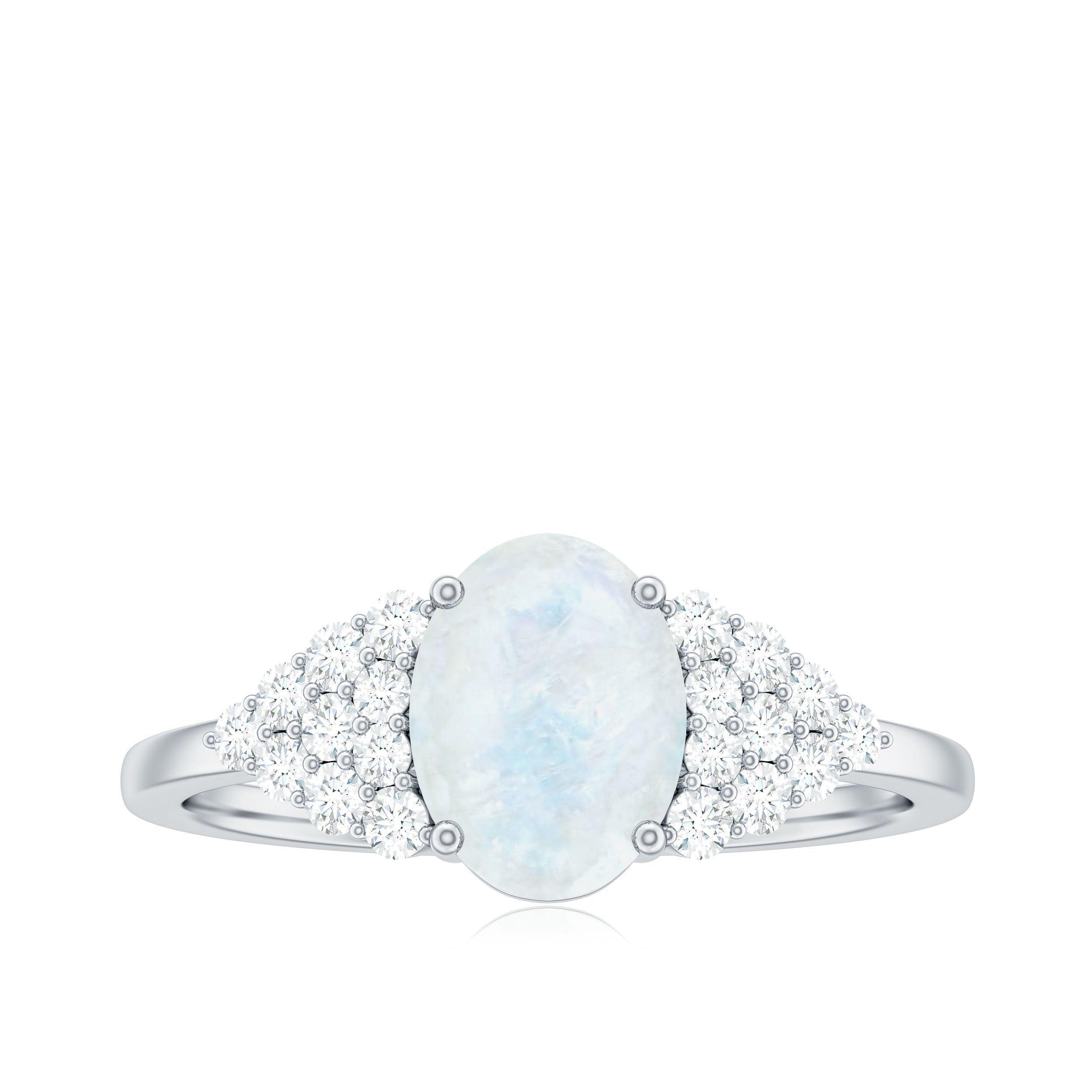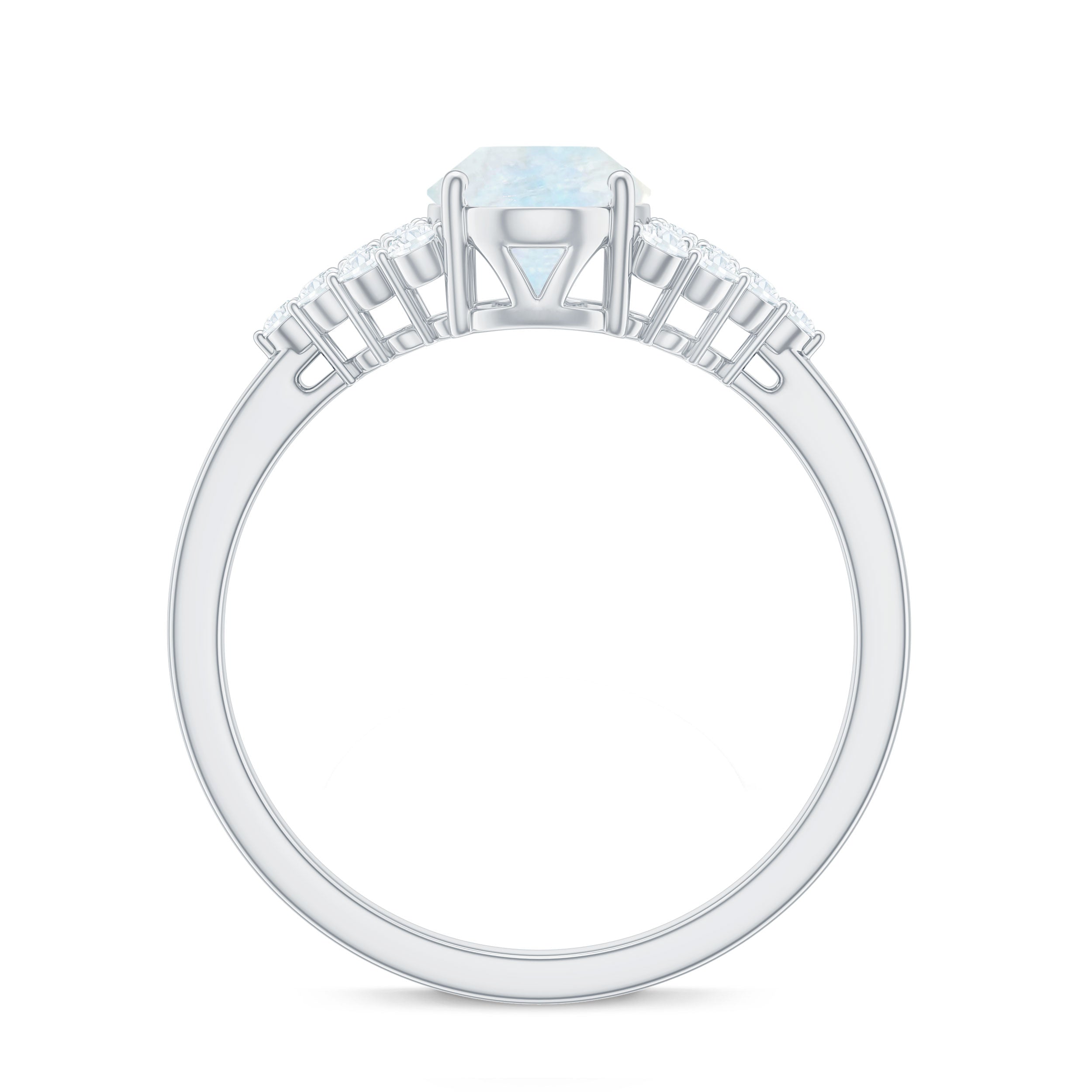 1 CT Oval Cut Moonstone Solitaire Ring with Diamond Accent