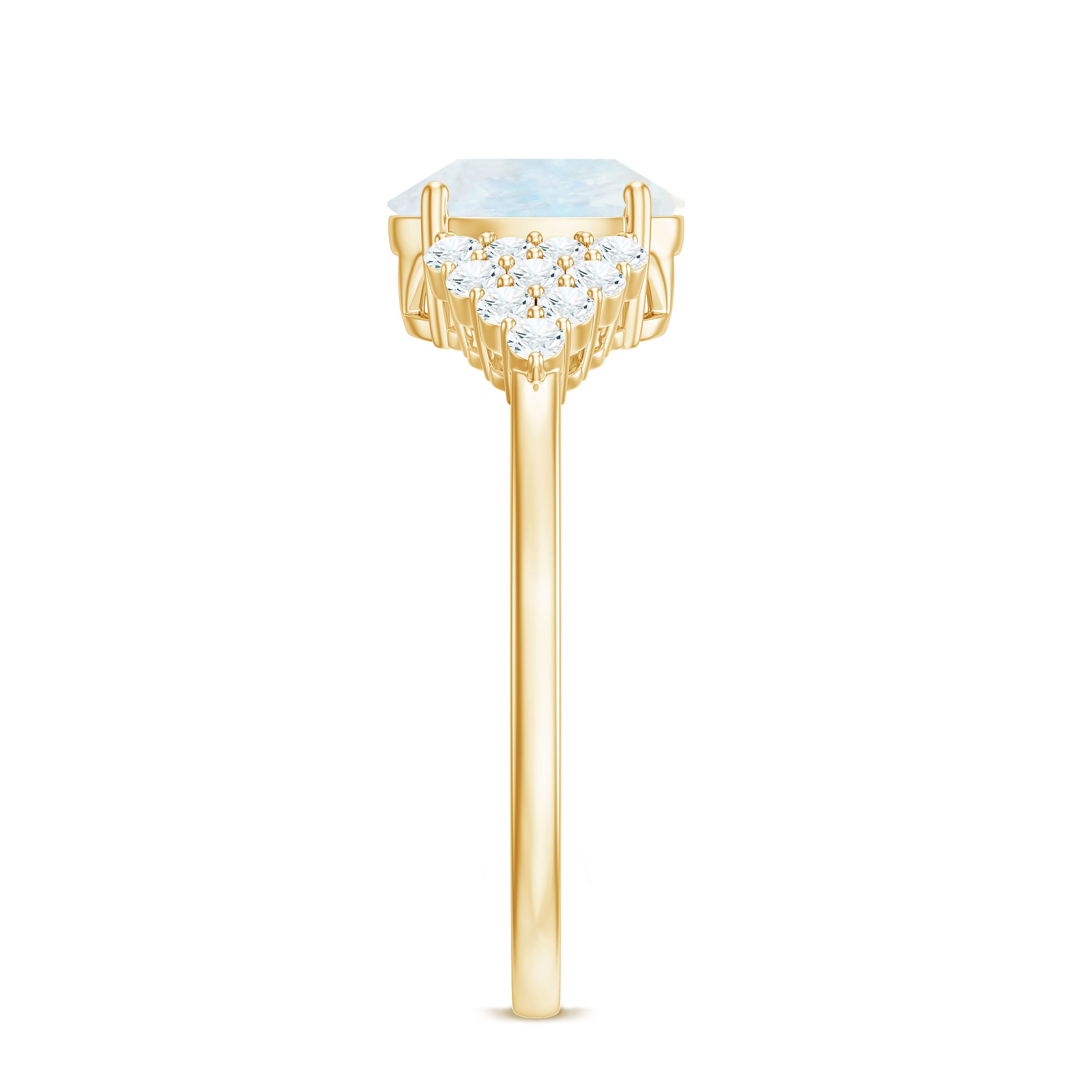 Give a flair of elegance to your look with this Designer Ring adorned with Oval Cut Moonstone set as Solitaire in a Prong Setting with Diamond Accent, crafted in Gold, this designer Ring is a timeless treasure.