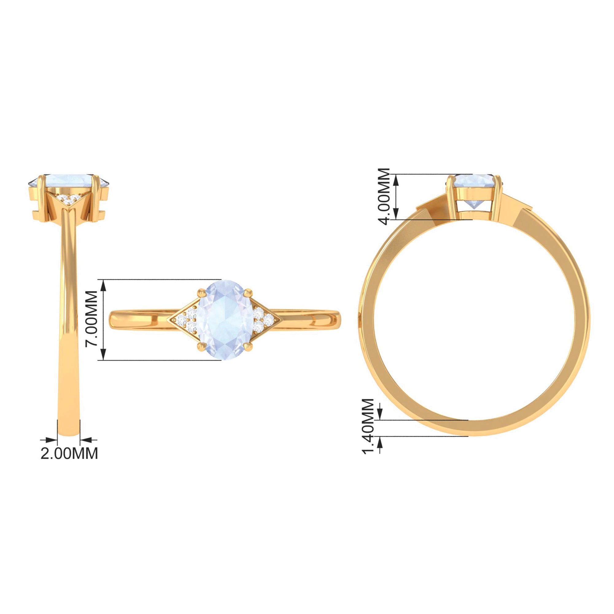 1 CT Oval Moonstone Solitaire Ring with Diamond Accent