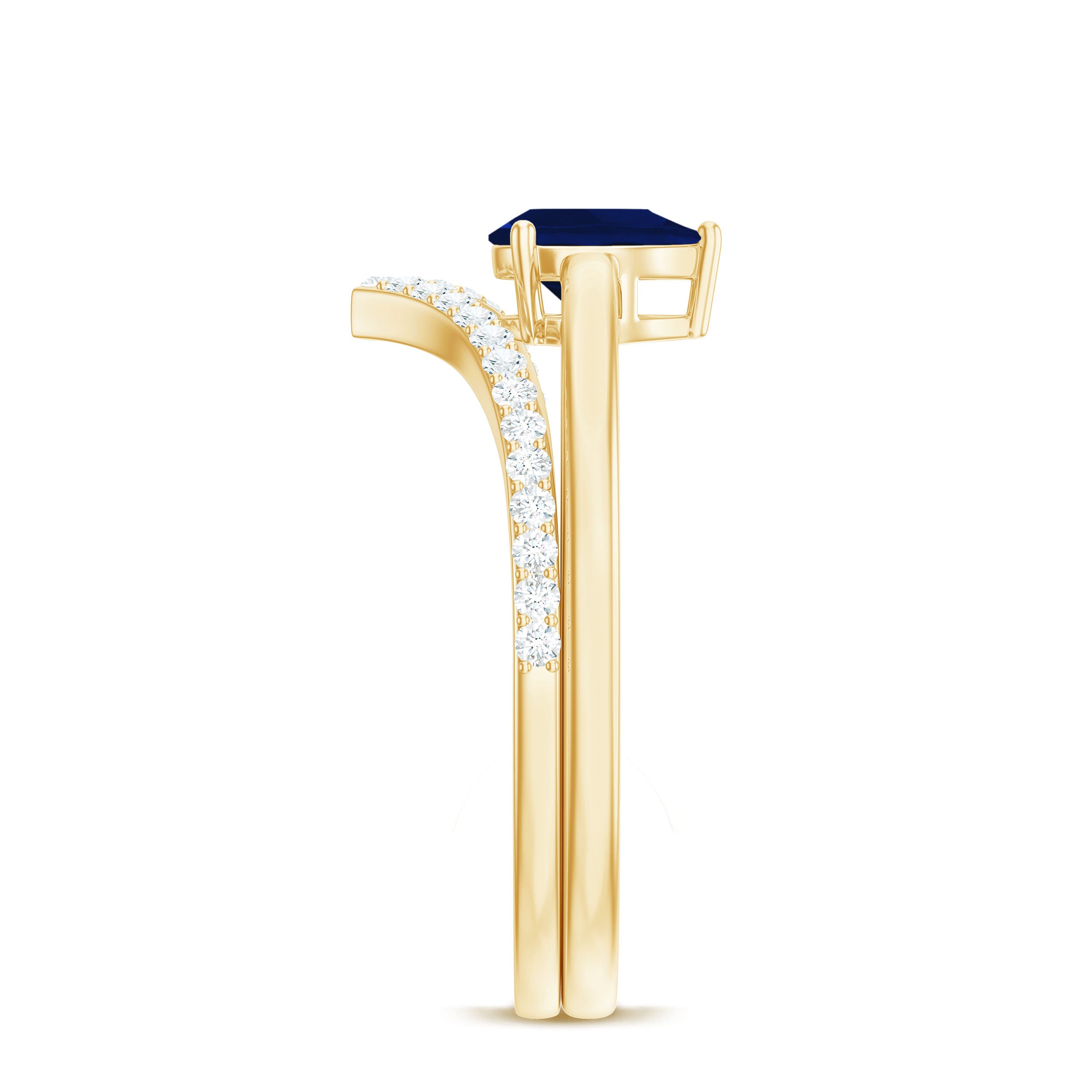 1 CT Pear Cut Blue Sapphire Solitaire Ring Set with Diamond Enhancer Band
