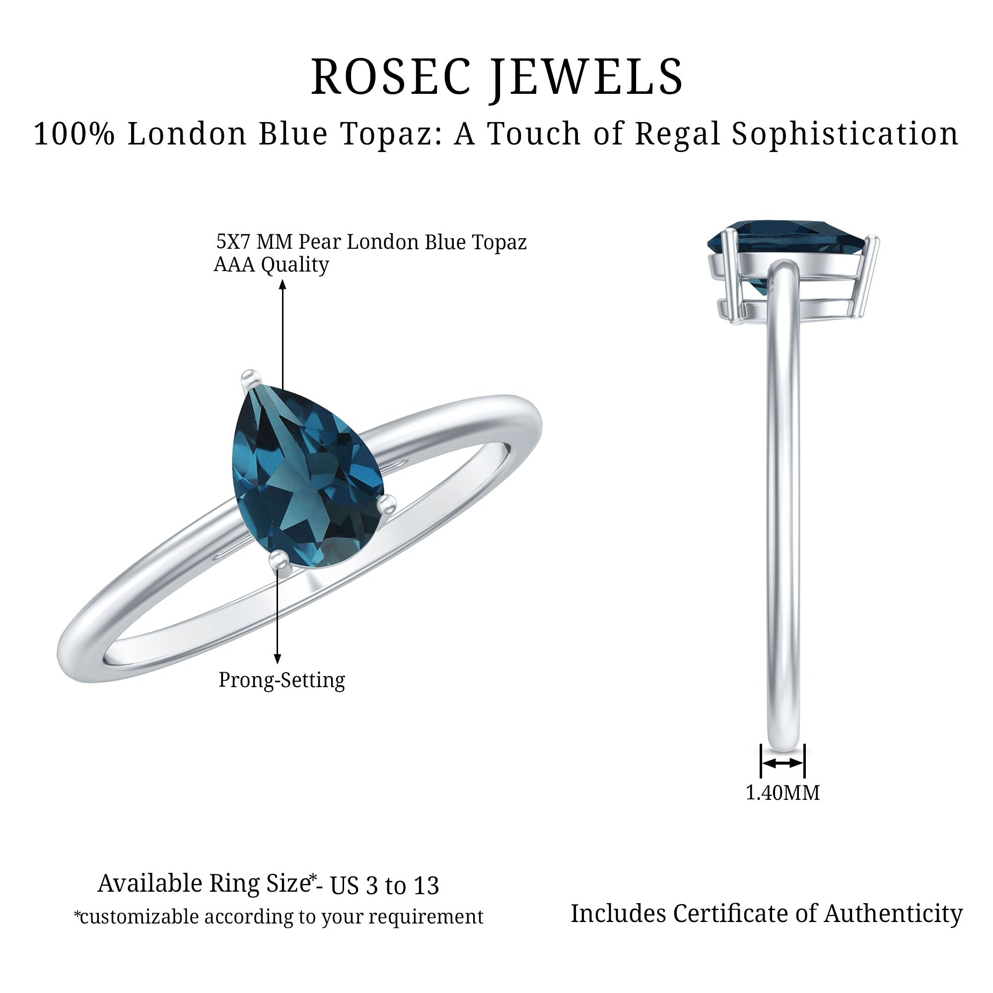 5X7MM Pear Shaped London Blue Topaz Solitaire Ring