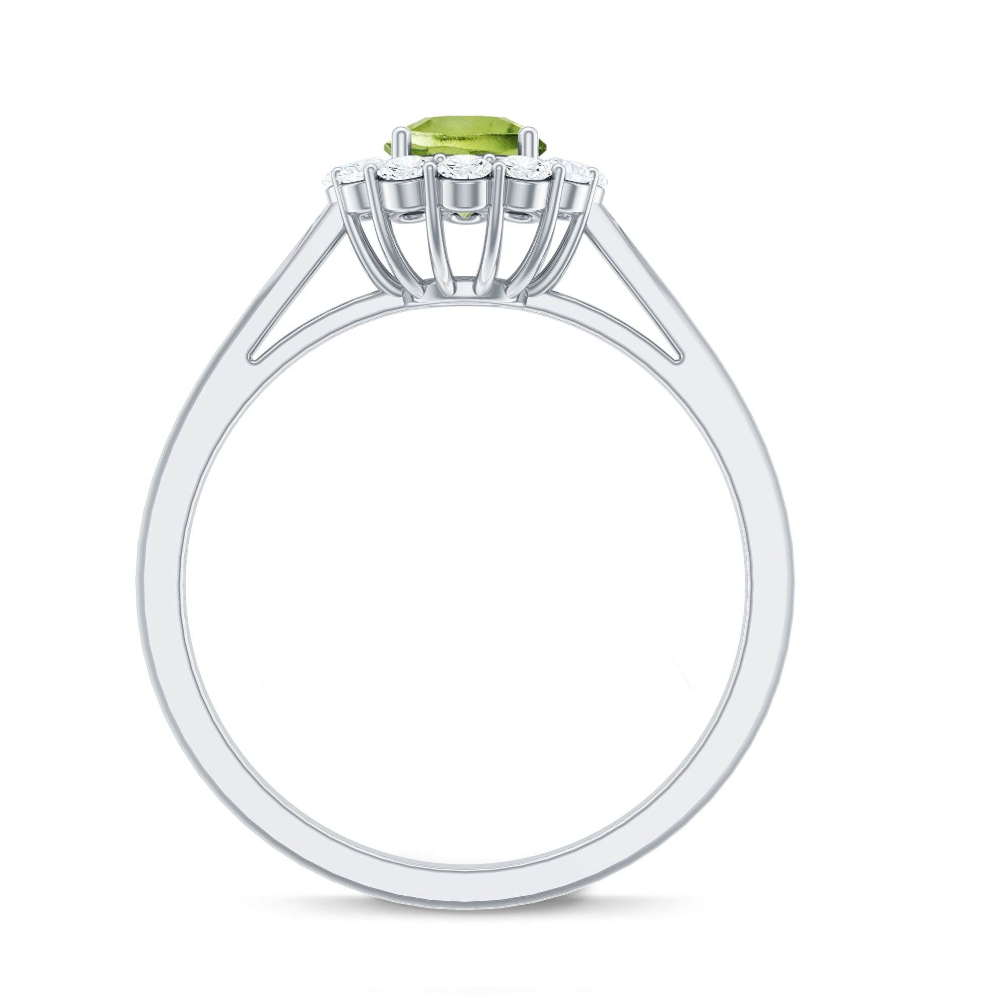 1 CT Peridot and Diamond Floating Halo Engagement Ring
