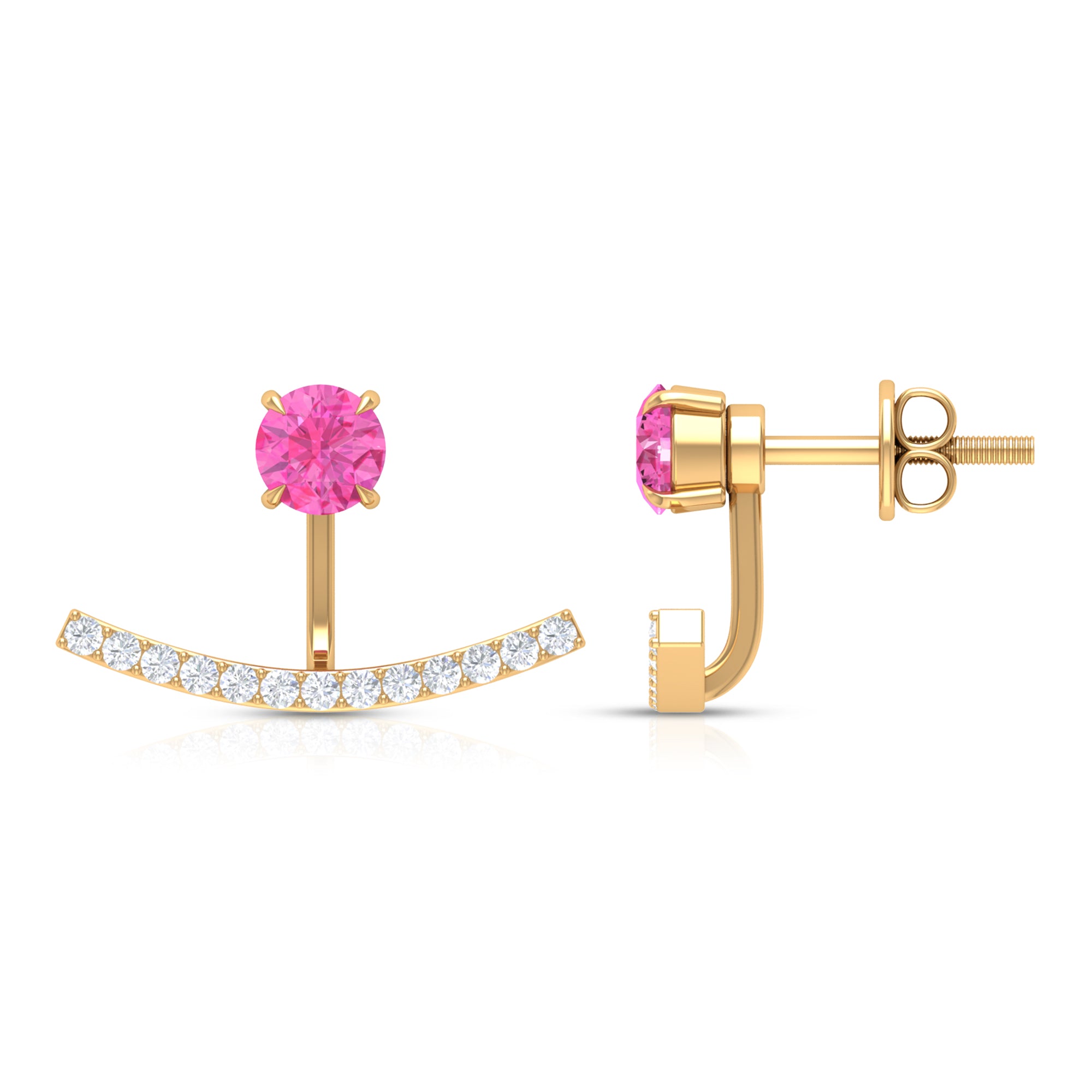 Classic jacket earrings adorned with round Pink Sapphire in claw setting and Diamond gemstones. Upgrade any outfit with their sophistication. A must-have in the jewelry collection.