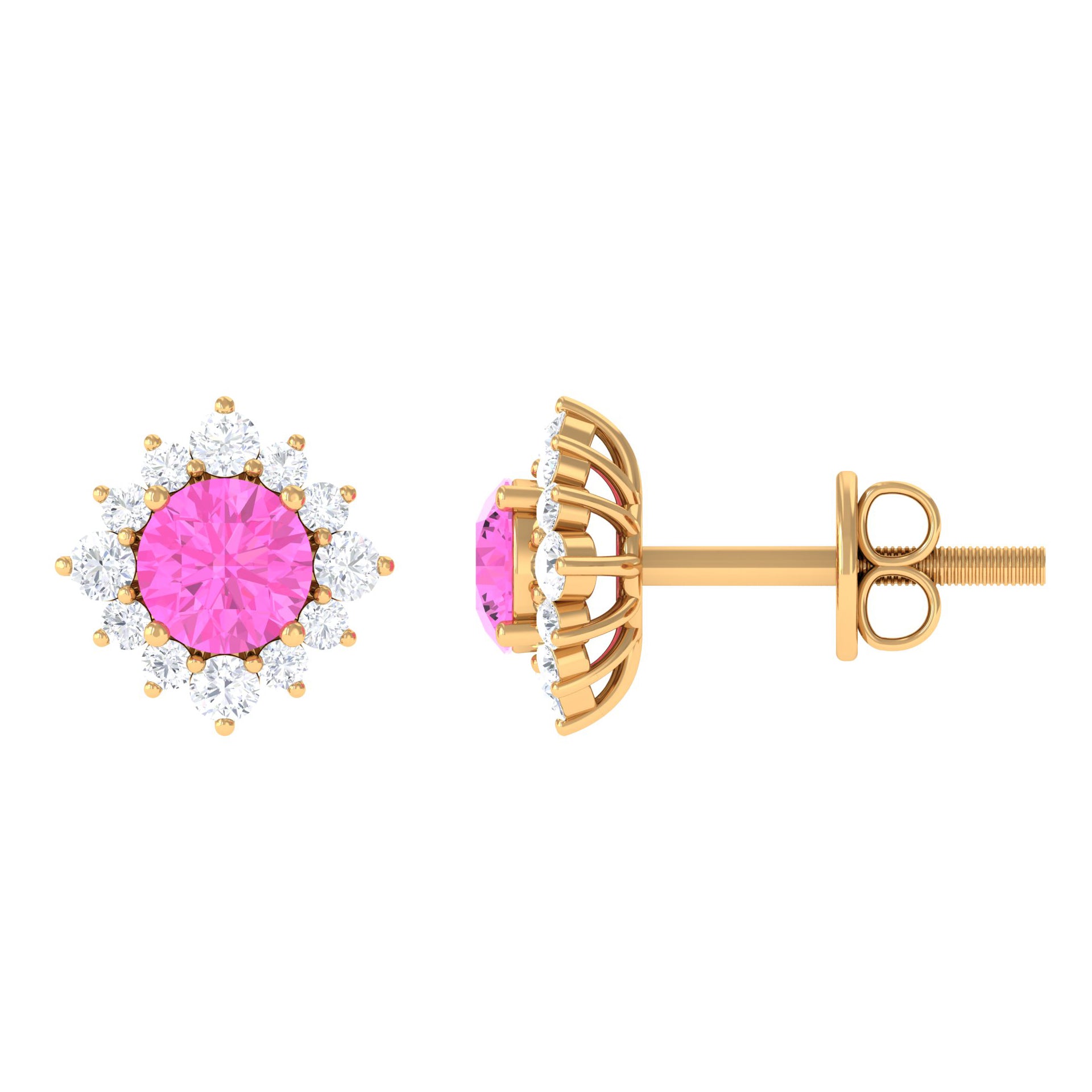 1 CT Pink Sapphire Classic Stud Earrings with Diamond Halo