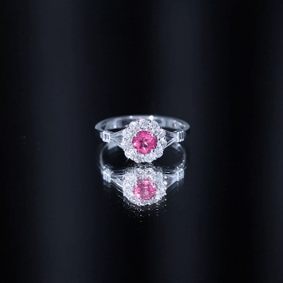 1 CT Pink Tourmaline and Diamond Halo Split Shank Ring