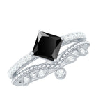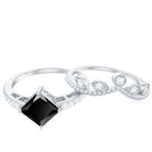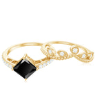 5mm Princess Cut Black Onyx Engagement Ring with Diamond Wedding Band