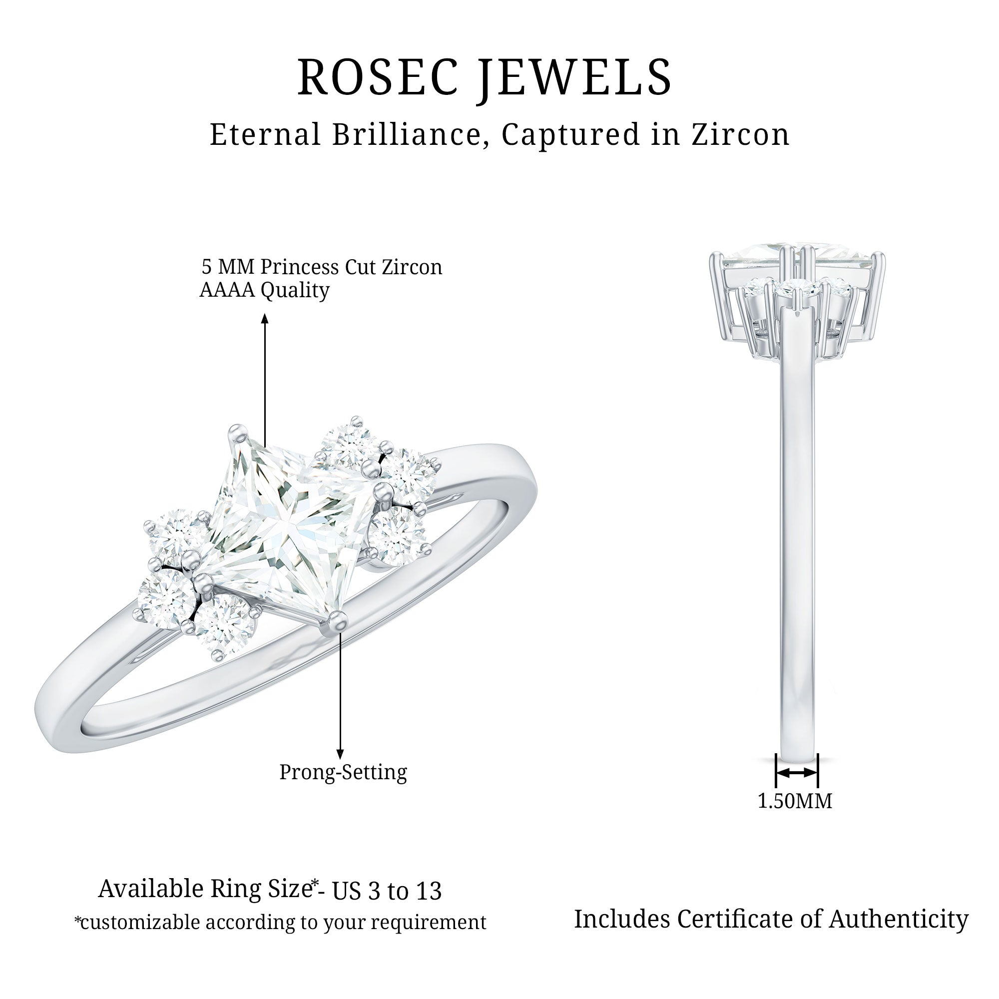 | Dimension(approx) | Princess Cut-5X5 mm-1 Pcs Round-2X2 mm-6 Pcs |