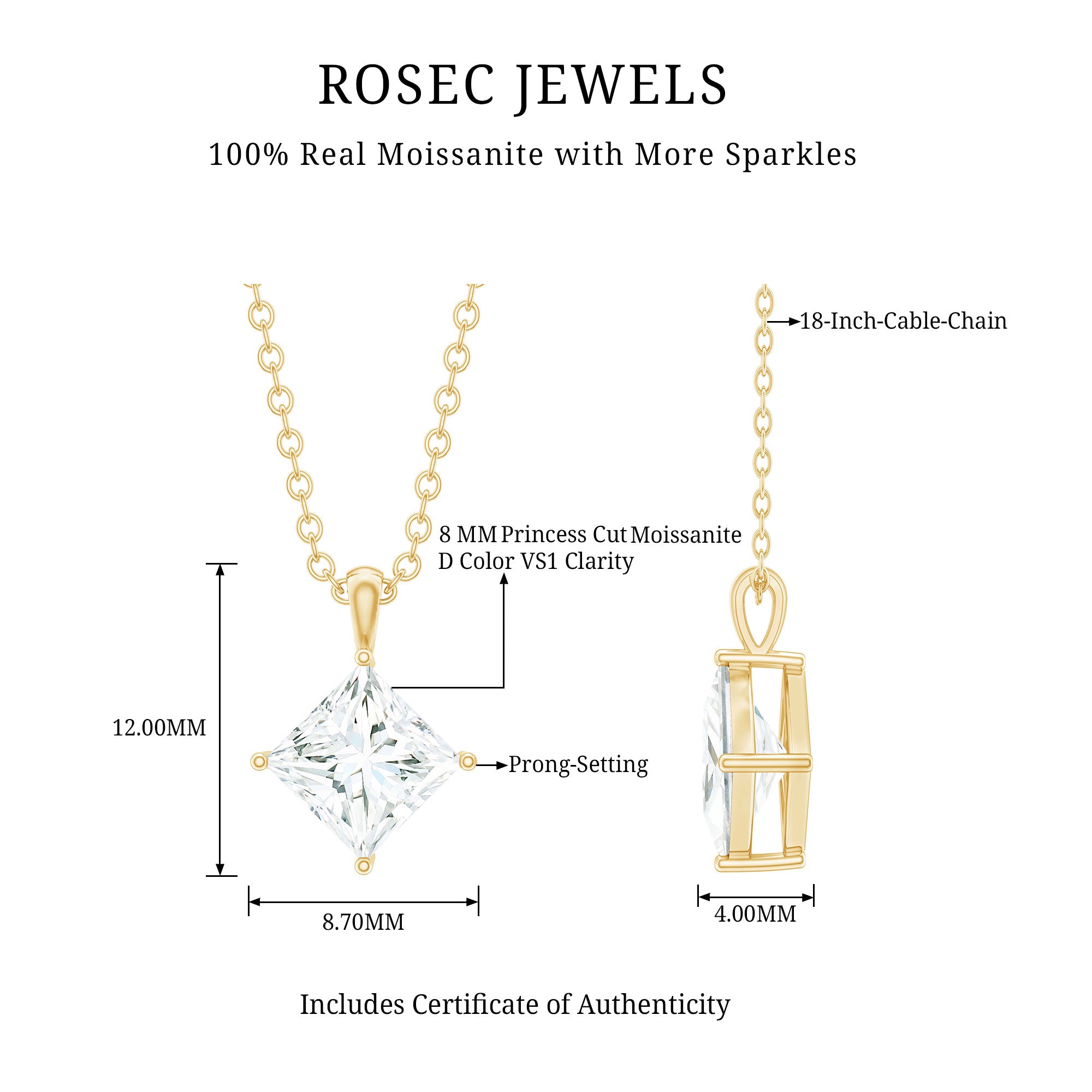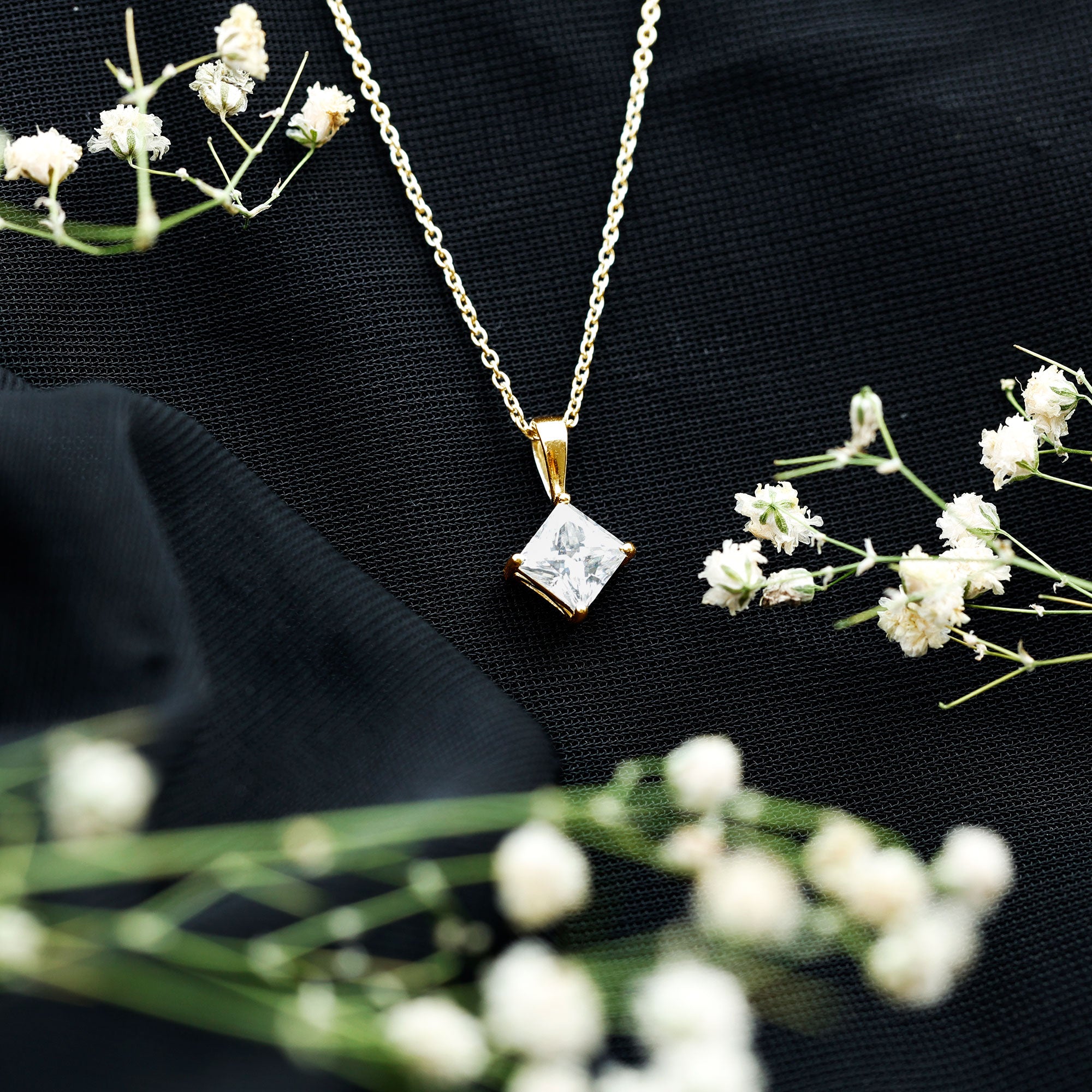 1 CT Princess Cut Moissanite Solitaire Pendant Necklace For Women