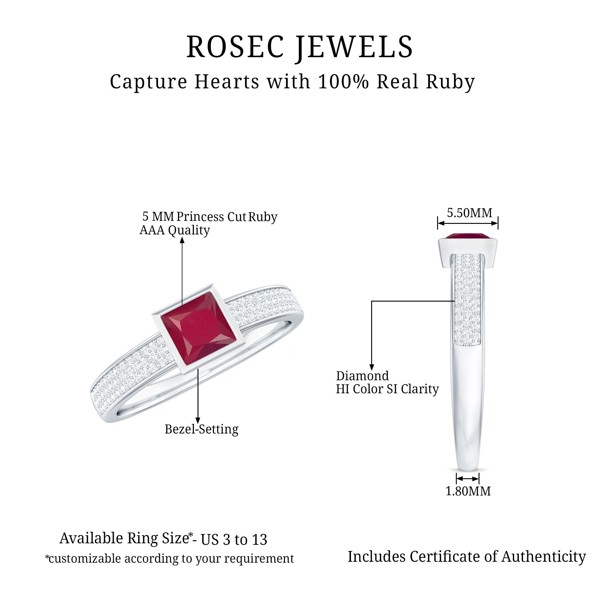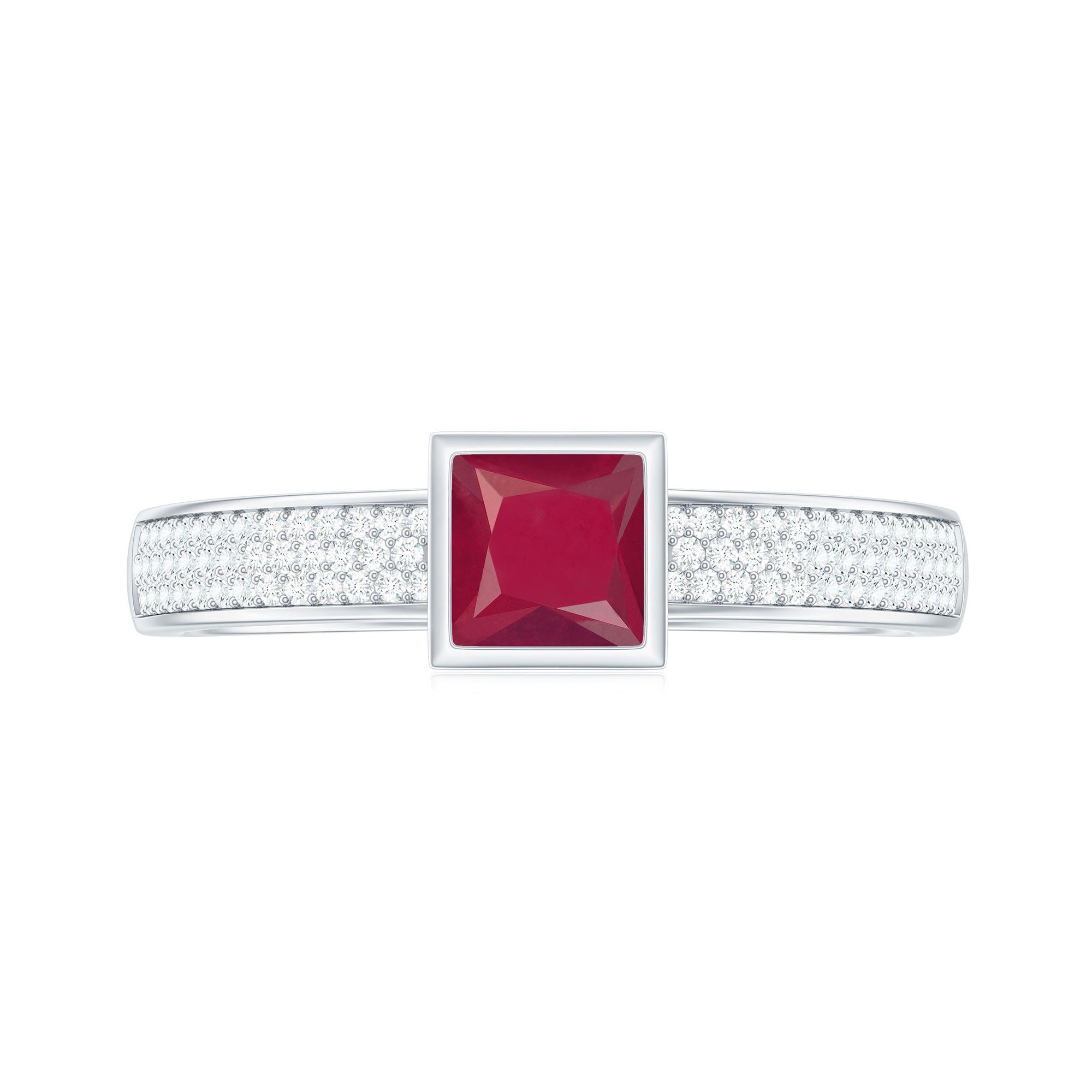 1 CT Princess Cut Ruby Engagement Ring with Diamond
