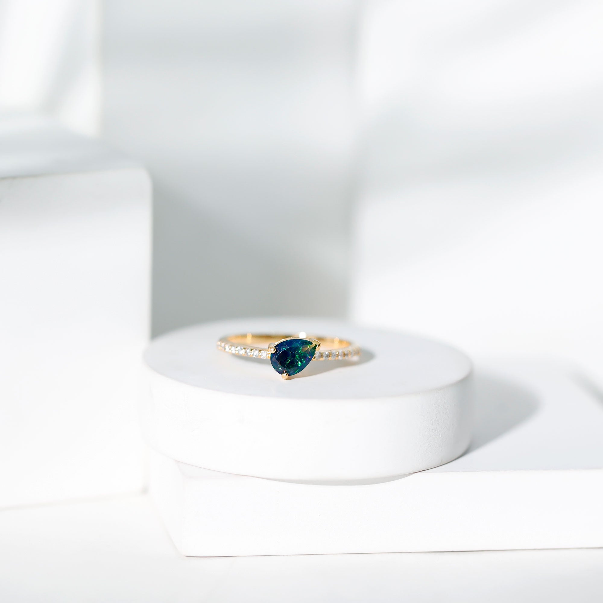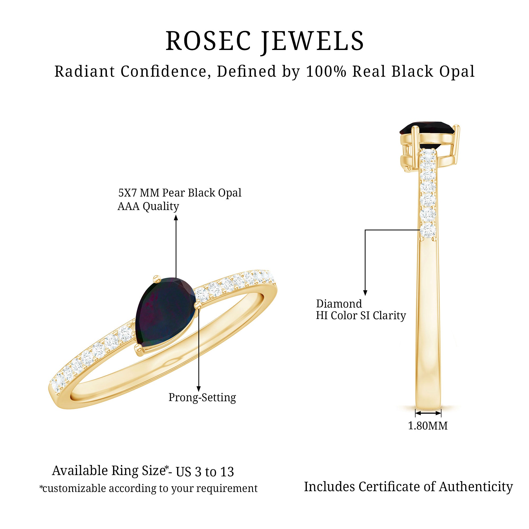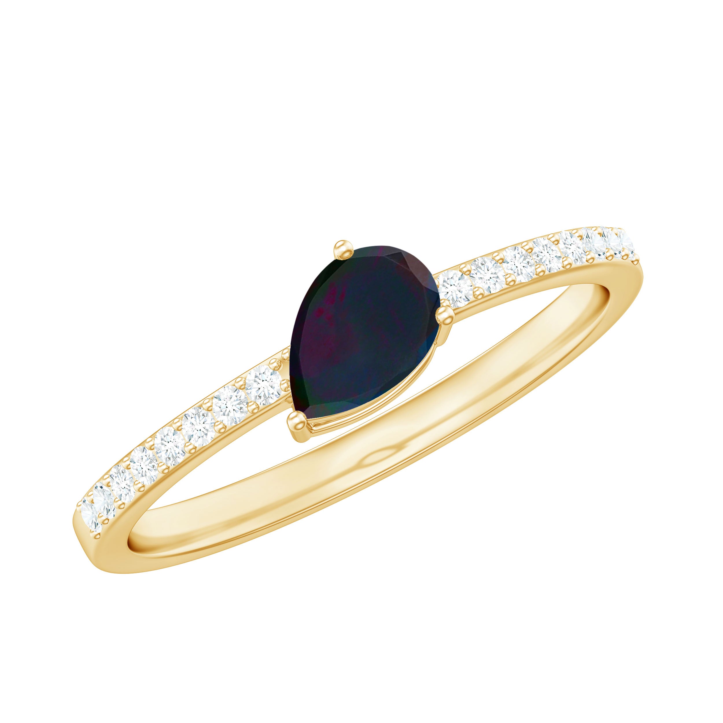 Make the perfect gesture of affection with this stunning Solitaire Ring for women. Express your love and devotion with this Ring, adorned with a 5X7 MM Pear Cut Black Opal in a 3-Prong-Setting and a Round Shape Diamond in Pave Setting. Let this exquisite piece of jewelry be your special and unexpected present to the ones you hold dear this season, and make it a moment they will never forget.