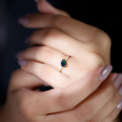 1 CT Real Black Opal Solitaire Teardrop Ring with Diamond Side Stones