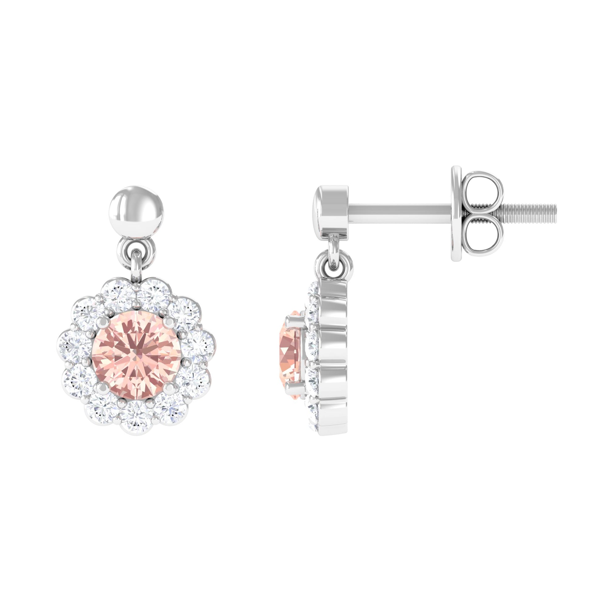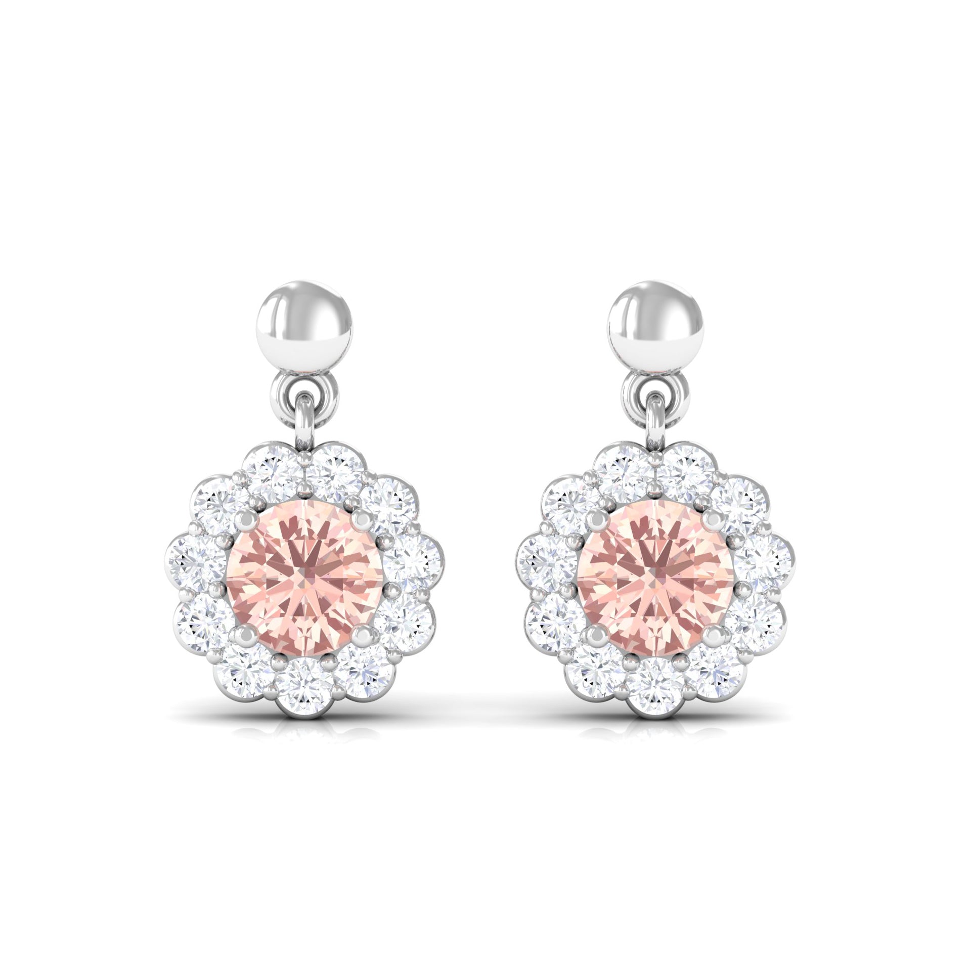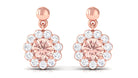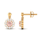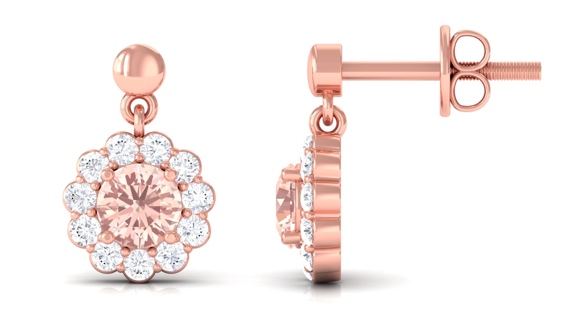 1 CT Real Morganite and Diamond Flower Halo Drop Earrings