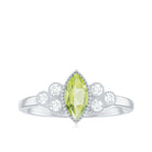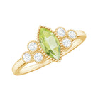 Bring out your alluring look by wearing this elegant Peridot Solitaire Ring embellished with Marquise Cut Peridot in a Designer Setting with Round Shape Diamond Trio. Crafted with Gold, this Peridot and Diamond Ring will give you a luxurious look. This Peridot Ring will be a perfect birthday present for your lady love.