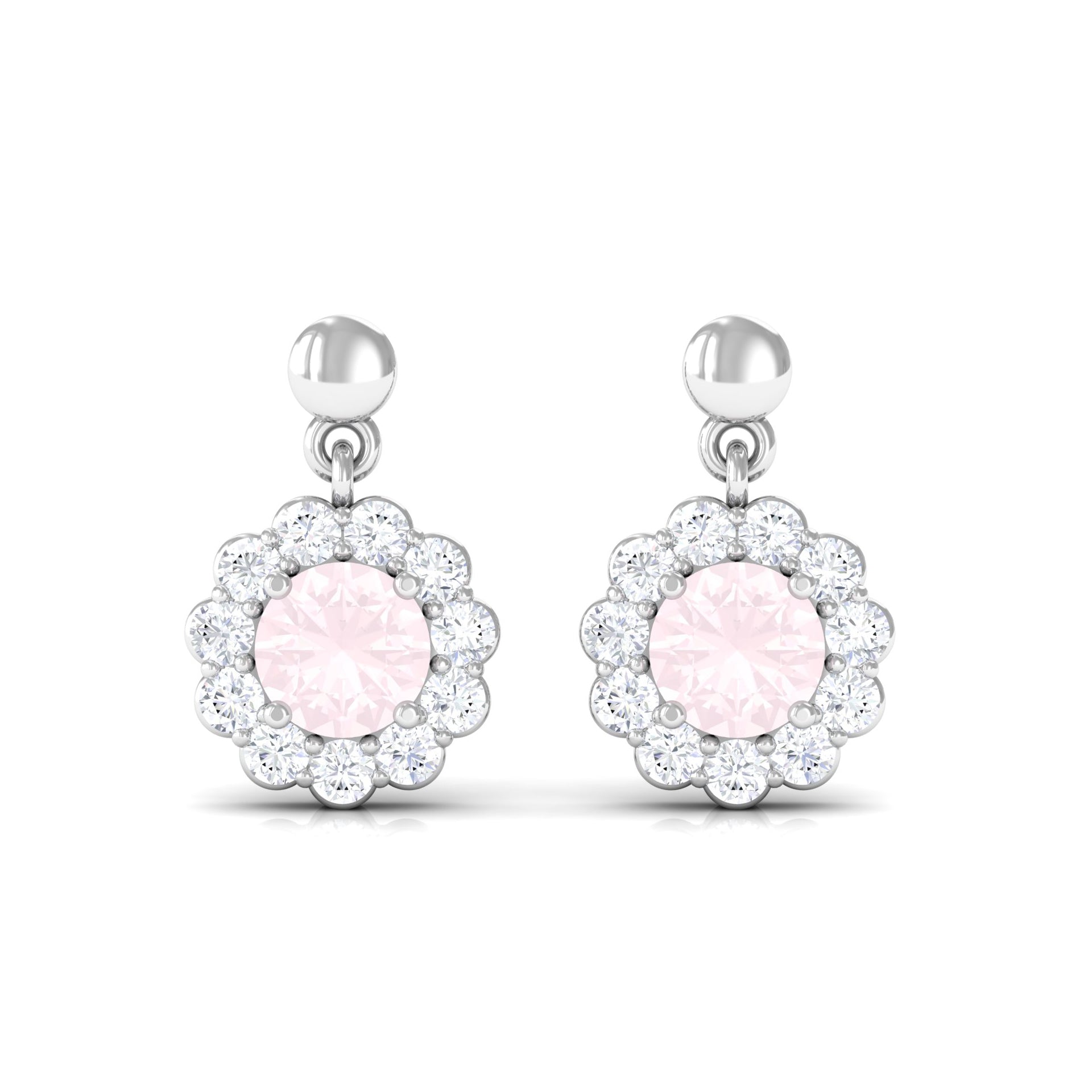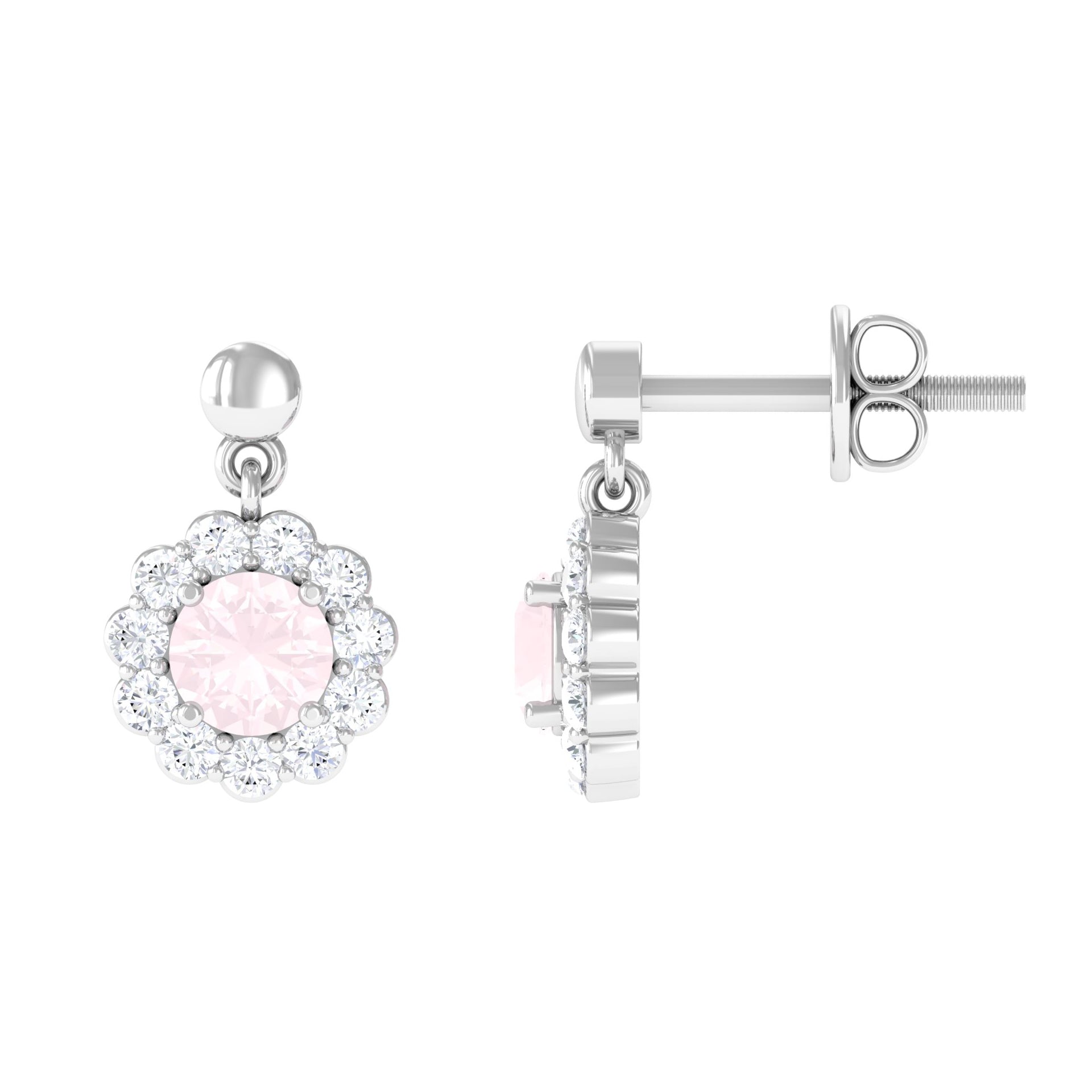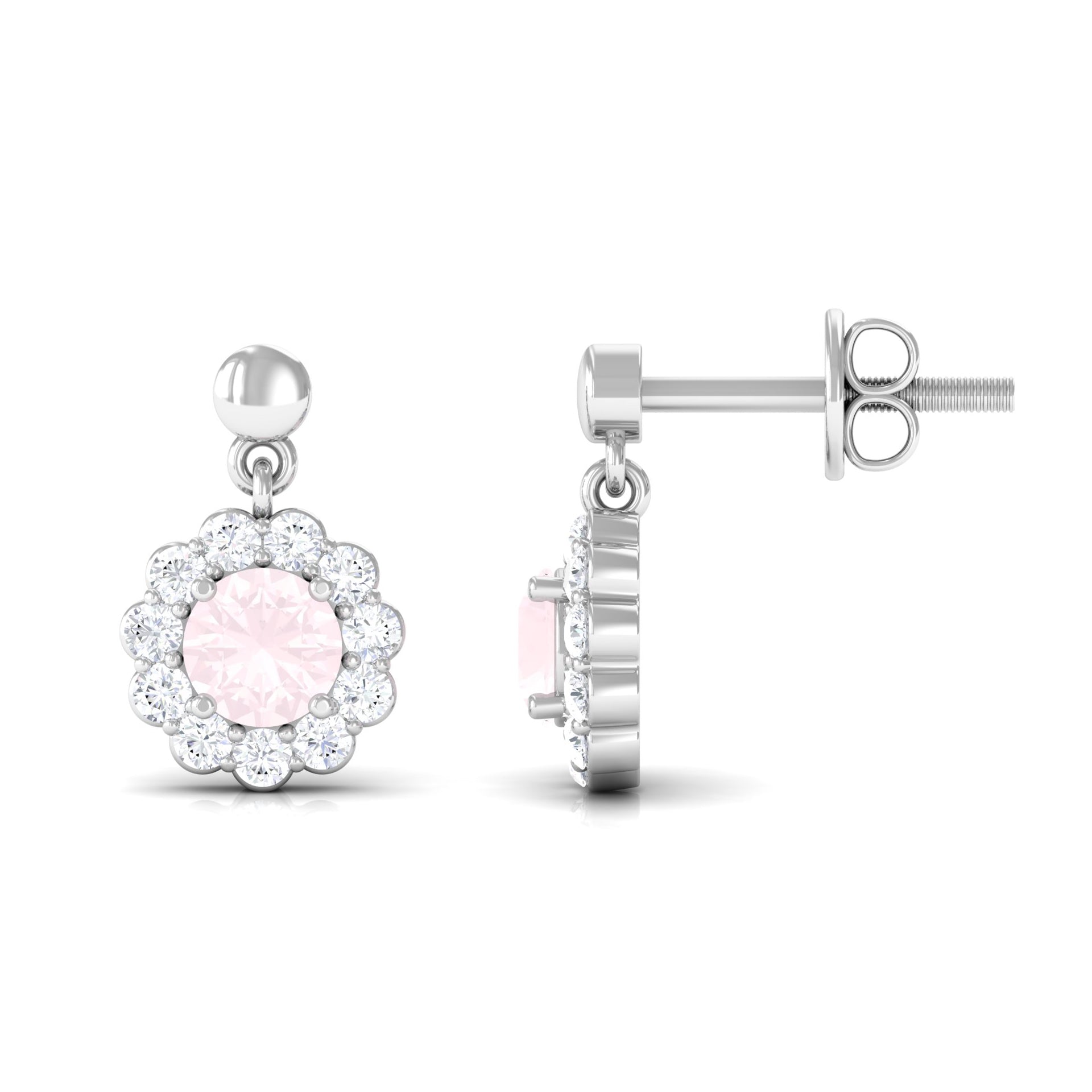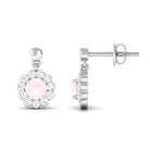 1 CT Real Rose Quartz and Diamond Flower Halo Drop Earrings