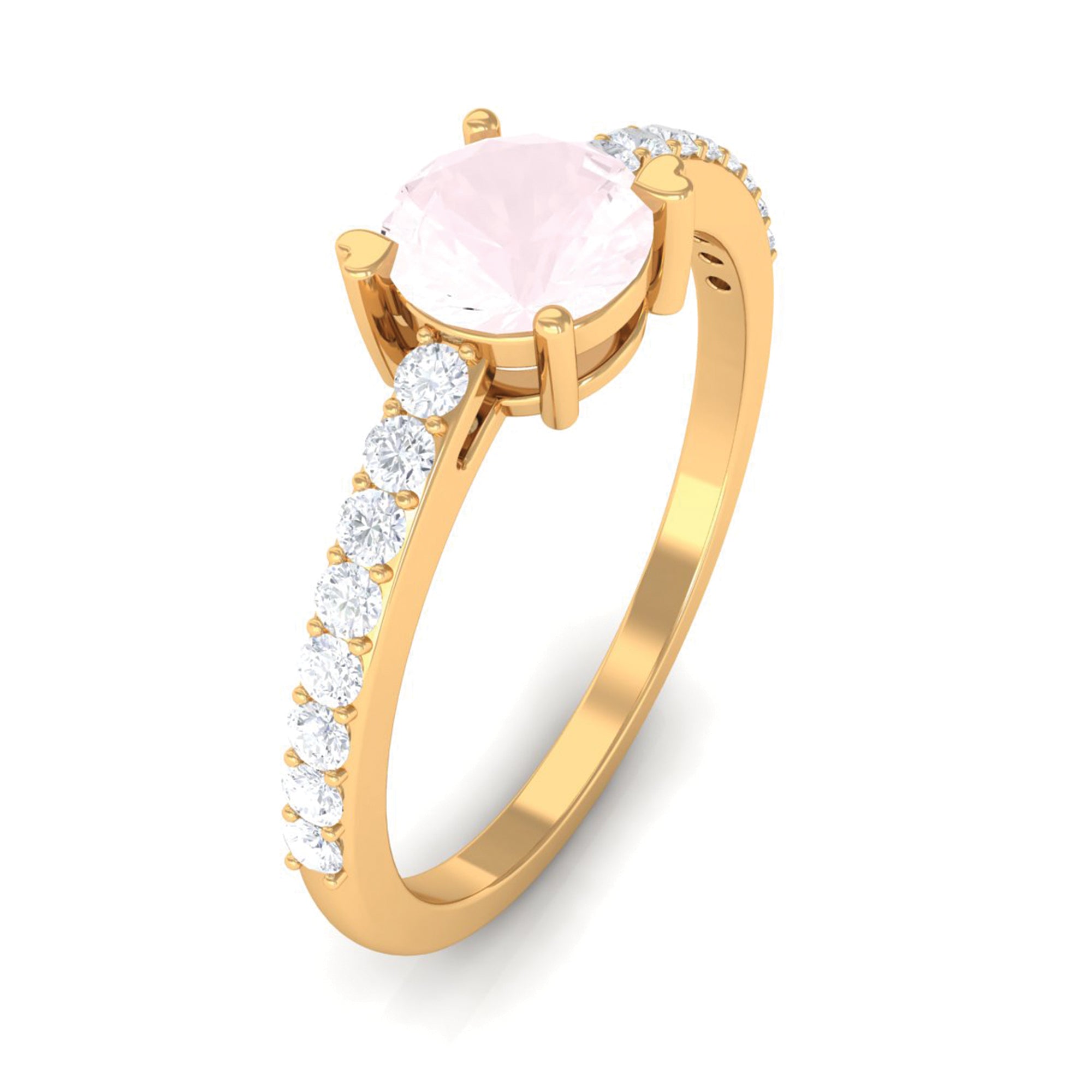 1 CT Rose Quartz Solitaire Promise Ring with Diamond Accent