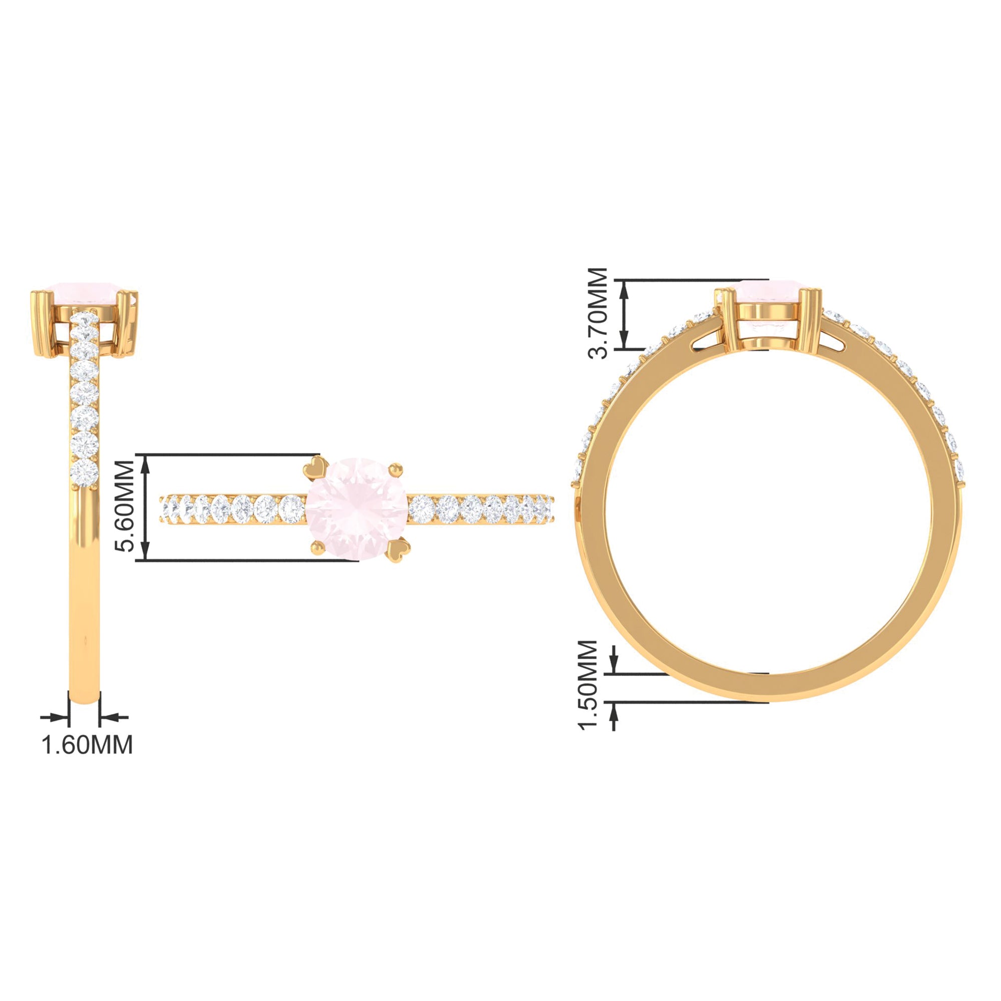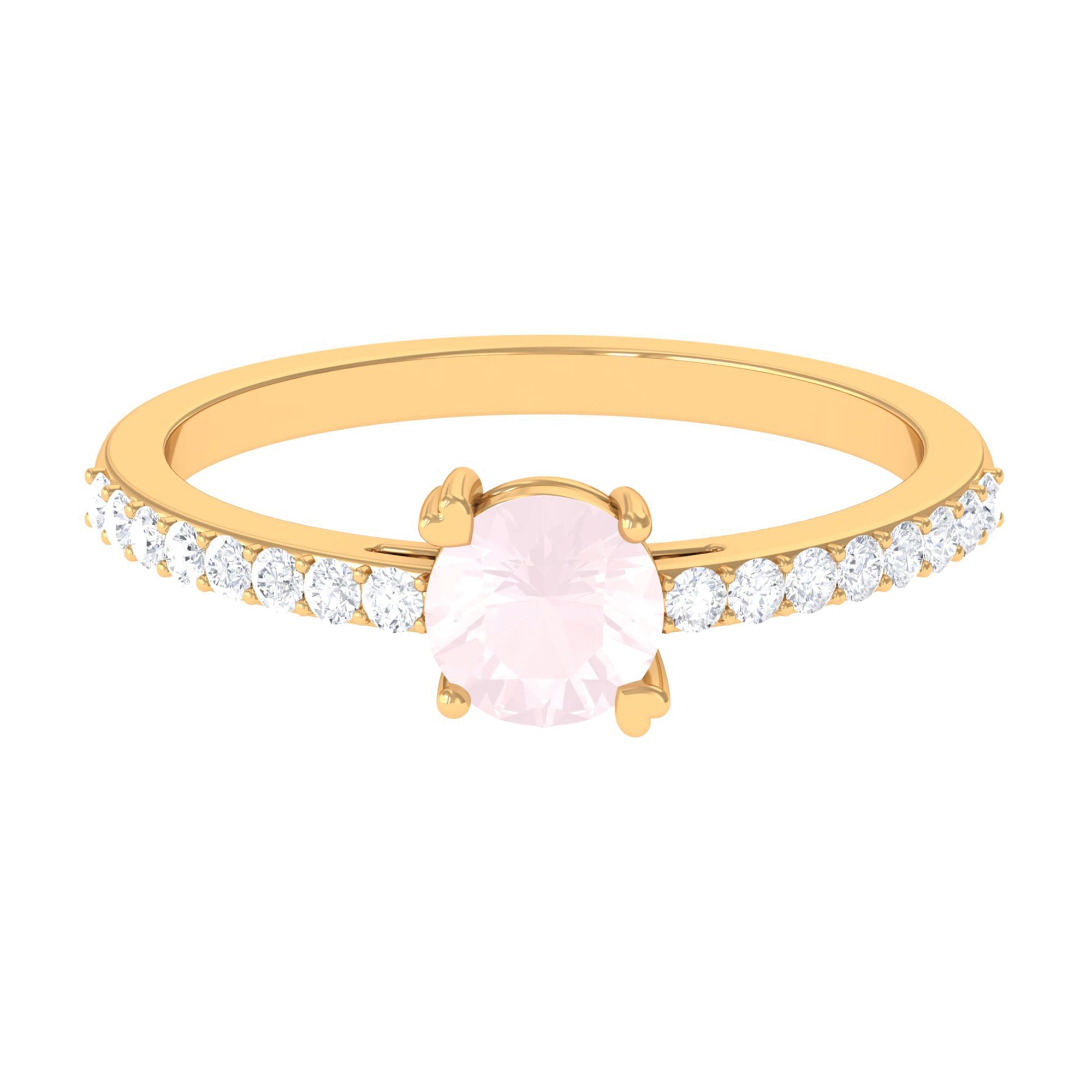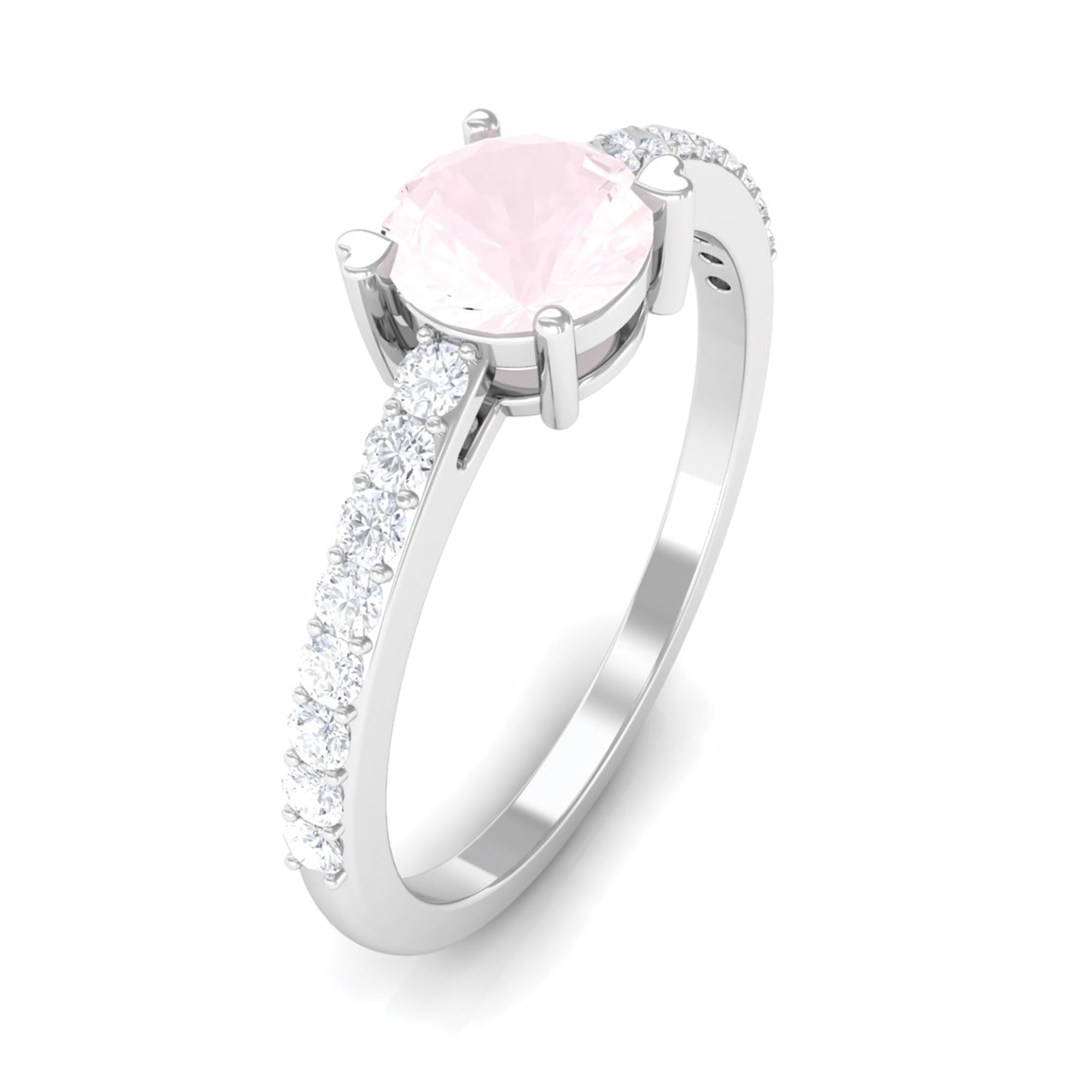 1 CT Rose Quartz Solitaire Promise Ring with Diamond Accent