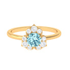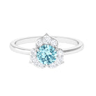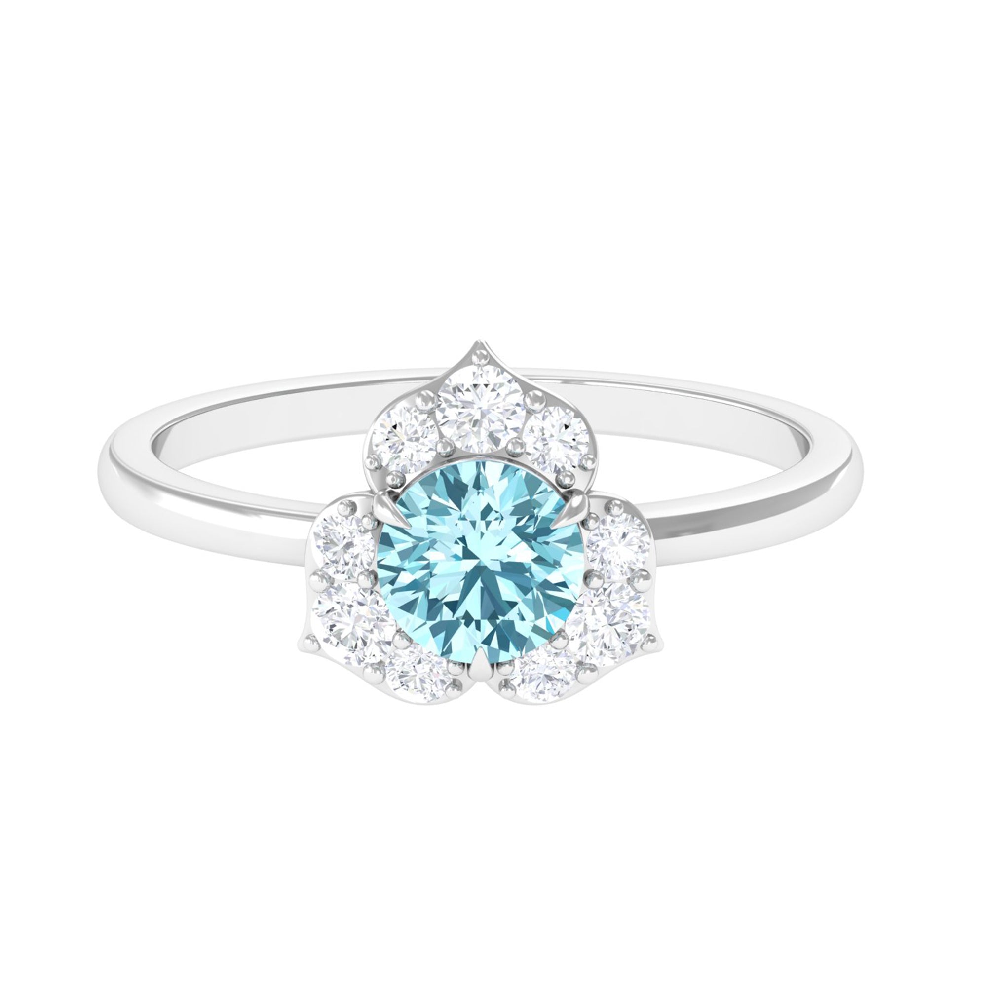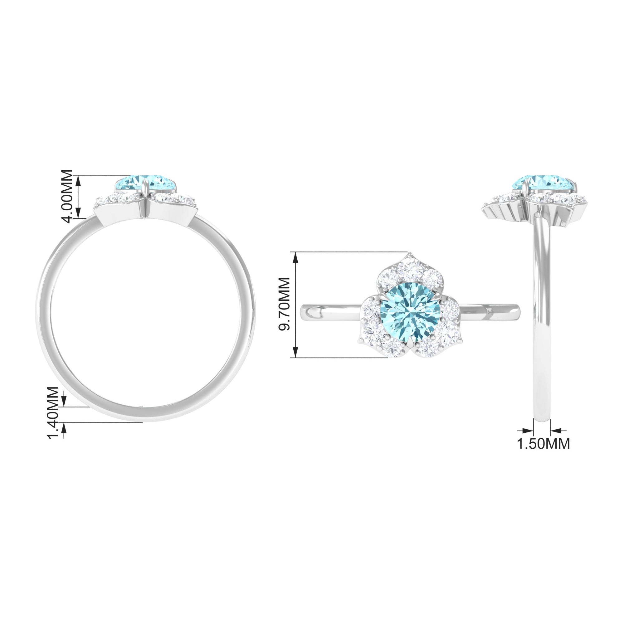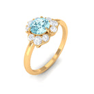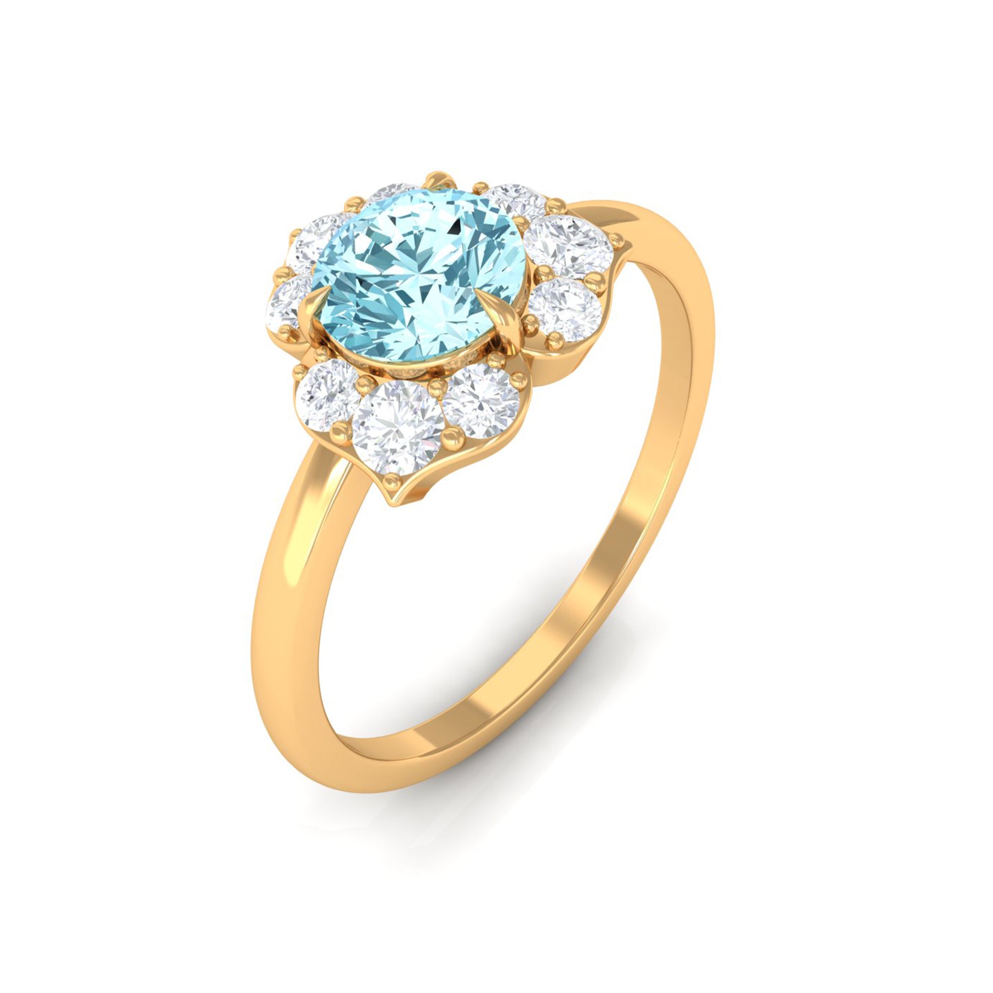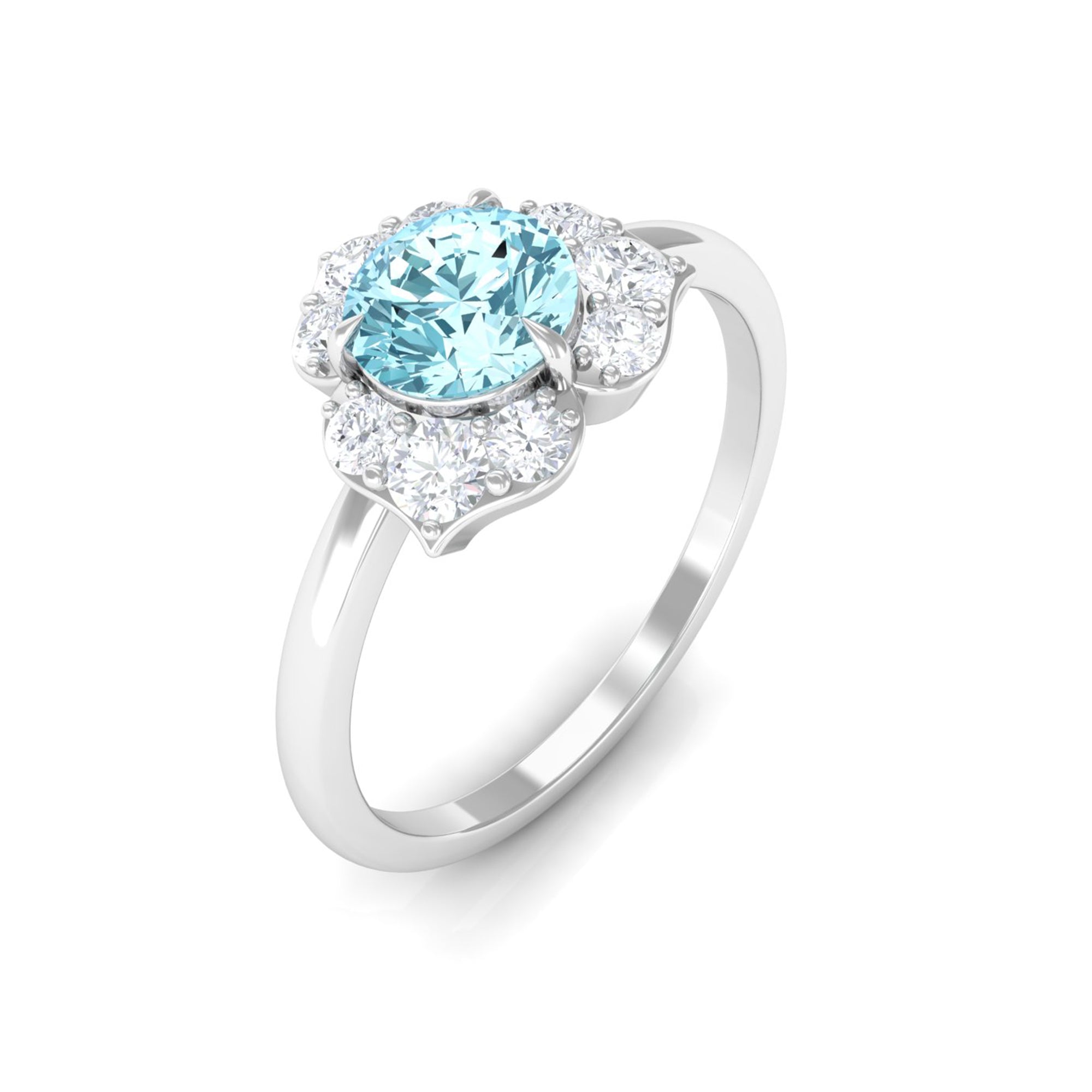 1 CT Round Aquamarine Flower Engagement Ring with Diamond