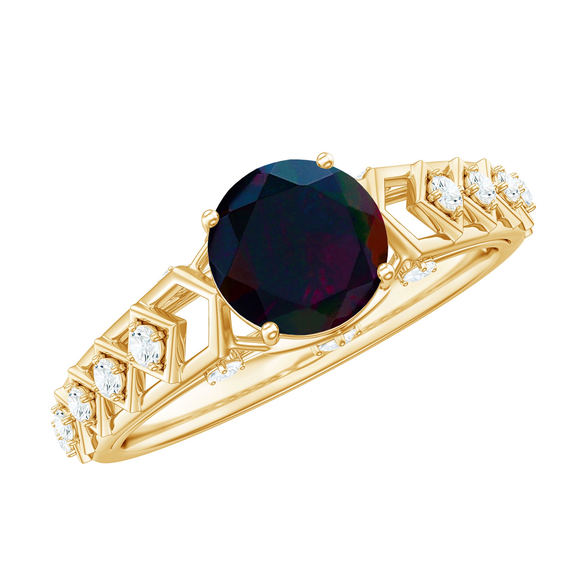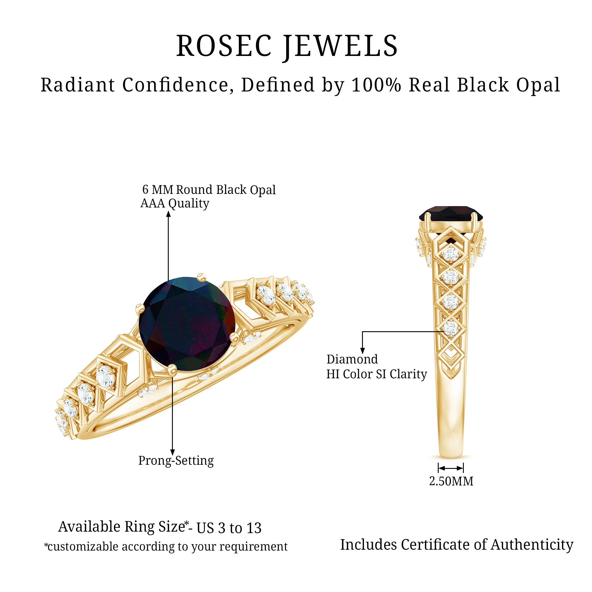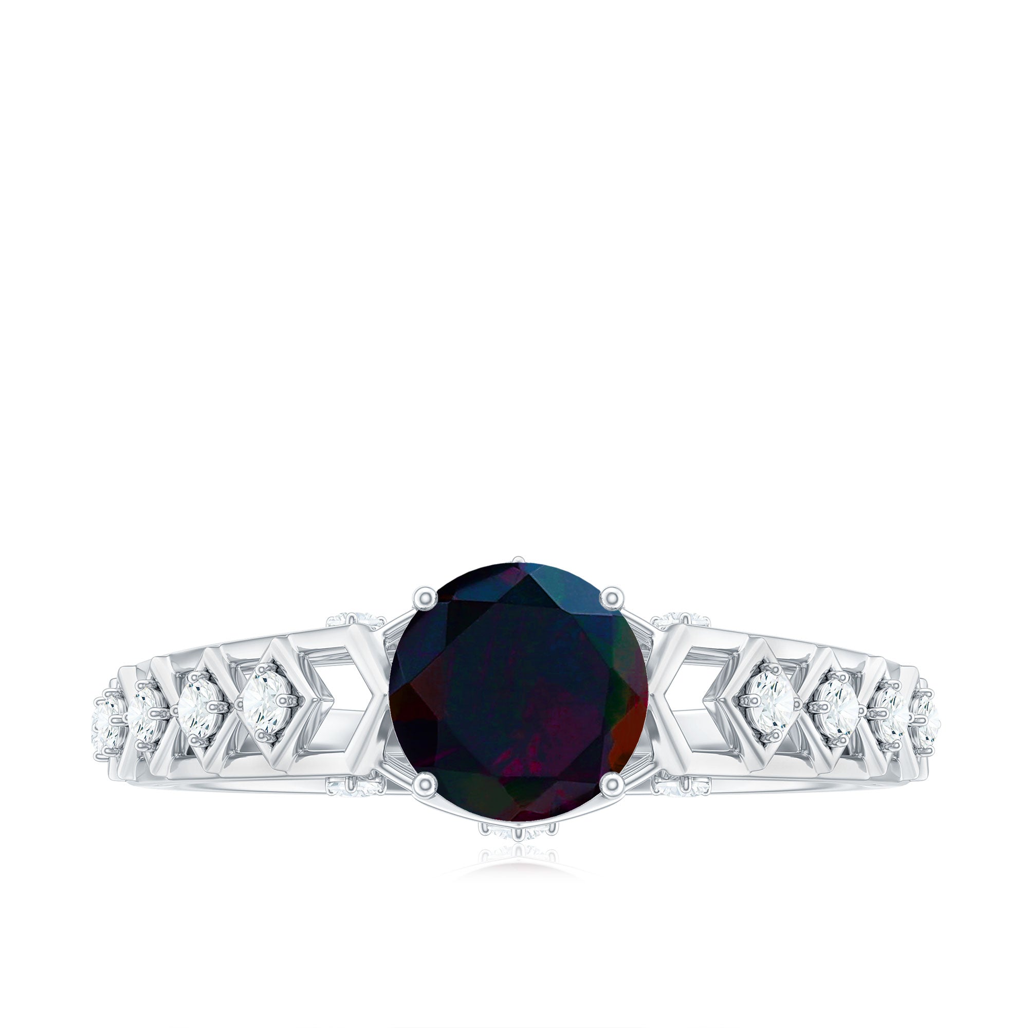 1 CT Round Black Opal Solitaire Art Deco Ring with Diamond