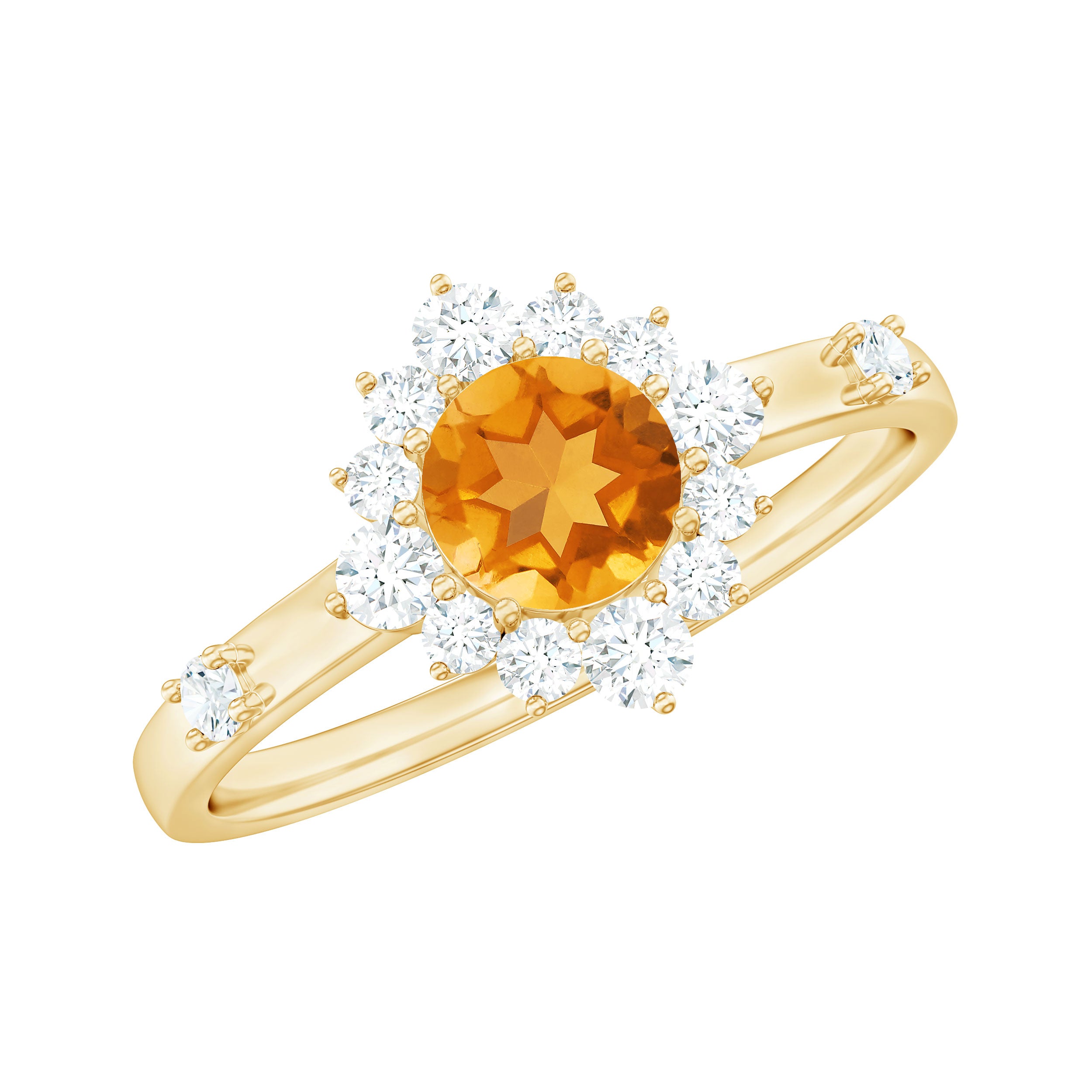 1 CT Round Citrine and Diamond Halo Engagement Ring