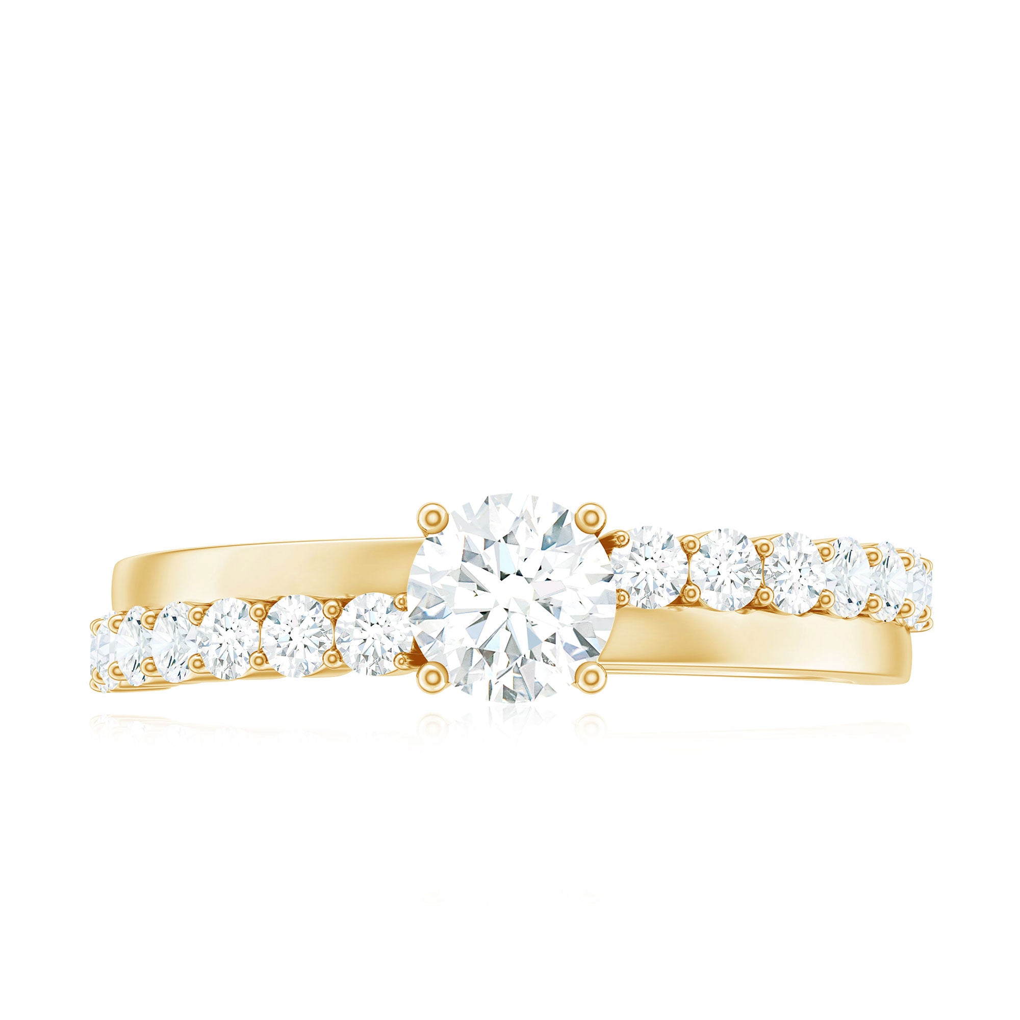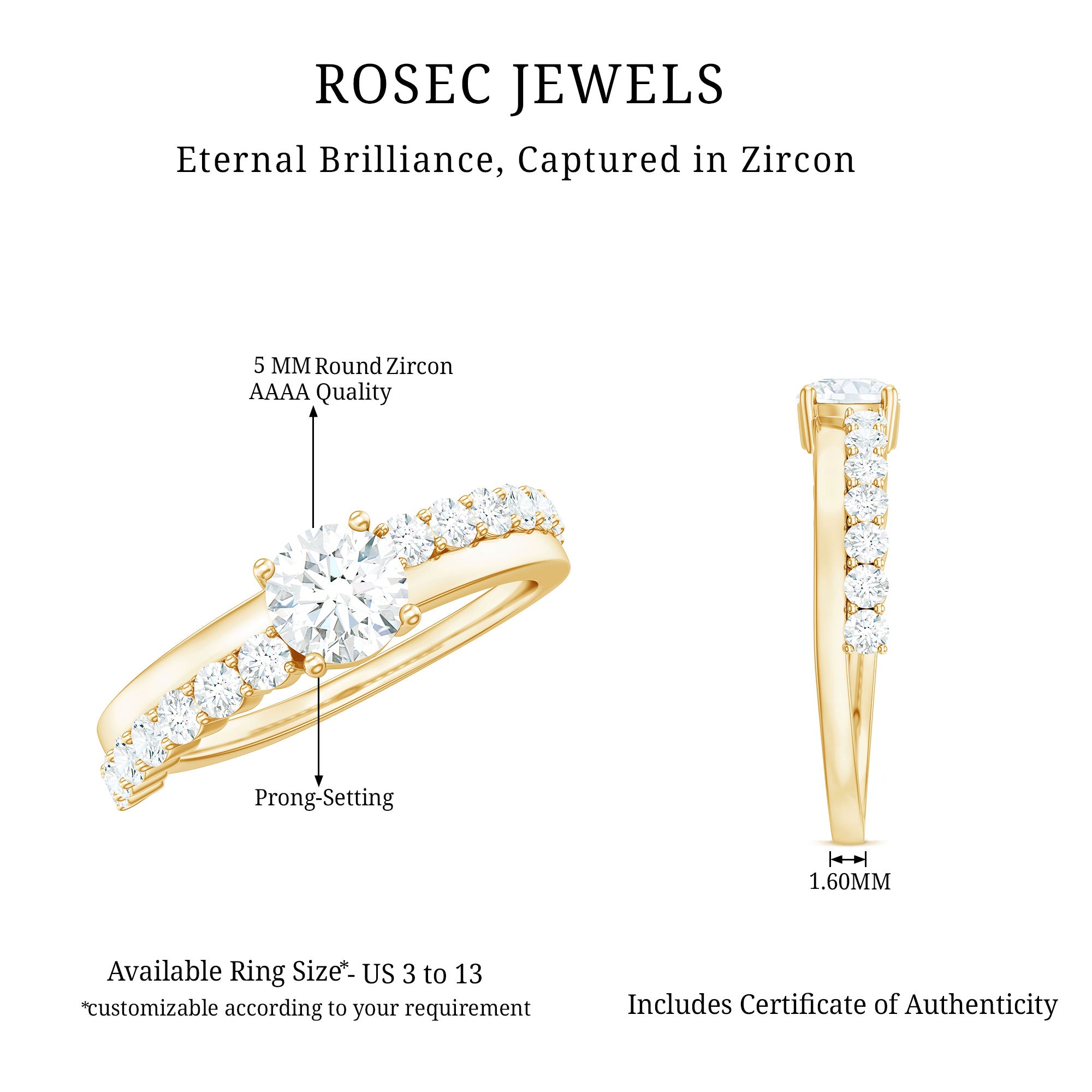 A charming Promise Ring adorned with Round Cut Zircon Stones set in Prong Setting. The Cubic Zirconia Ring is molded in Gold Metal and has a classic, elegant design that is perfect for any occasion. This CZ Ring is a perfect symbol of commitment and promises, and is a great choice for anyone looking for a timeless and affordable piece of jewelry.