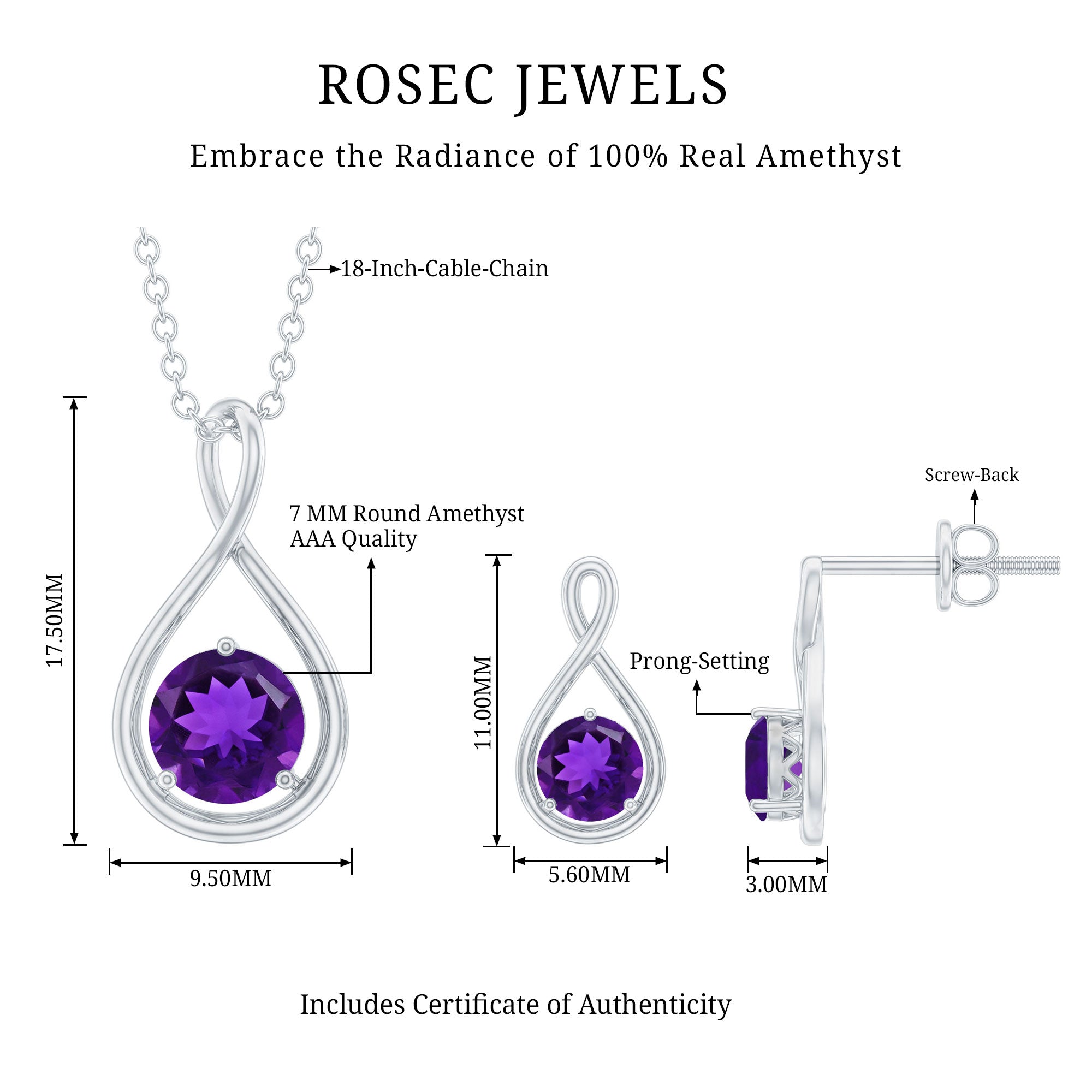 Dazzle in our Infinity Jewelry Set features Round Cut Amethyst Gemstone. The 6 MM Amethyst Solitaire Pendant and 4 MM Amethyst Solitaire Earring in 3 Prong Setting will be a perfect Birthday gift for a woman.