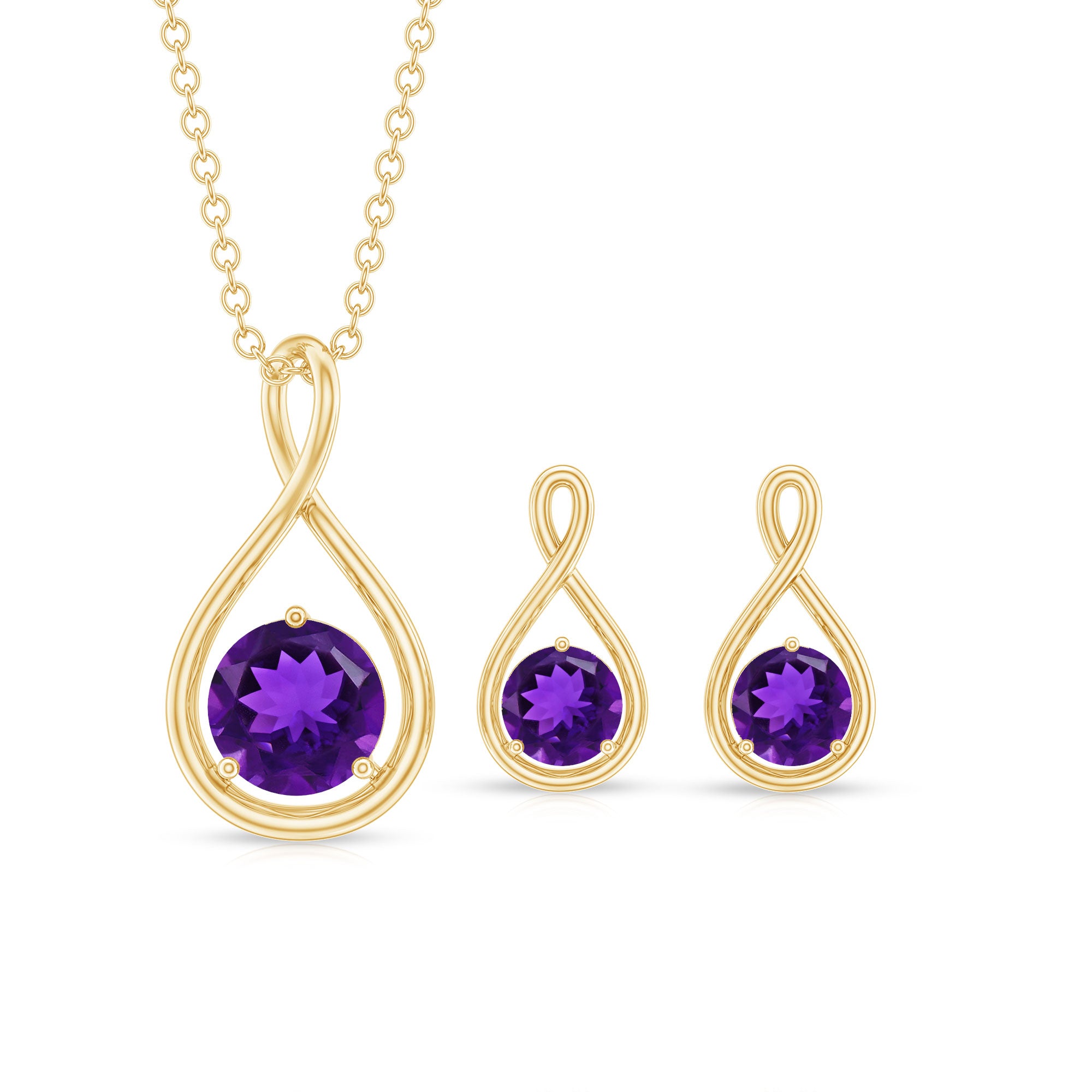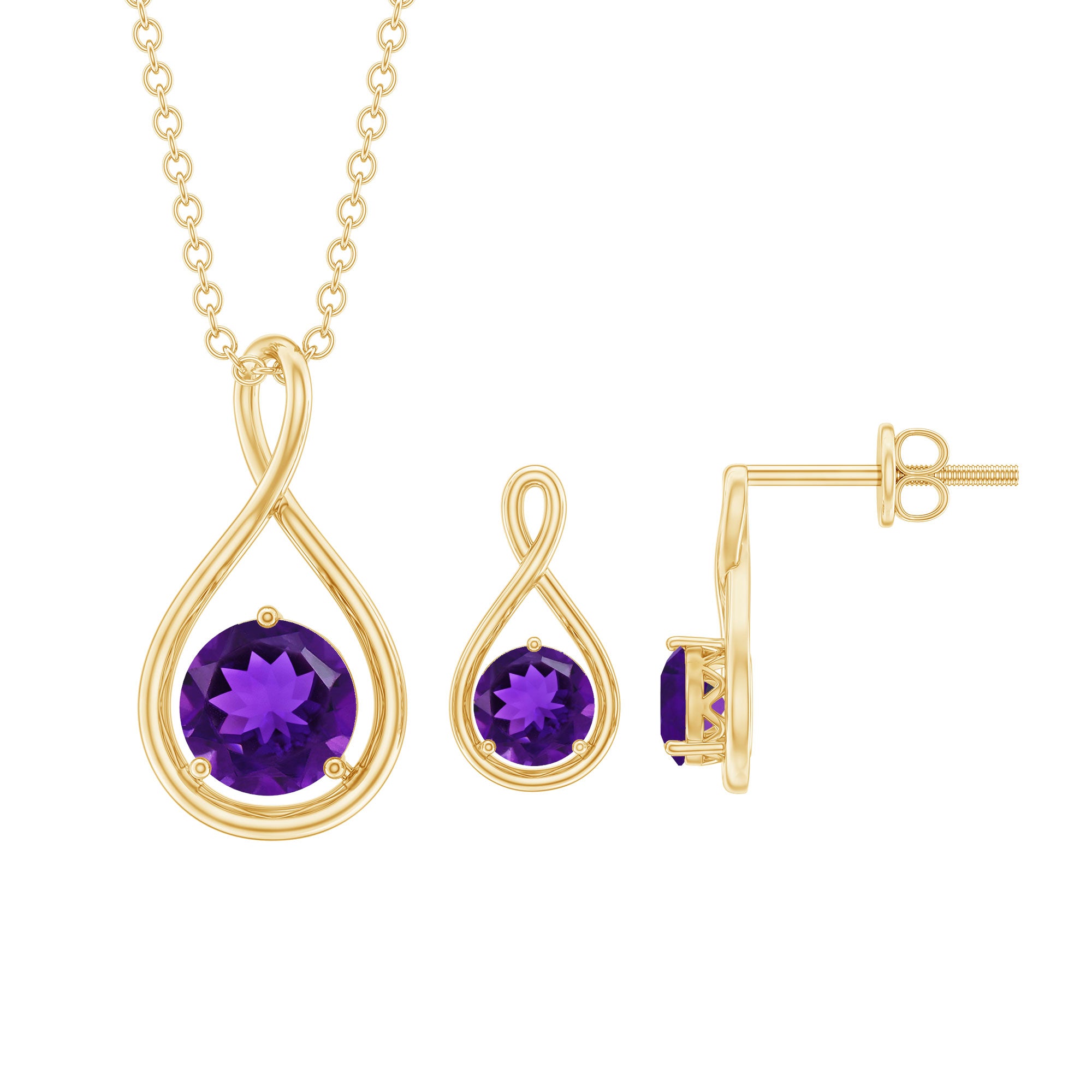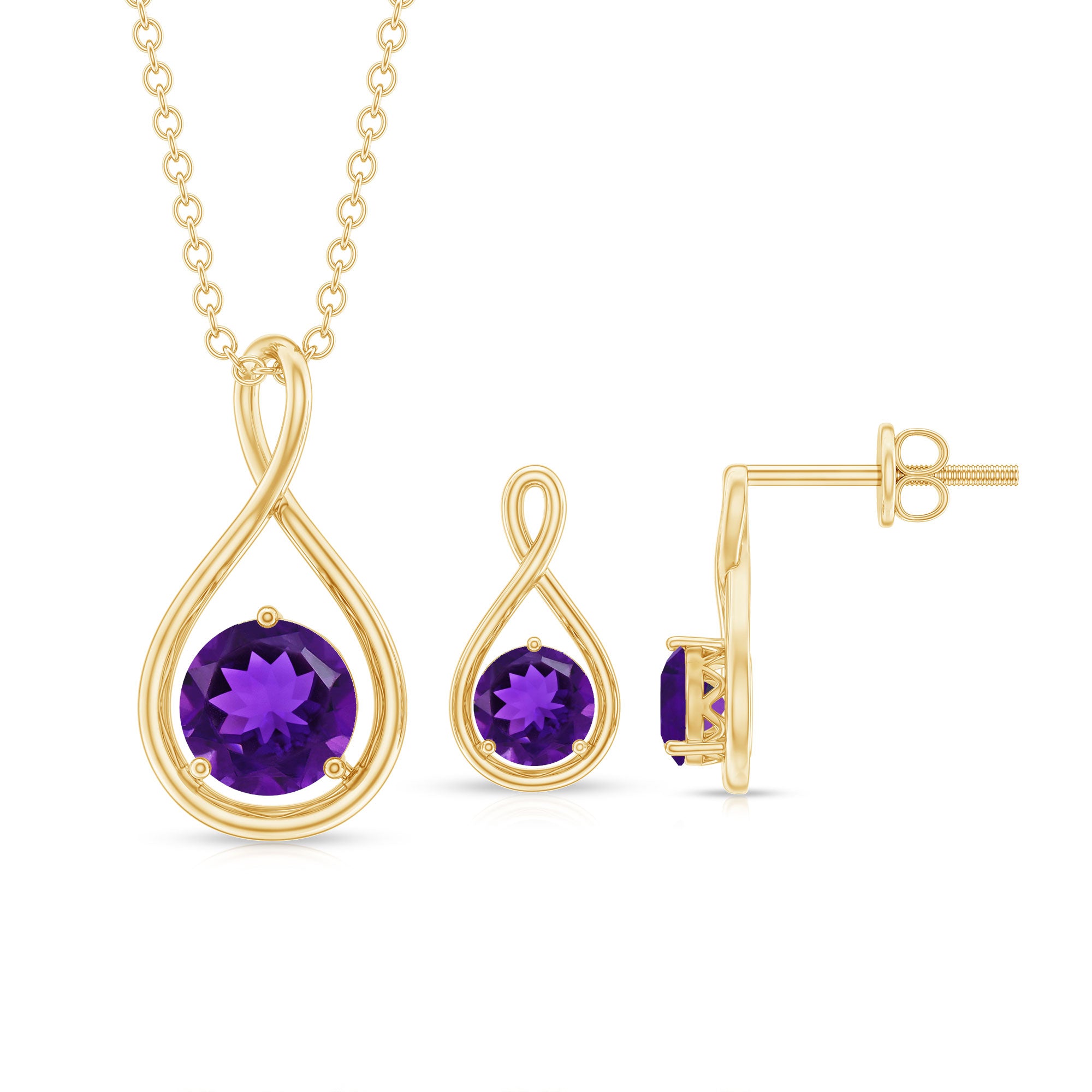 1 CT Round Cut Solitaire Amethyst Gold Infinity Pendant Jewelry Set