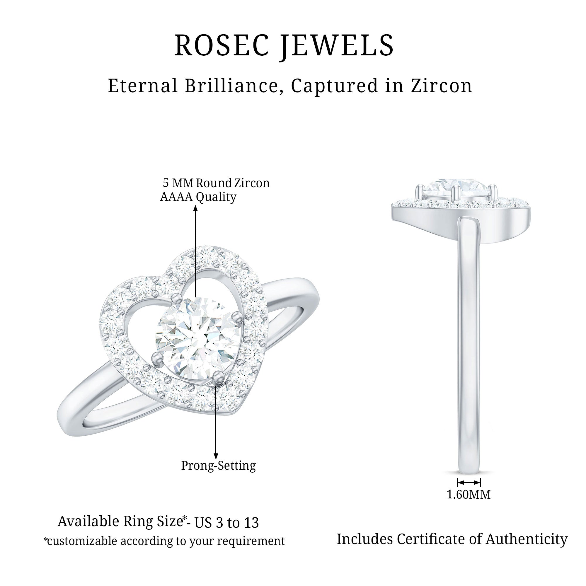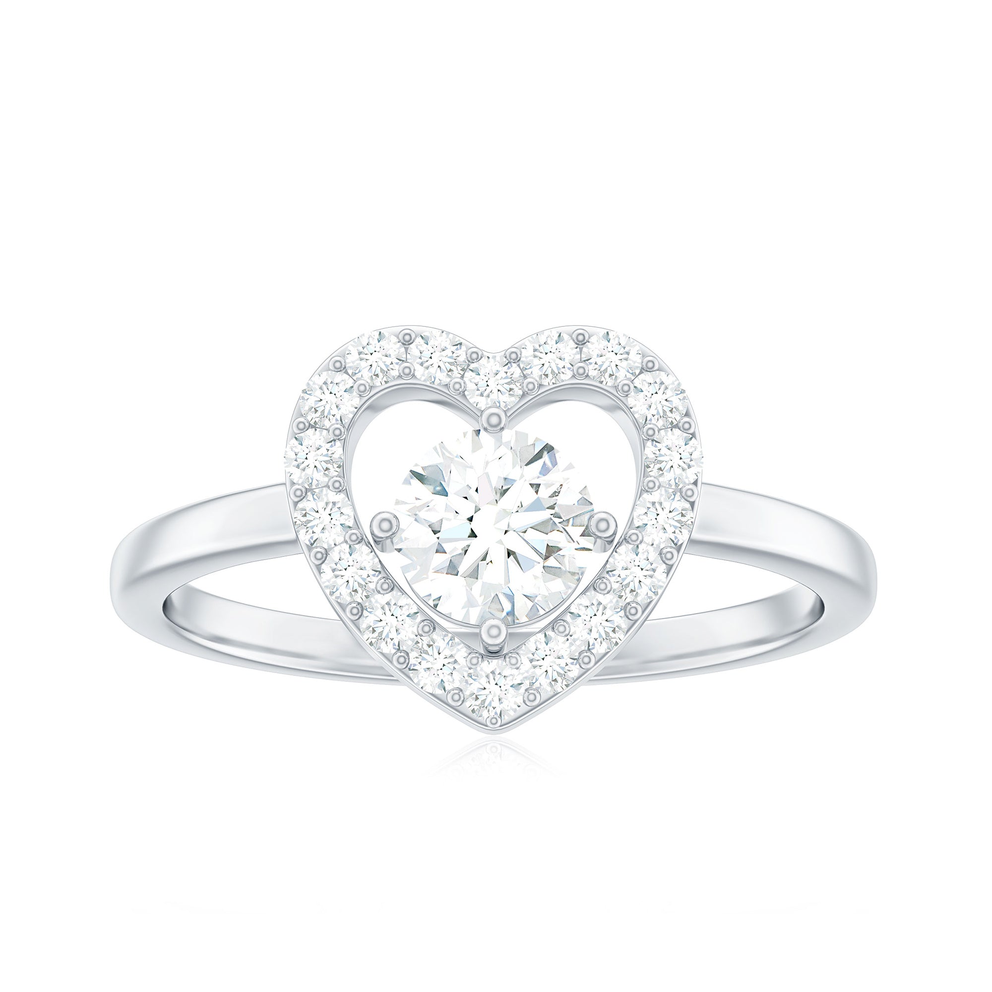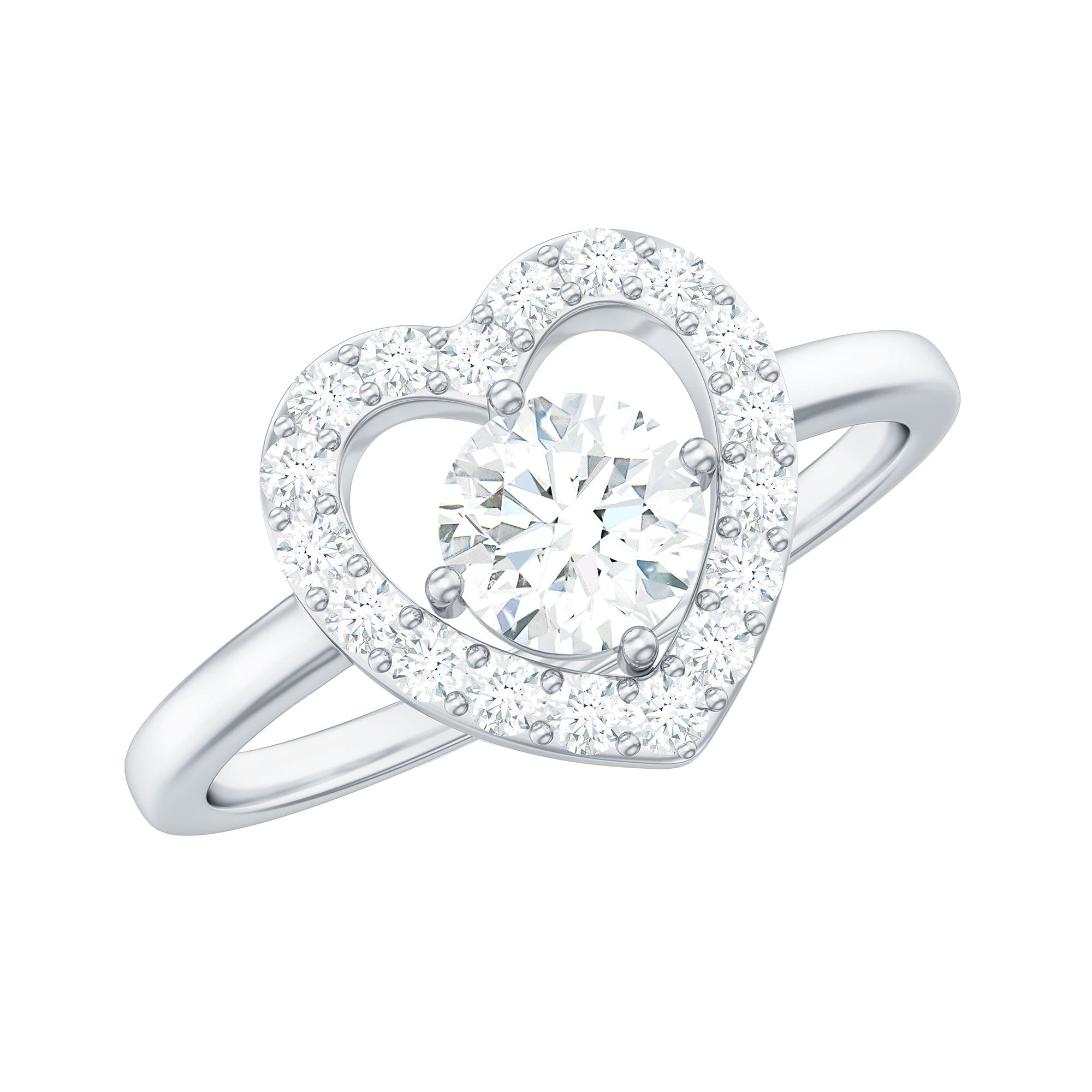 1 CT Round Cut Zircon Heart Engagement Ring with Halo