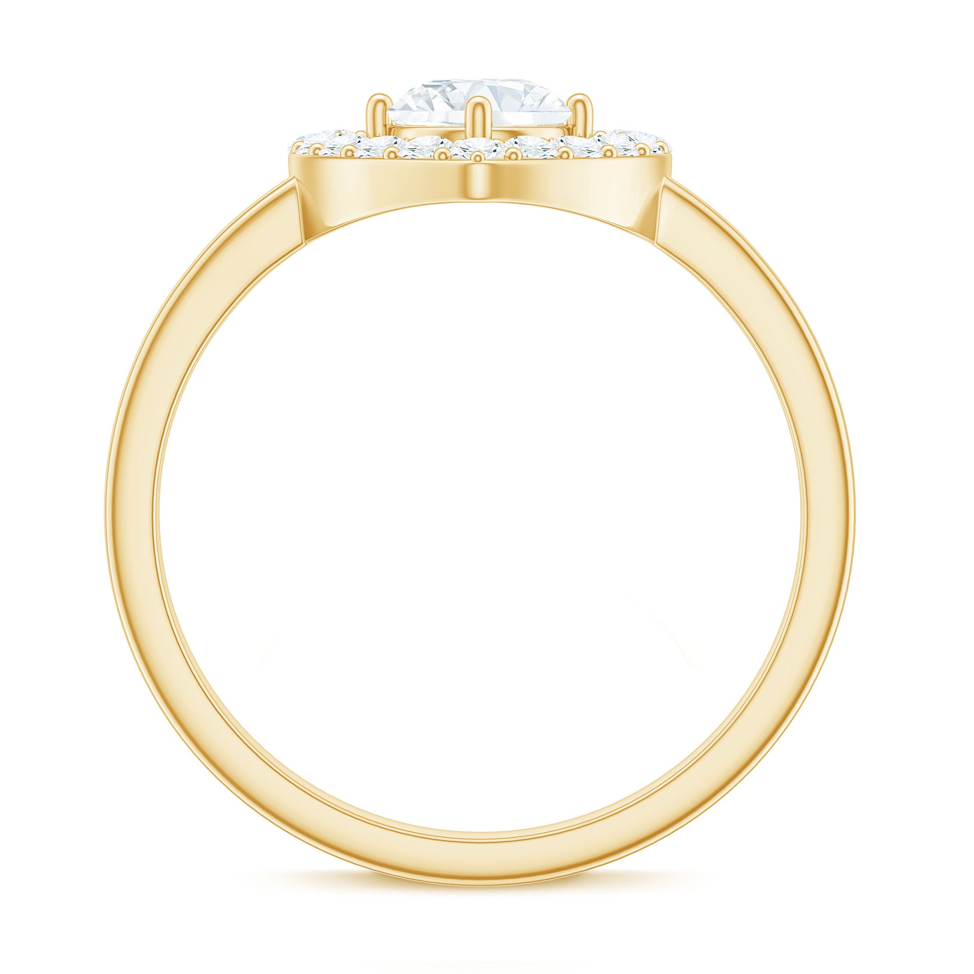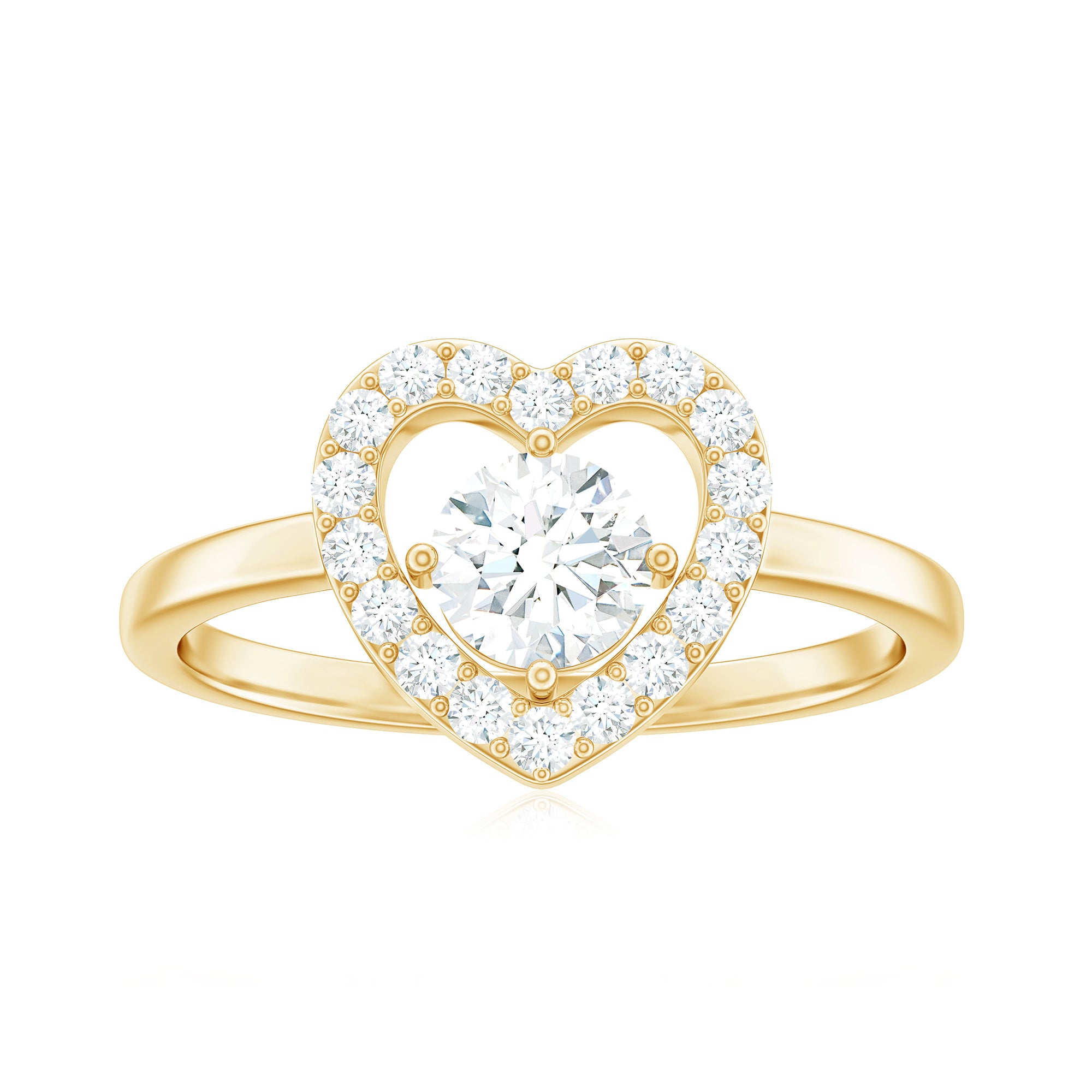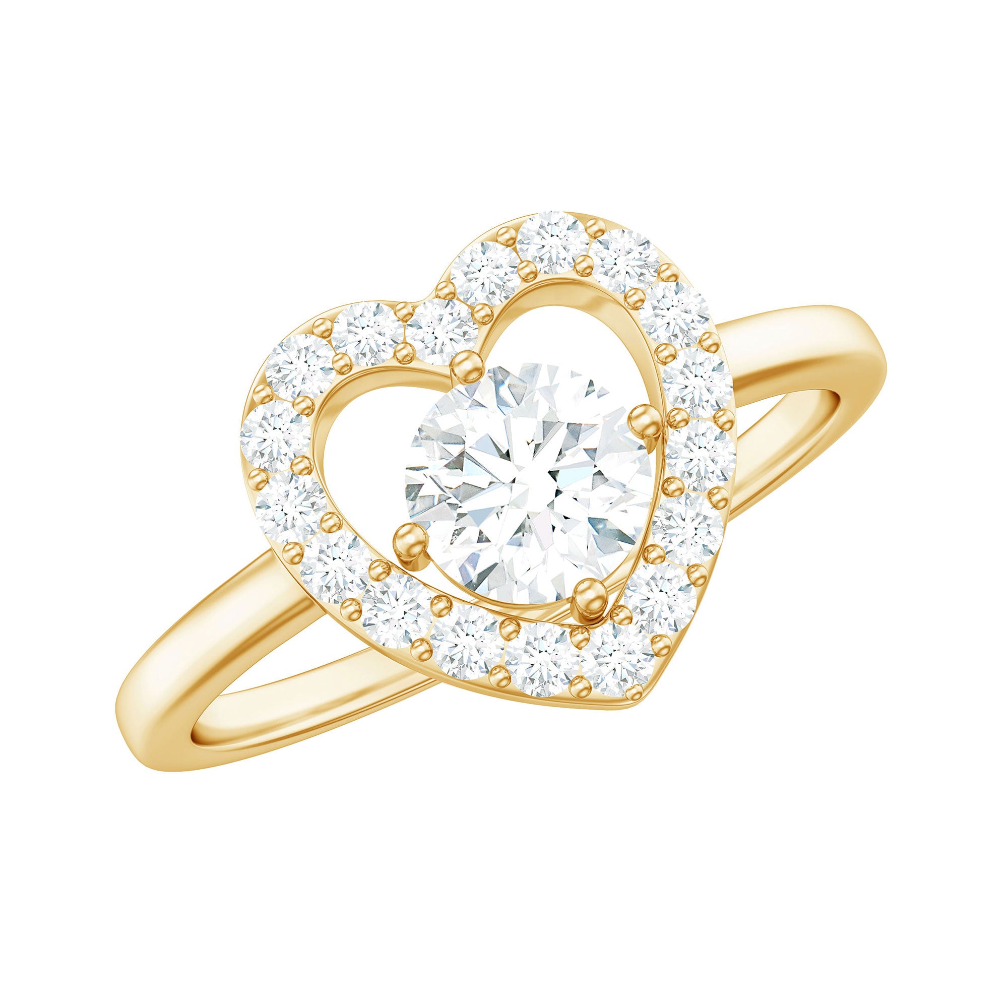 This delicate and timeless Zircon Jewelry is the perfect symbol of your love. The unique style makes it perfect for everyday wear and easy to stack with other jewelry. Heavenly crafted in Gold with Round Shape Cubic Zirconia set in Prong Setting and creating a halo in heart shape, makes a perfect Heart Engagement Ring.