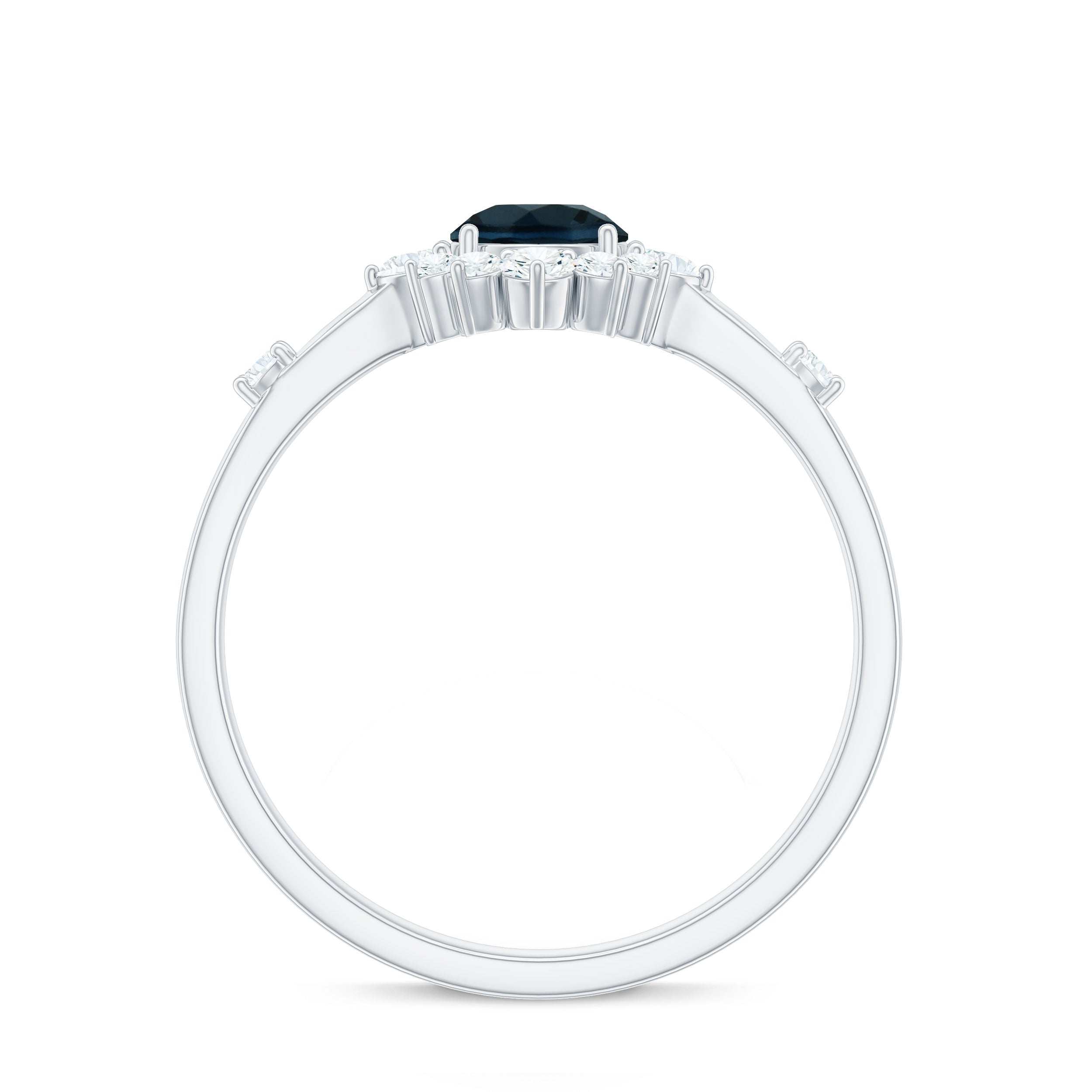 Round London Blue Topaz Promise Ring with Diamond Halo
